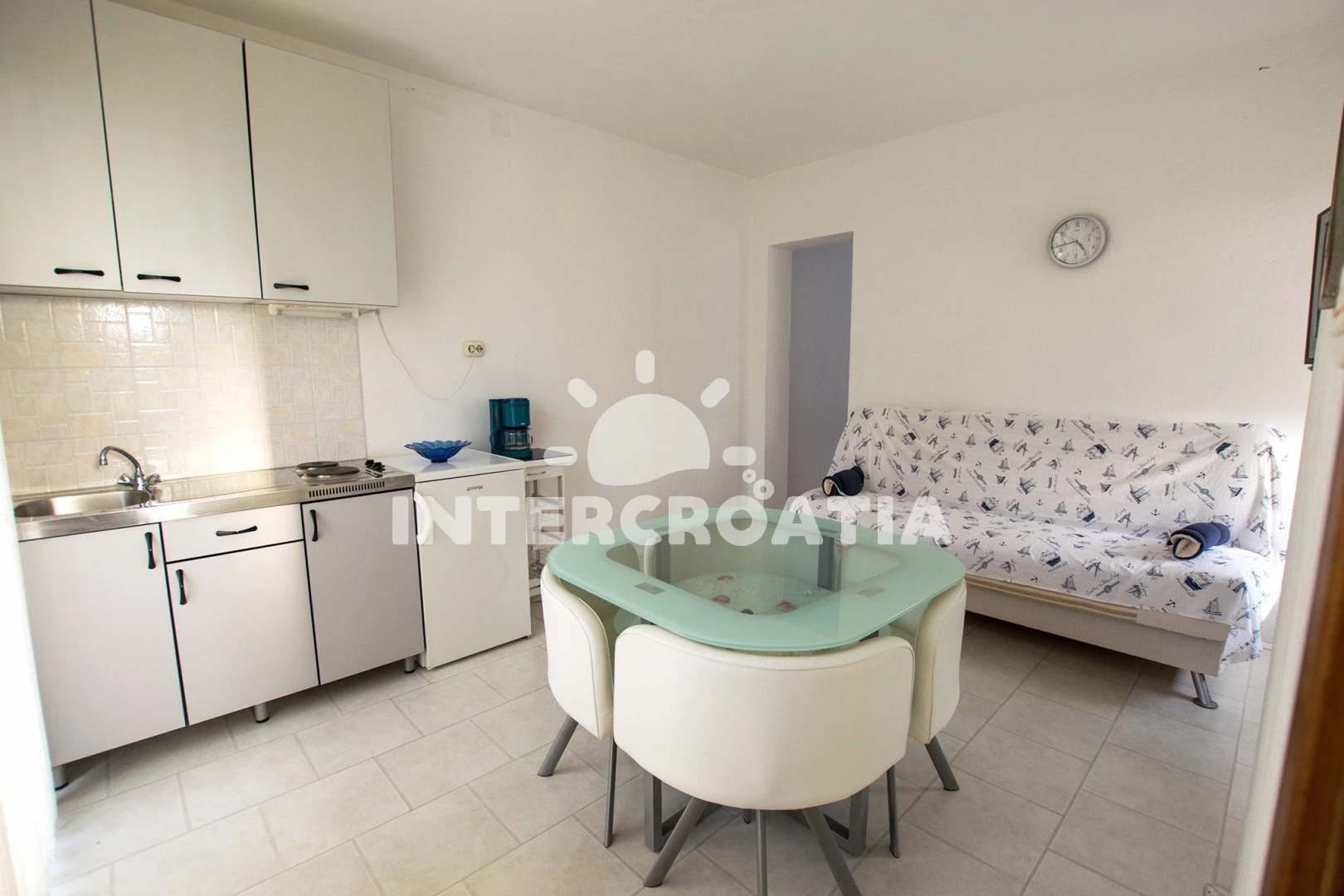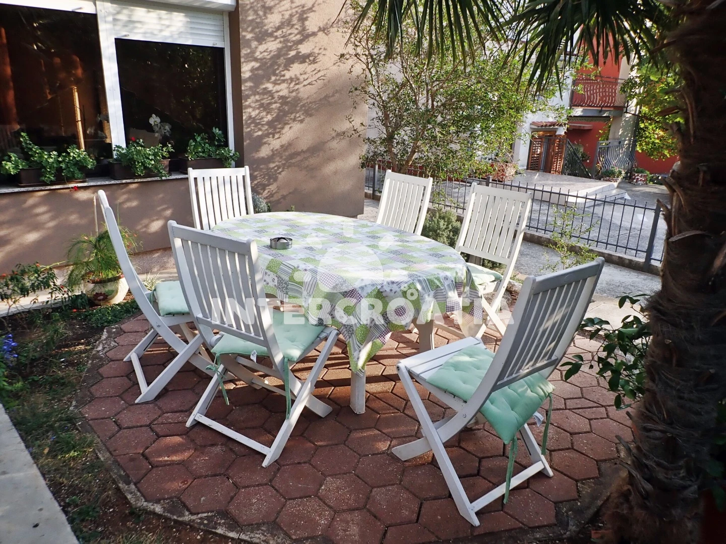 Apartmán se nachází 200 m od moře a pláže. Pláž je oblázková a betonové desky. U objektu je k dispozici společná zahrada s posezením a grilem. Parkování je před domem.