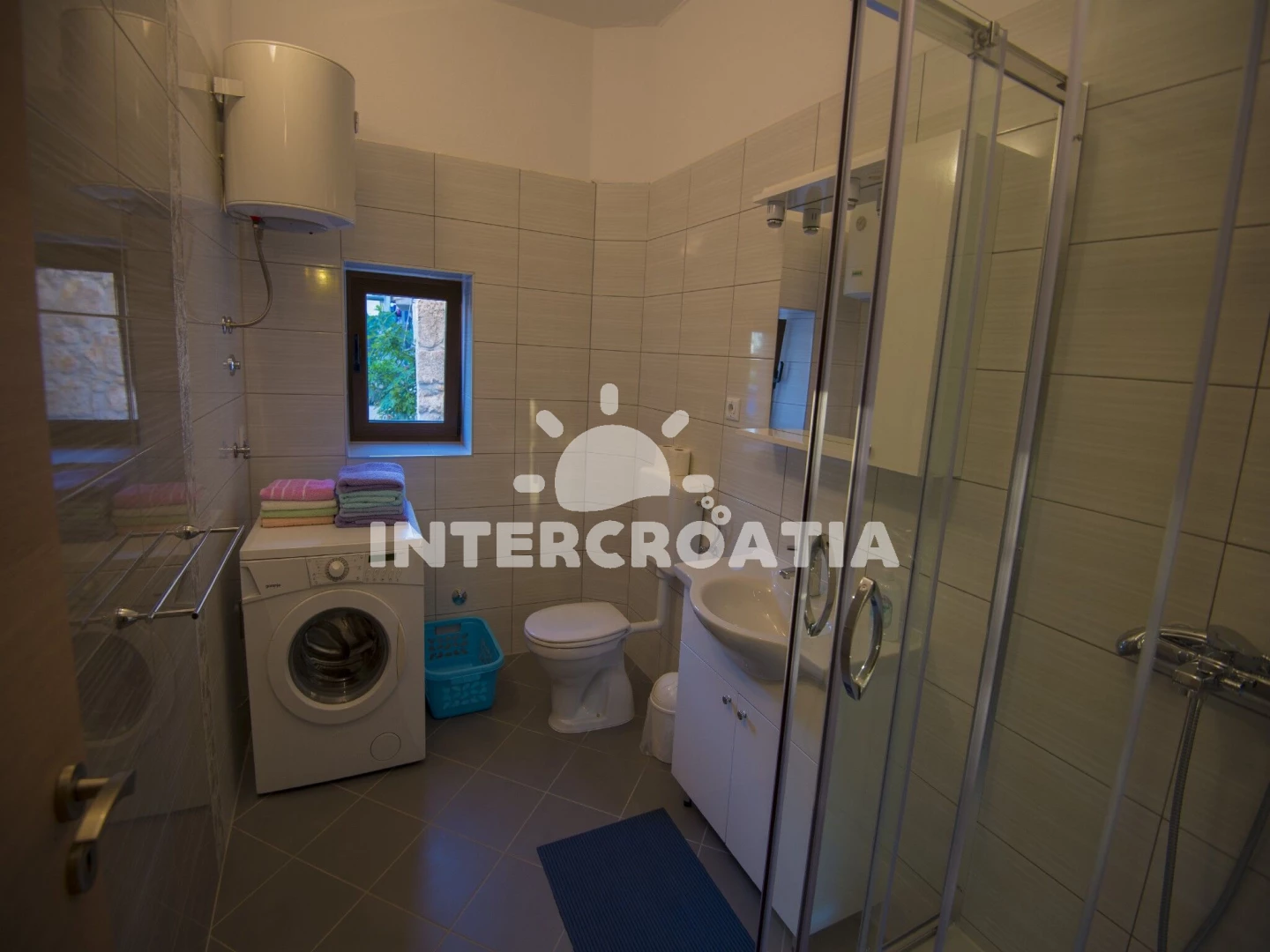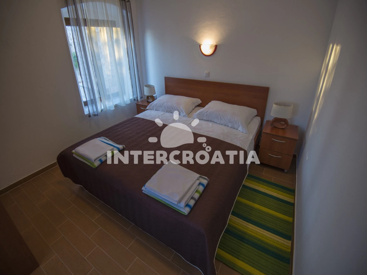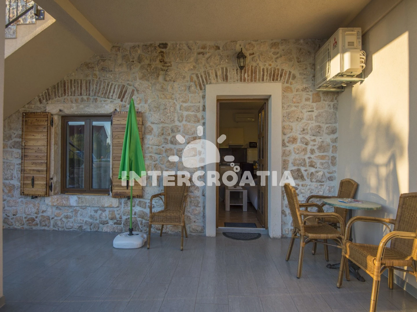 Apartmán se nachází 80 m od moře a pláže. Pláž je oblázková a betonové desky. U objektu je k dispozici společná zahrada s posezením a grilem. Parkování je před domem.