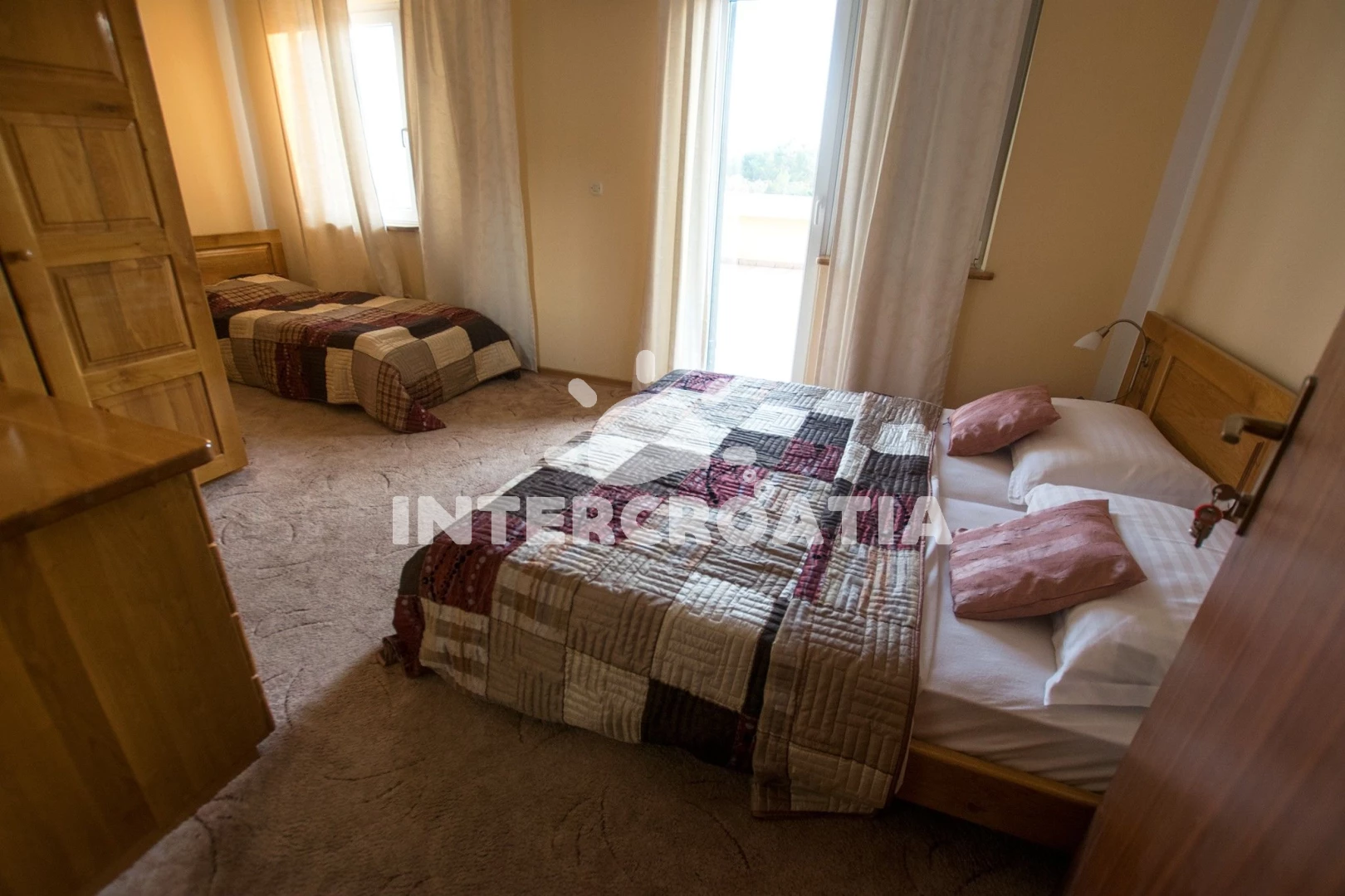 Vzdálenosti: tenisové kurty 0 m, Moře 330 m, pláž 450 m (skalnatá, oblázková a betonové desky), restaurace 300 m, centrum 300 m, bar 350 m, půjčovna motorových člunů 350 m, pošta 350 m, veřejná doprava 350 m, supermarket 350 m, půjčovna kol 500 m, směnárna 500 m, čerpací stanice 1,5 km, lékárna 1,5 km, park Plitvice 2 km, diskotéka 3 km, ambulance 4,5 km, banka 25 km, letiště (Zadar) 40 km, trajekt (Zadar) 45 km,
