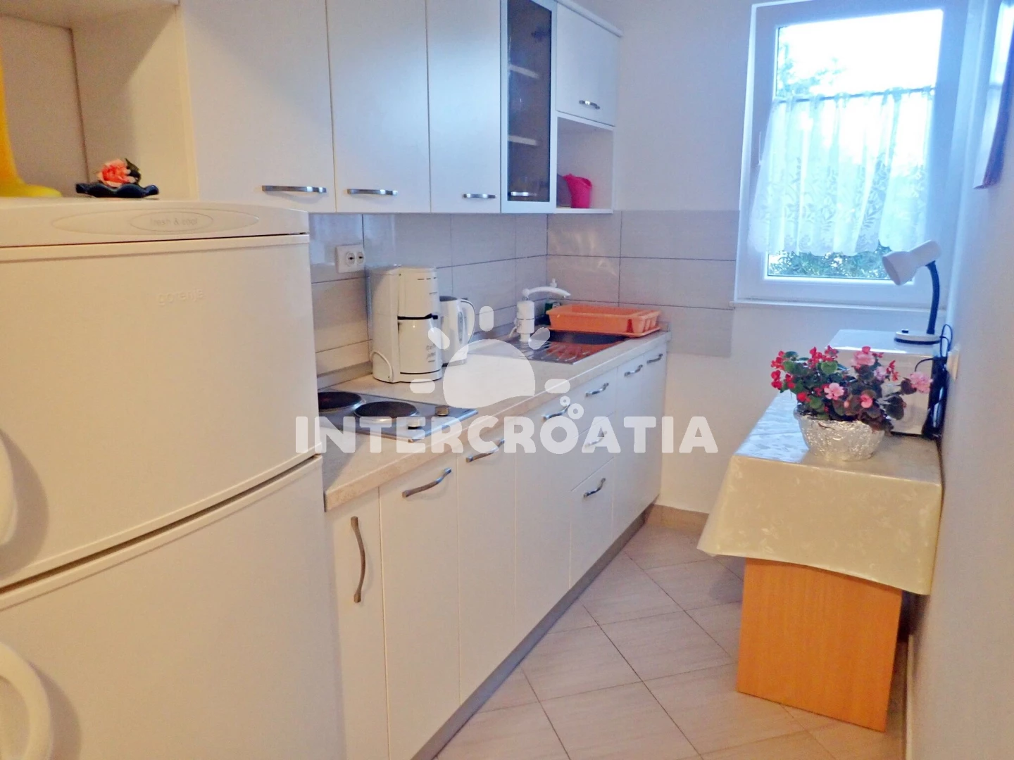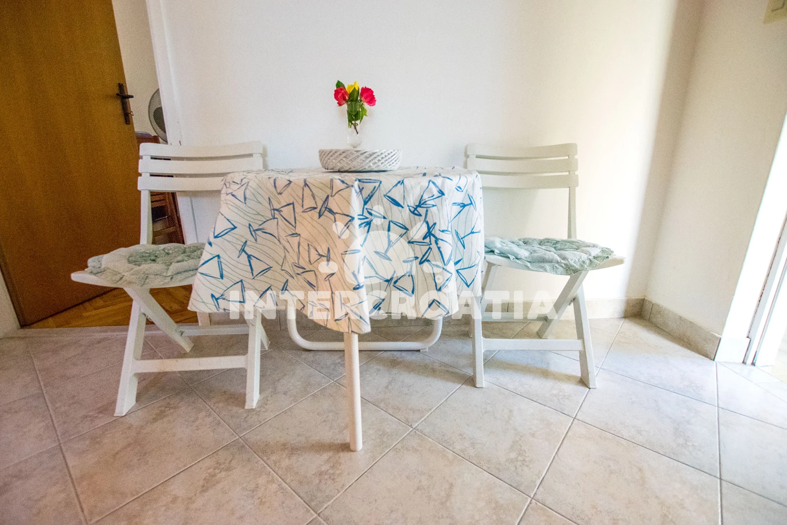 Apartmán se nachází 15 m od moře a pláže. Pláž je betonové desky, skalnatá a větší kamení. Parkování je před domem.