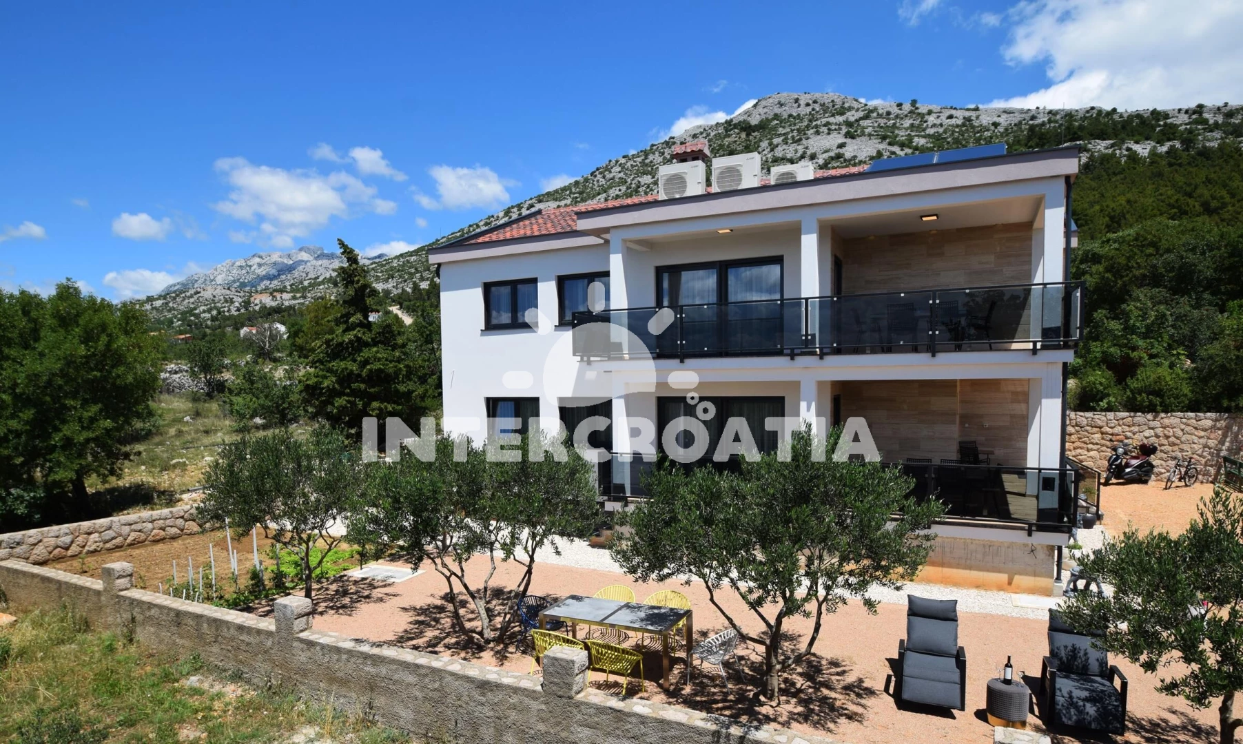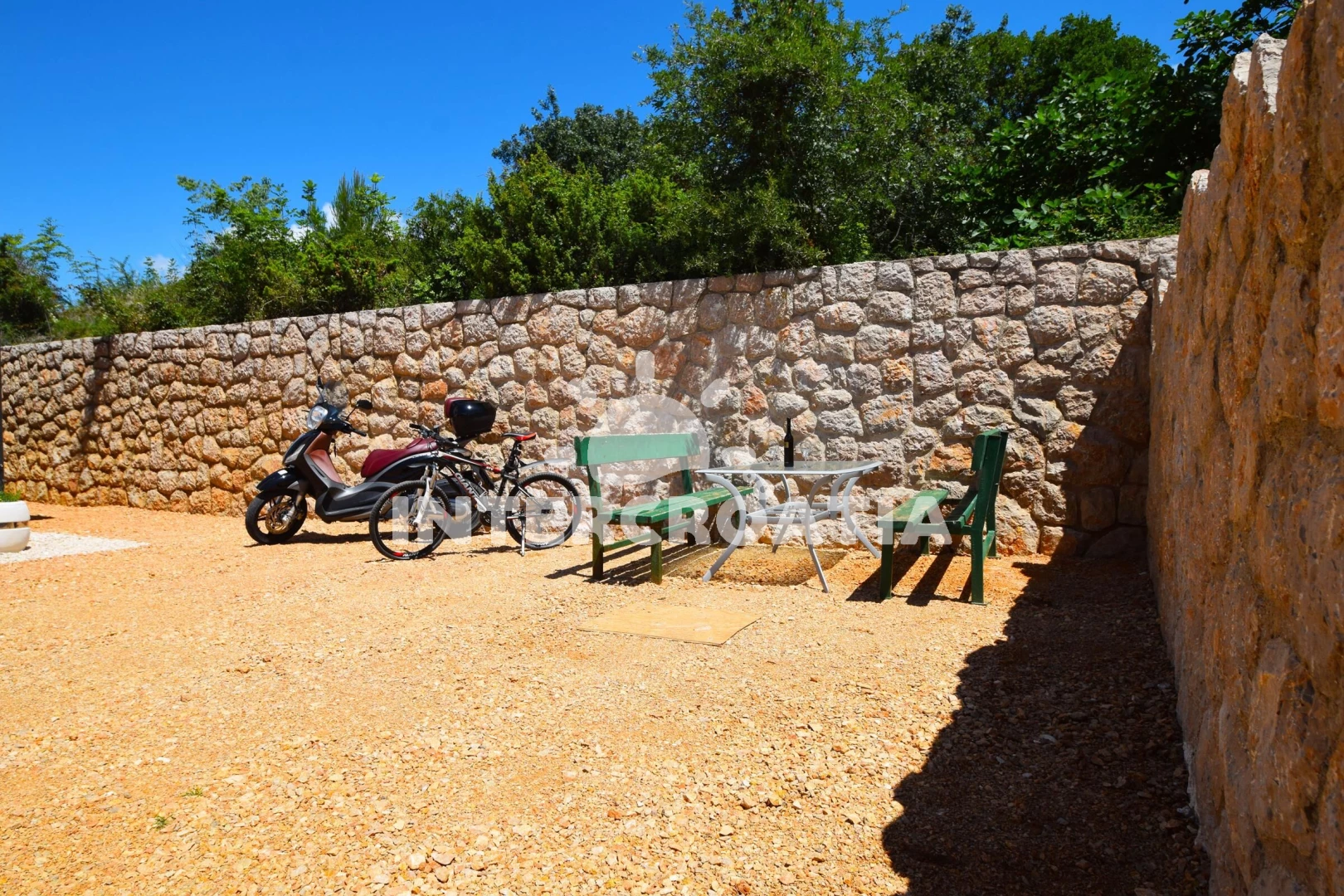 Apartmán se nachází 300 m od moře a pláže. Pláž je betonové desky, skalnatá a větší kamení. U objektu je k dispozici společná zahrada s posezením a grilem. Parkování je před domem.