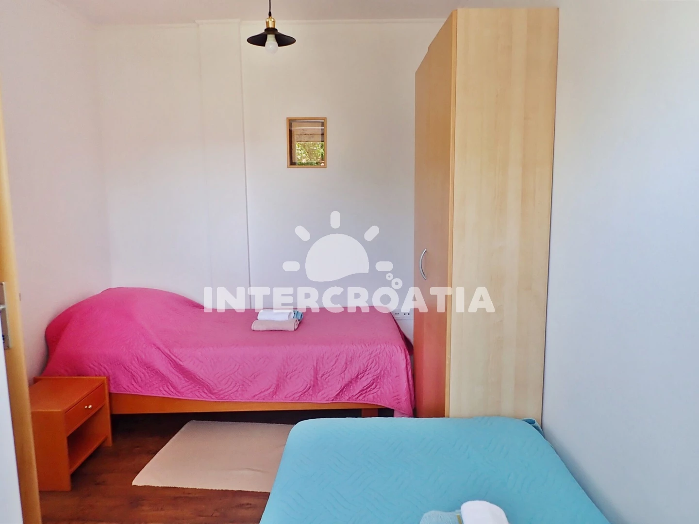 Vzdálenosti: Moře 80 m, pláž 152 m (písčitá, skalnatá, oblázková, větší kamení a betonové desky), restaurace 50 m, půjčovna motorových člunů 100 m, veřejná doprava 150 m, bar 150 m, centrum 150 m, supermarket 200 m, směnárna 200 m, pošta 250 m, půjčovna kol 300 m, čerpací stanice 1,3 km, lékárna 1,5 km, park Plitvice 2 km, diskotéka 3 km, ambulance 4 km, trajekt (Zadar) 45 km, banka 45 km, letiště (Zadar) 46 km,