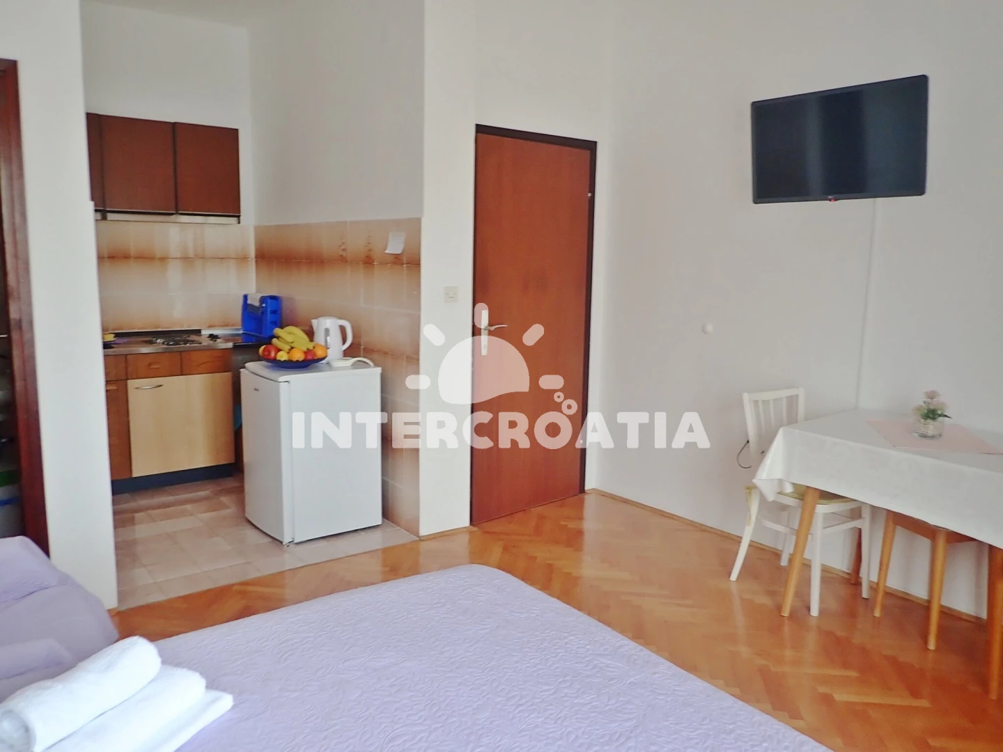 Apartmán se nachází 780 m od moře a pláže. Pláž je oblázková a betonové desky. U objektu je k dispozici společná zahrada s posezením a grilem. Parkování je před domem.