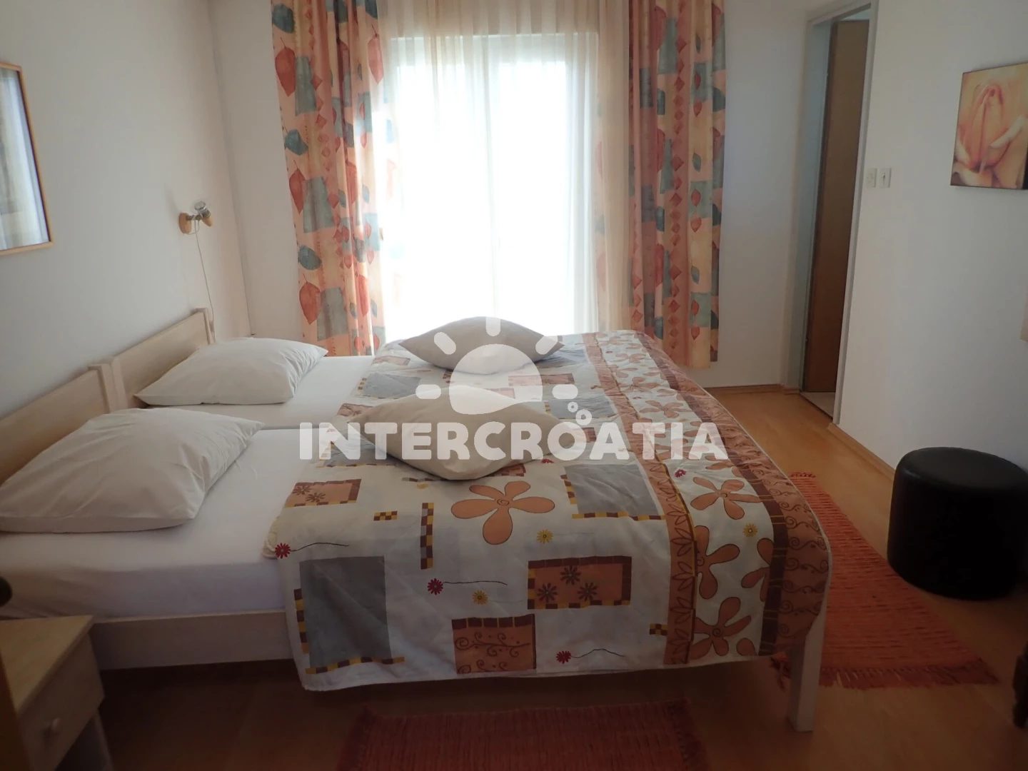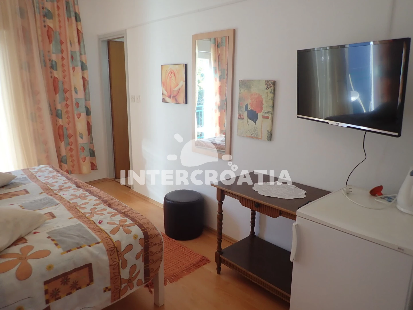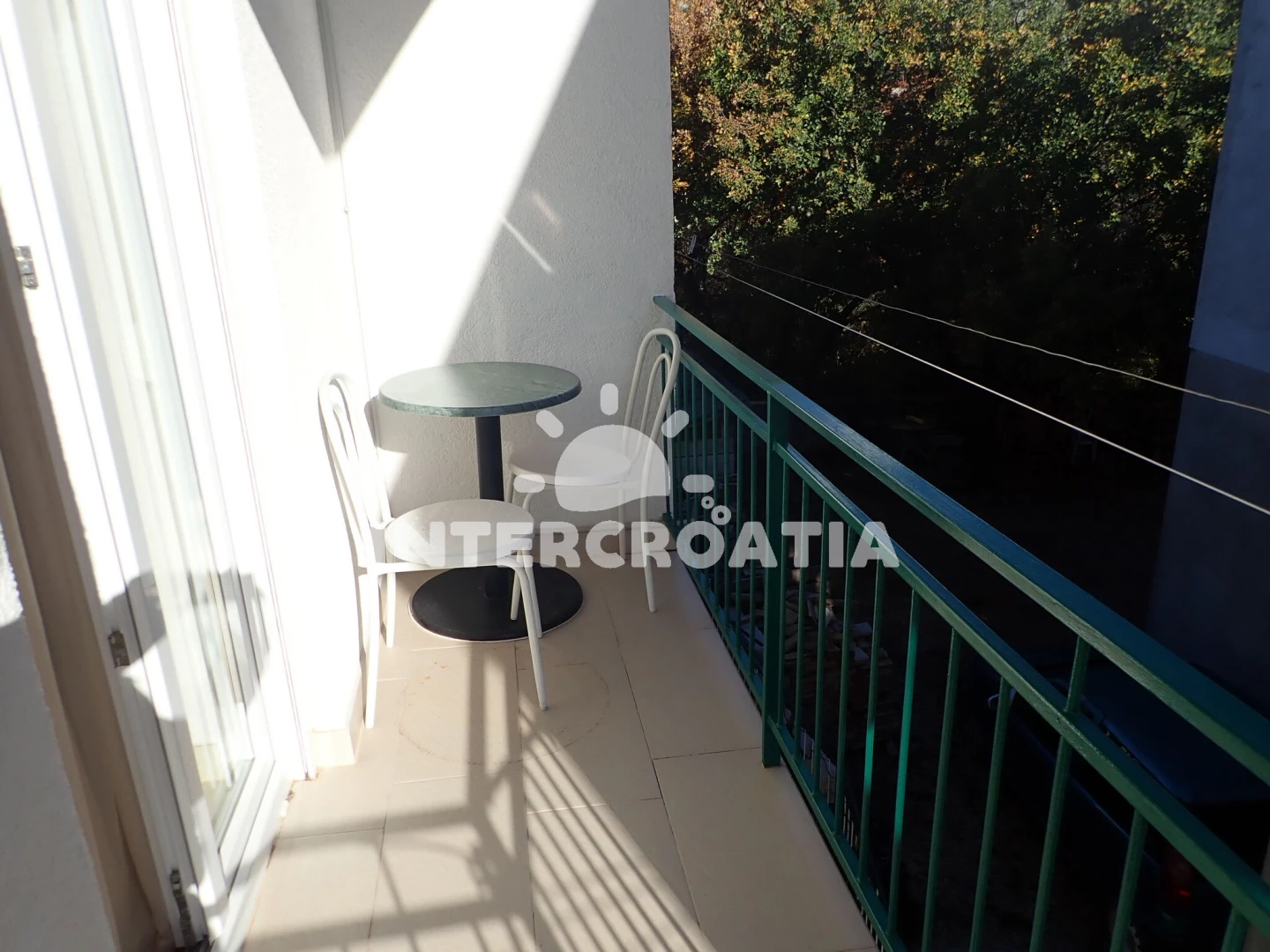 Vzdálenosti: Moře 300 m, pláž 390 m (oblázková a betonové desky), půjčovna kol 200 m, čerpací stanice 300 m, restaurace 350 m, lékárna 350 m, supermarket 400 m, veřejná doprava 500 m, bar 500 m, směnárna 500 m, pošta 600 m, půjčovna motorových člunů 800 m, centrum 800 m, park Plitvice 1 km, tenisové kurty 1,5 km, diskotéka 1,5 km, ambulance 3 km, letiště (Zadar) 40 km, trajekt (Zadar) 45 km, potápění 45 km, banka 45 km,