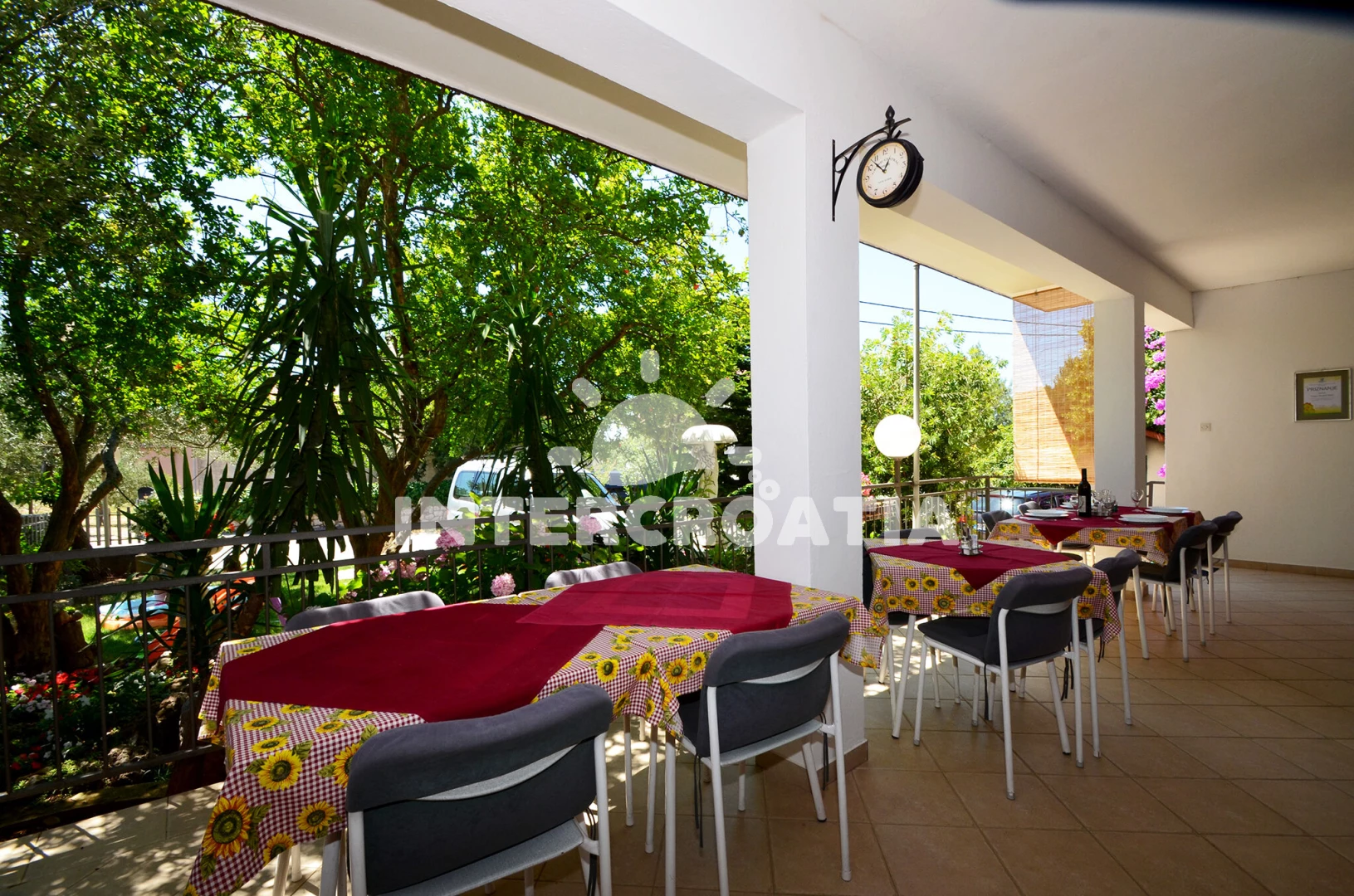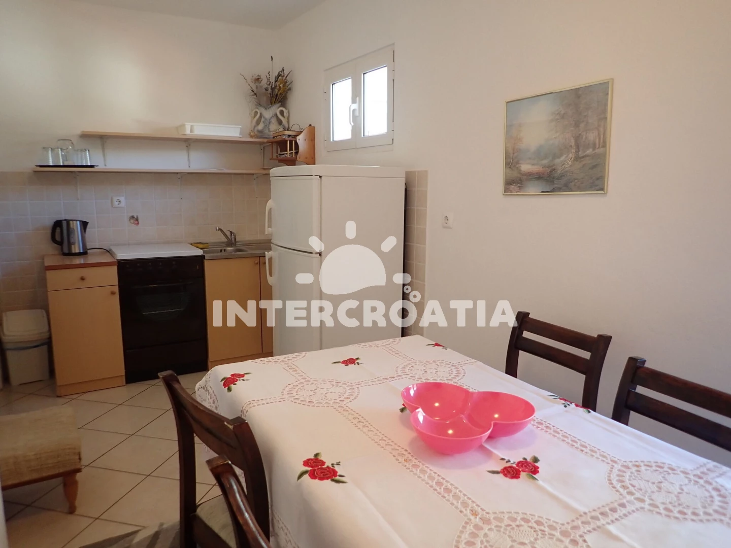 Vzdálenosti: Moře 300 m, pláž 390 m (oblázková a betonové desky), půjčovna kol 200 m, čerpací stanice 300 m, restaurace 350 m, lékárna 350 m, supermarket 400 m, veřejná doprava 500 m, bar 500 m, směnárna 500 m, pošta 600 m, půjčovna motorových člunů 800 m, centrum 800 m, park Plitvice 1 km, tenisové kurty 1,5 km, diskotéka 1,5 km, ambulance 3 km, letiště (Zadar) 40 km, trajekt (Zadar) 45 km, potápění 45 km, banka 45 km,