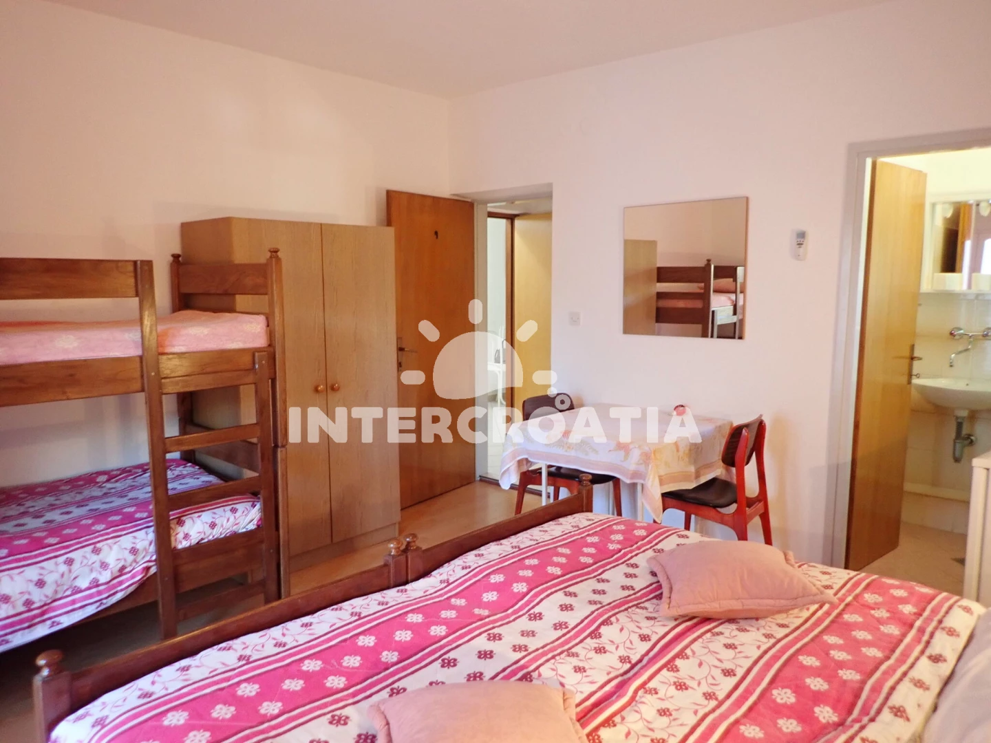 Vzdálenosti: Moře 300 m, pláž 390 m (oblázková a betonové desky), půjčovna kol 200 m, čerpací stanice 300 m, restaurace 350 m, lékárna 350 m, supermarket 400 m, veřejná doprava 500 m, bar 500 m, směnárna 500 m, pošta 600 m, půjčovna motorových člunů 800 m, centrum 800 m, park Plitvice 1 km, tenisové kurty 1,5 km, diskotéka 1,5 km, ambulance 3 km, letiště (Zadar) 40 km, trajekt (Zadar) 45 km, potápění 45 km, banka 45 km,