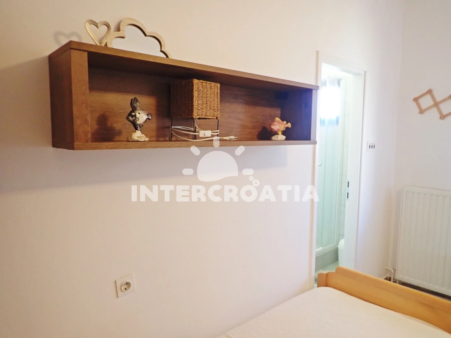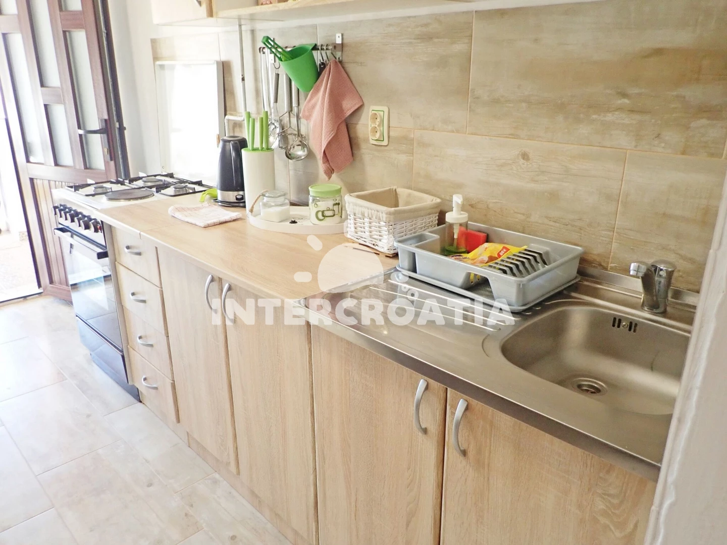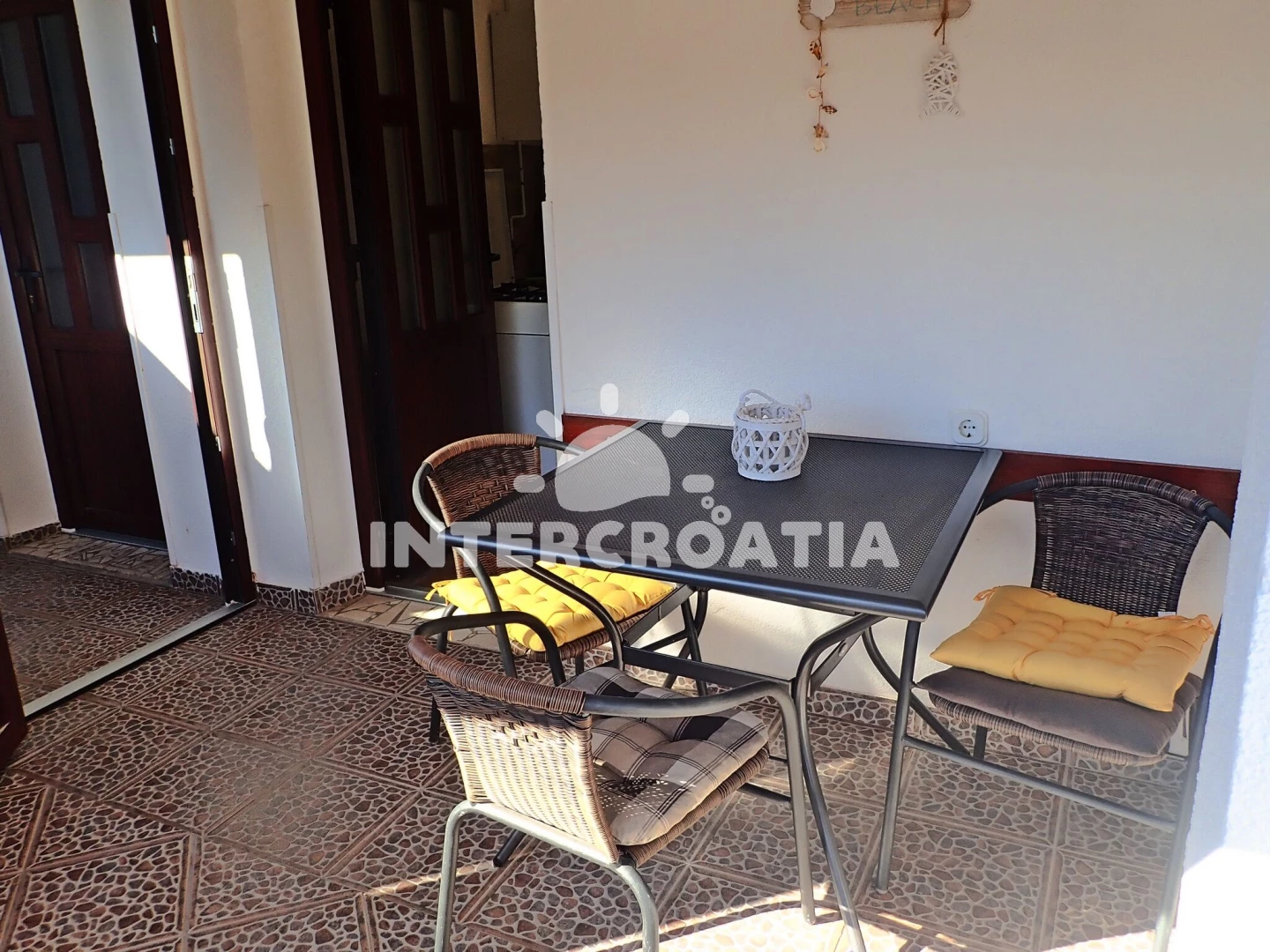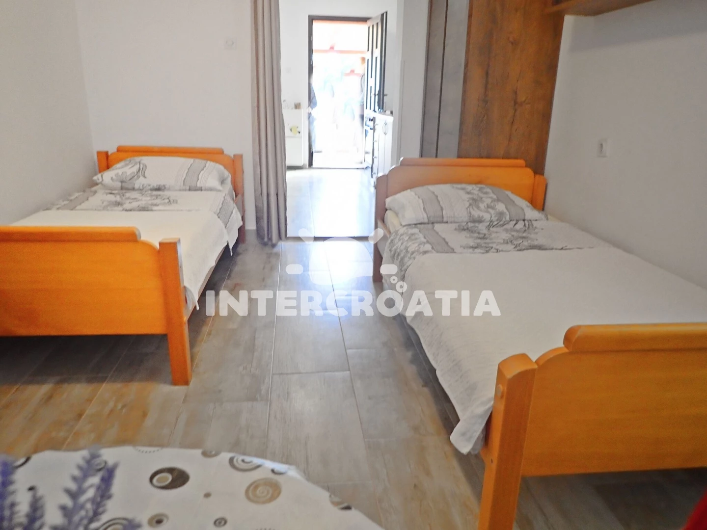 Apartmán se nachází 350 m od moře a pláže. Pláž je skalnatá, oblázková, větší kamení a betonové desky. U objektu je k dispozici společná zahrada s posezením a grilem. Parkování je před domem.