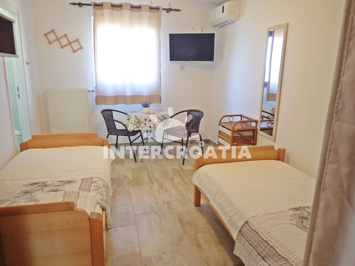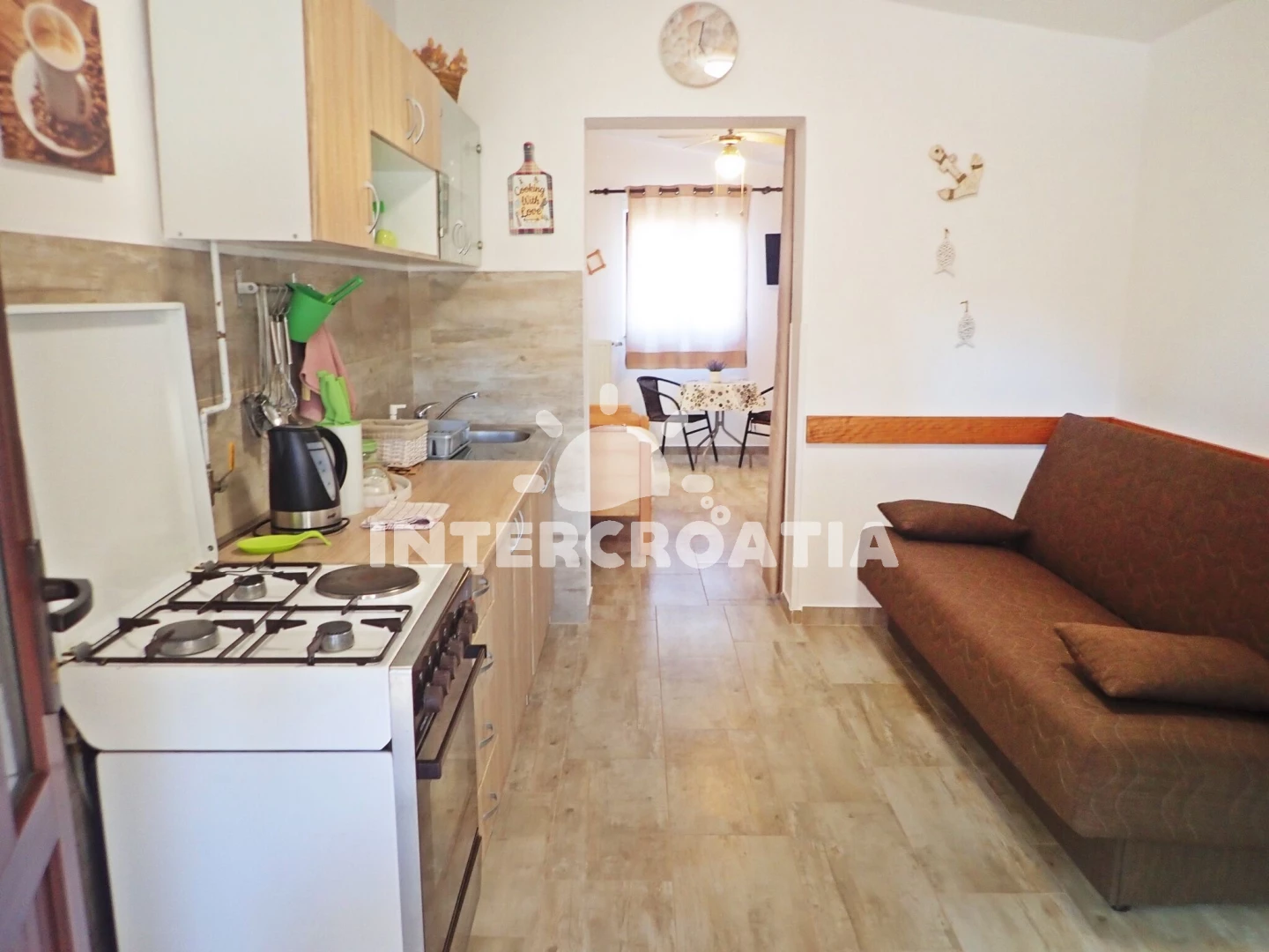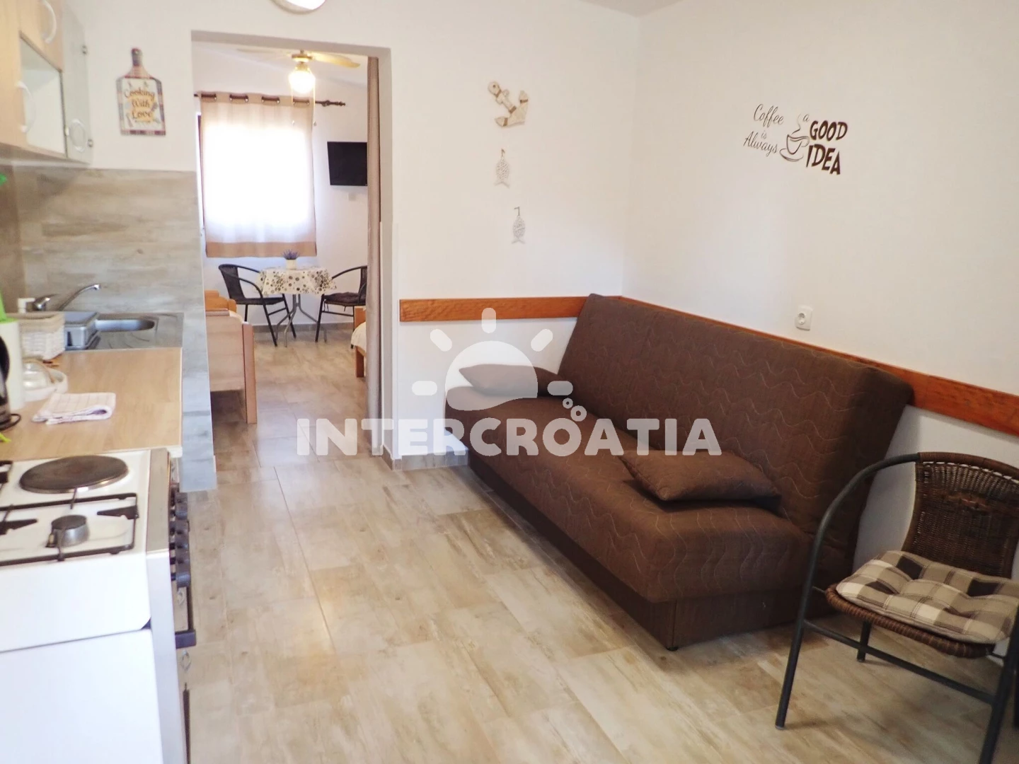 Vzdálenosti: Moře 200 m, pláž 350 m (skalnatá, oblázková, větší kamení a betonové desky), centrum 300 m, bar 300 m, restaurace 300 m, veřejná doprava 350 m, supermarket 350 m, kotviště pro čluny 350 m, směnárna 350 m, půjčovna motorových člunů 350 m, pošta 400 m, půjčovna kol 700 m, park Plitvice 1,2 km, lékárna 1,3 km, čerpací stanice 1,3 km, tenisové kurty 3 km, ambulance 4,7 km, diskotéka 23 km, letiště (Zadar) 30 km, trajekt (Zadar) 45 km, banka 45 km, potápění 45 km, muzeum 45 km,