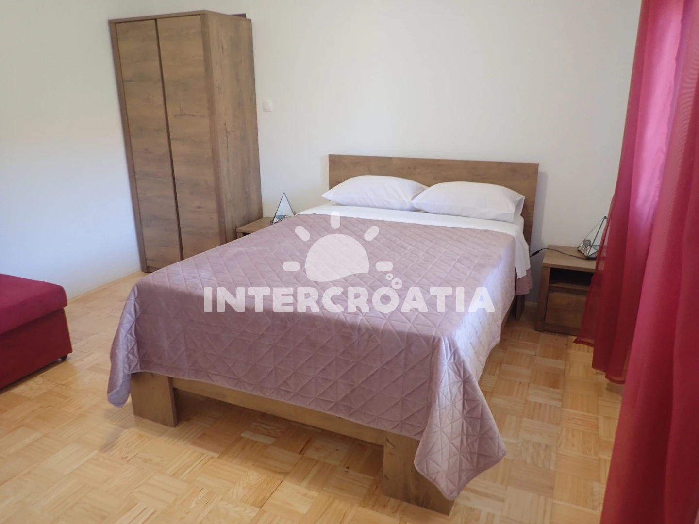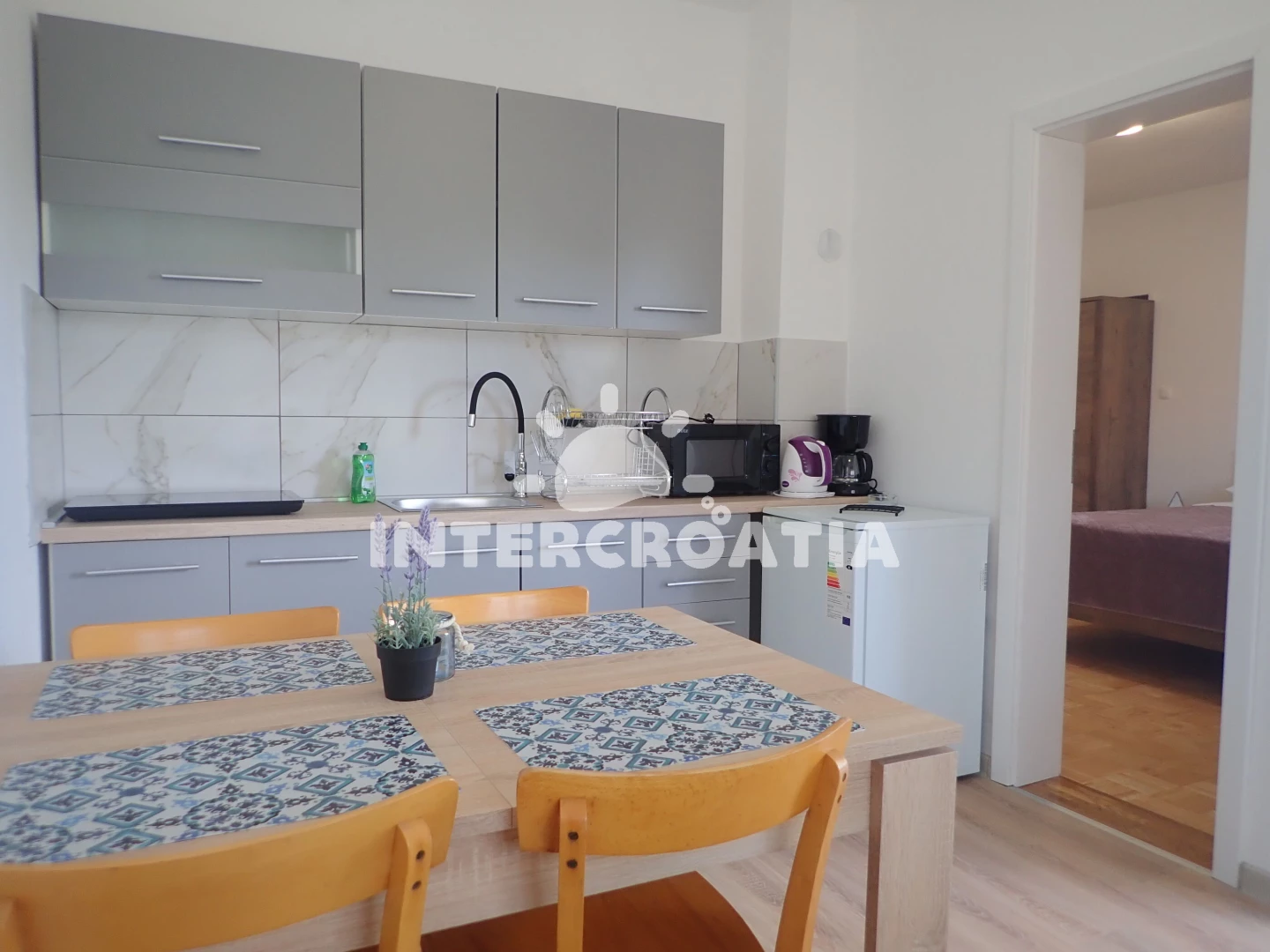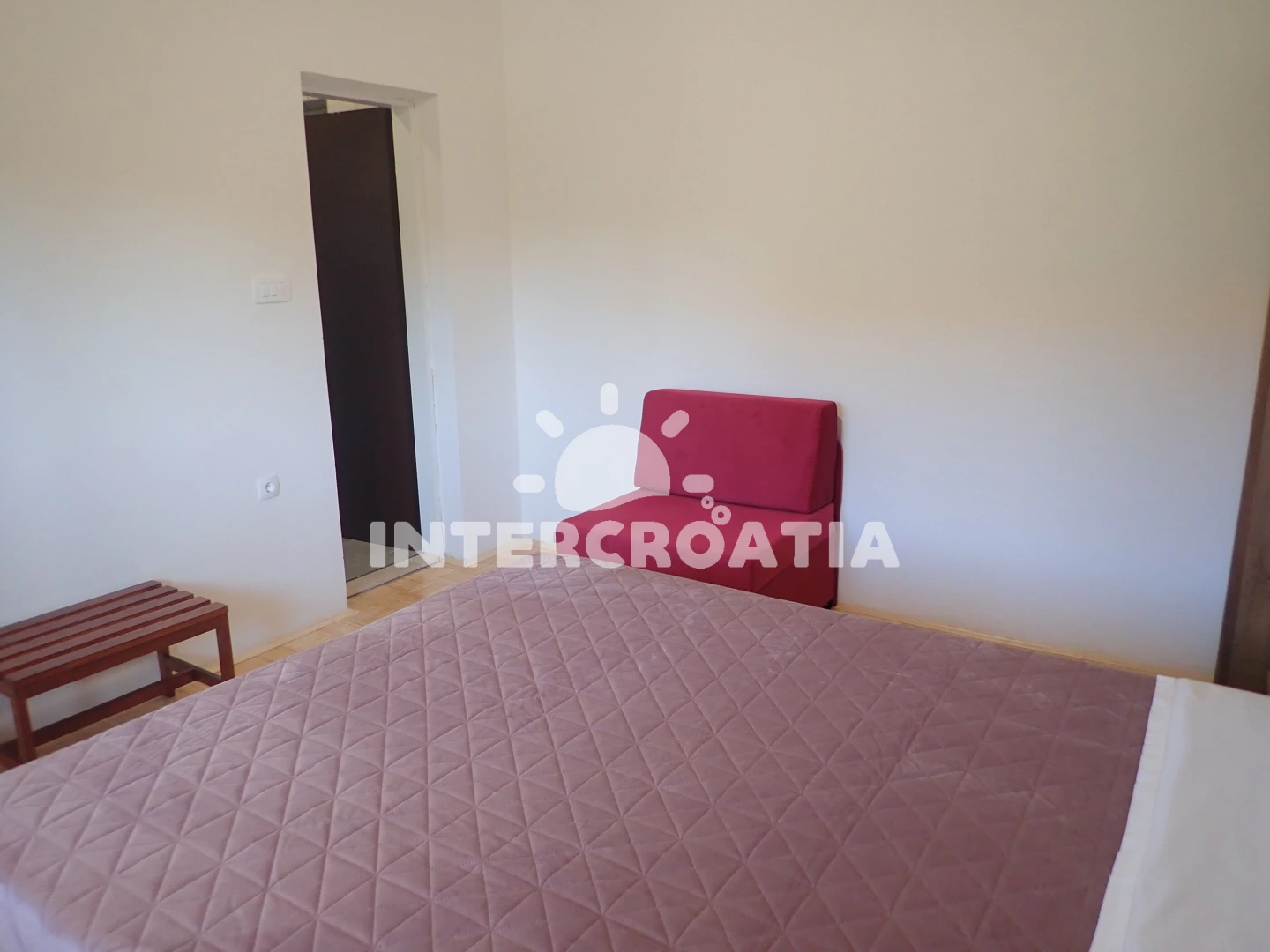 Apartmán se nachází 300 m od moře a pláže. Pláž je skalnatá, oblázková, větší kamení a betonové desky. U objektu je k dispozici společná zahrada s posezením a grilem. Parkování je před domem.