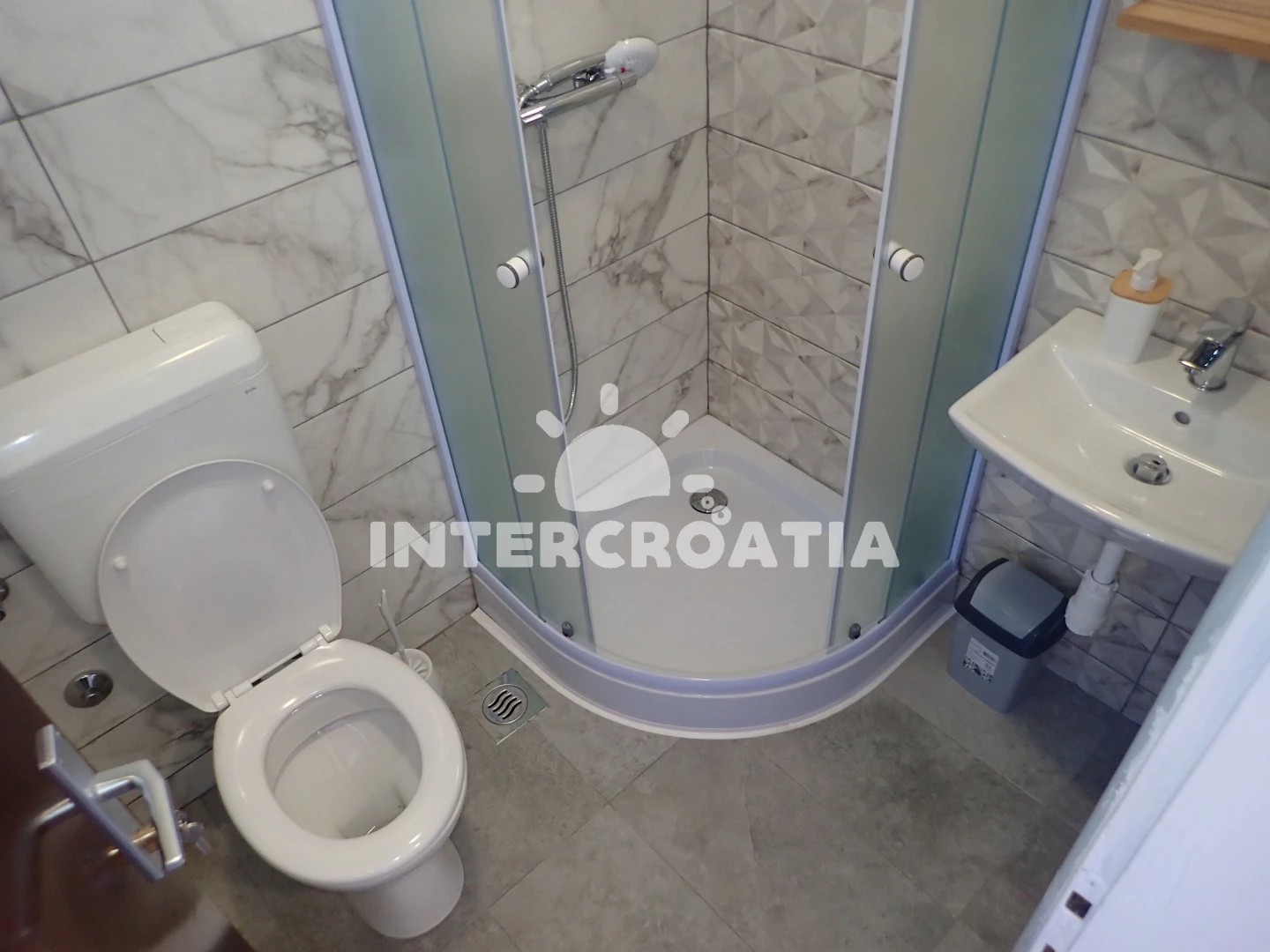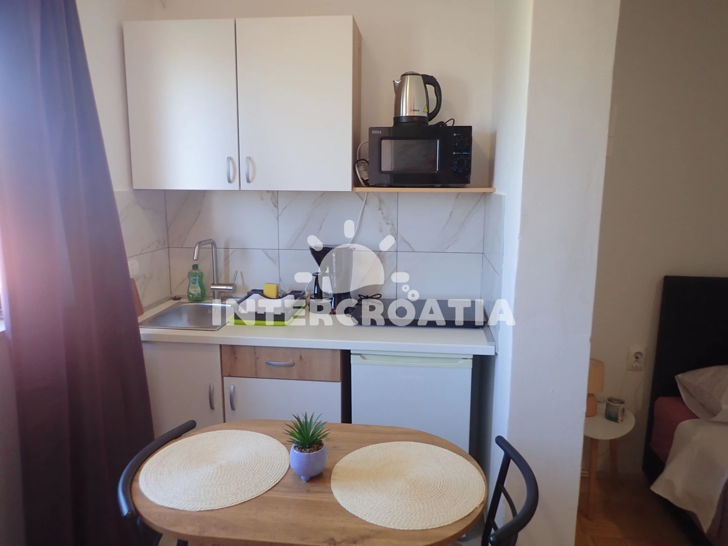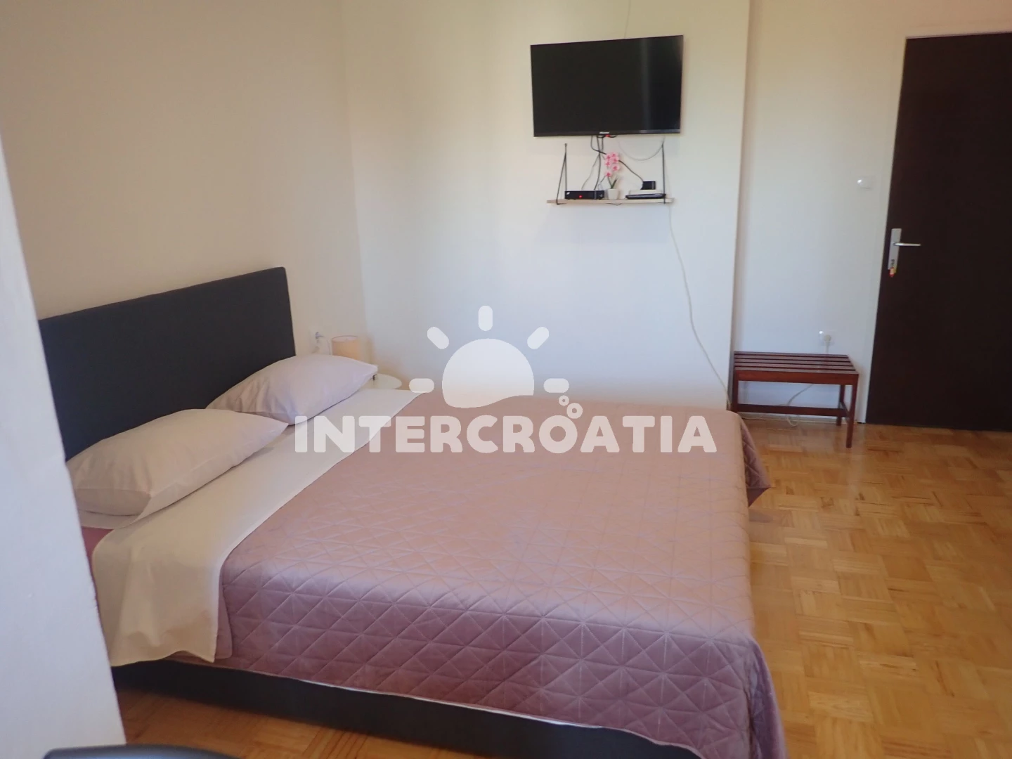 Apartmán se nachází 300 m od moře a pláže. Pláž je skalnatá, oblázková, větší kamení a betonové desky. U objektu je k dispozici společná zahrada s posezením a grilem. Parkování je před domem.
