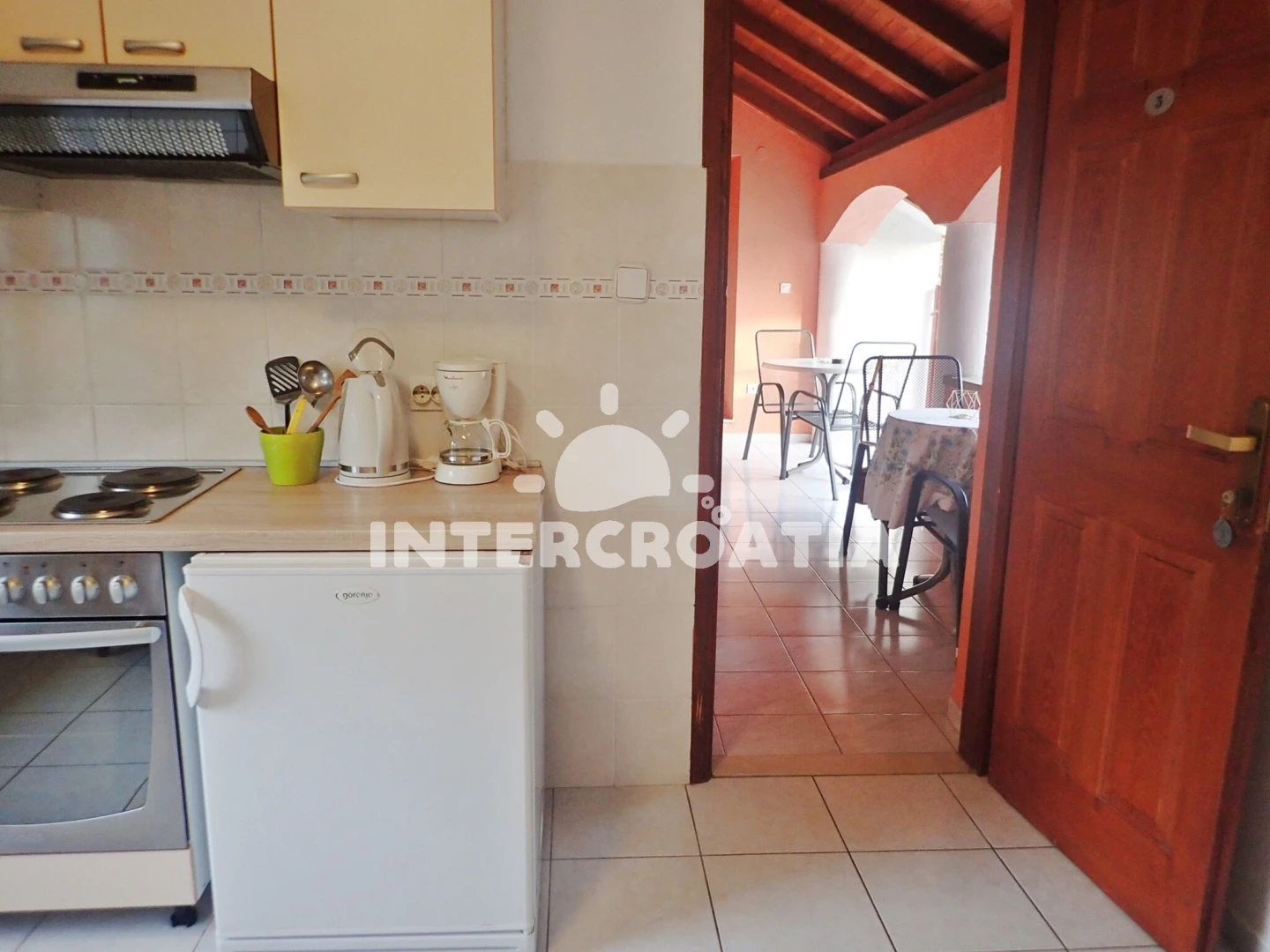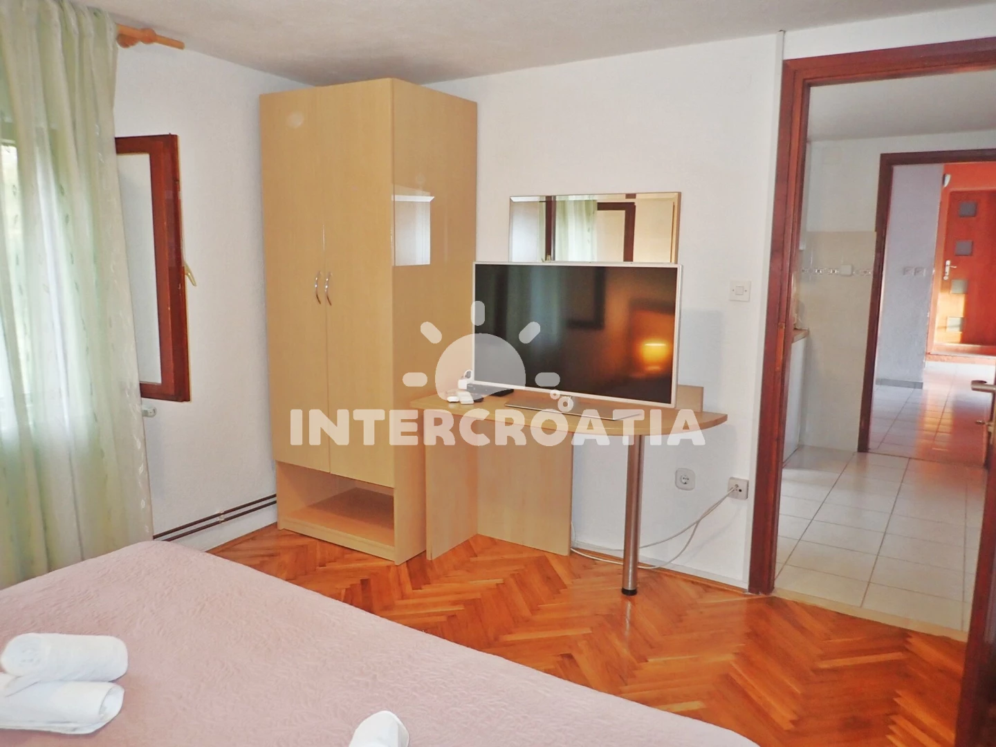 Apartmán se nachází 350 m od moře a pláže. Pláž je skalnatá, oblázková a betonové desky. U objektu je k dispozici společná zahrada s posezením a grilem. Parkování je před domem.