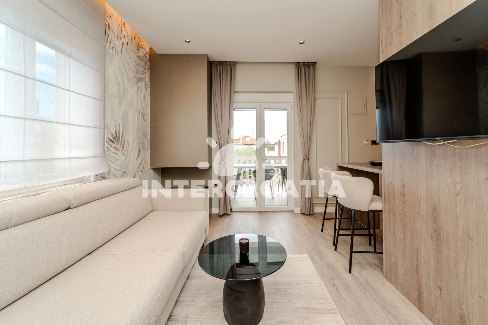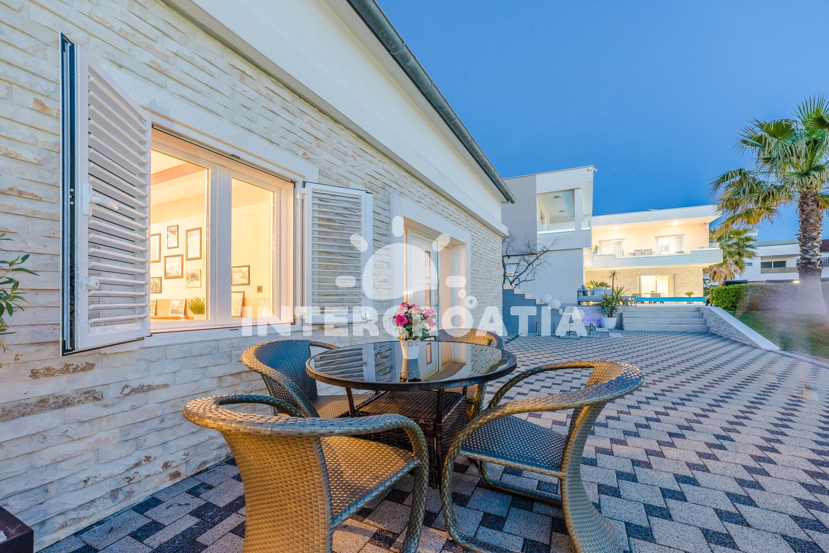 Vzdálenosti: Moře 50 m, pláž 300 m (písčitá a oblázková), supermarket 100 m, centrum 150 m, bar 200 m, restaurace 200 m, směnárna 400 m, veřejná doprava 450 m, lékárna 500 m, ambulance 500 m, pošta 650 m, banka 750 m, čerpací stanice 1,5 km, marina 2 km, trajekt (Zadar) 15 km, letiště (Zadar) 20 km,