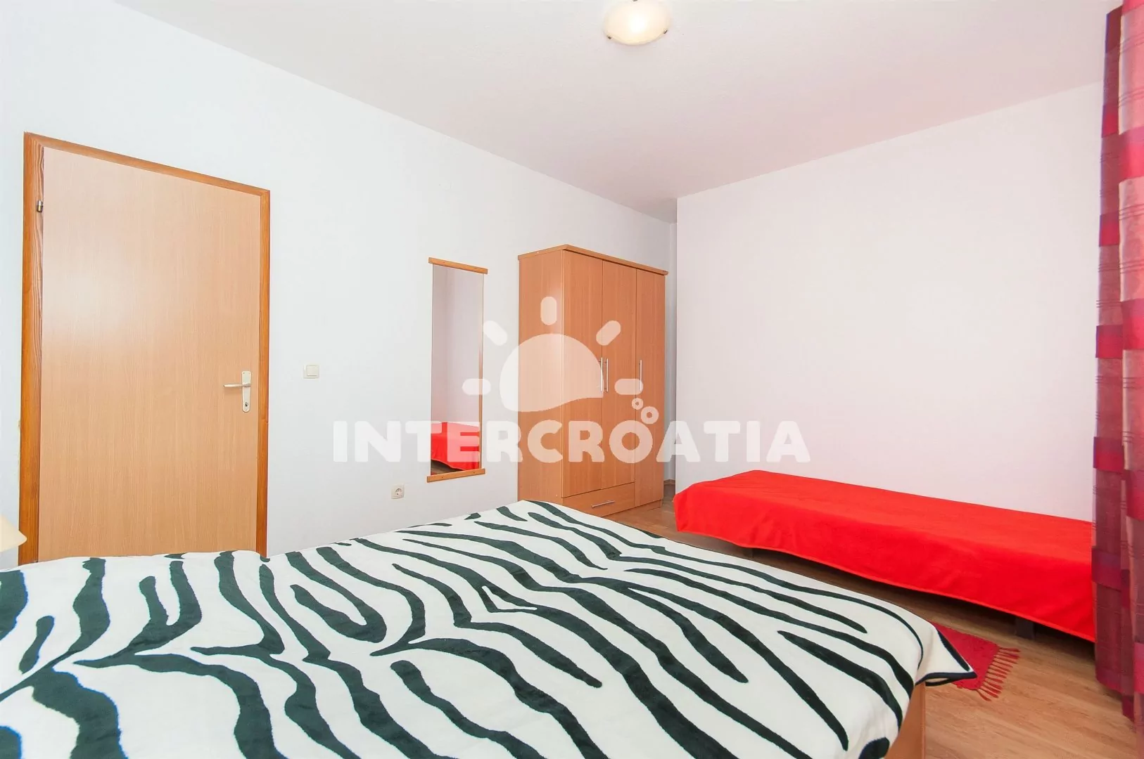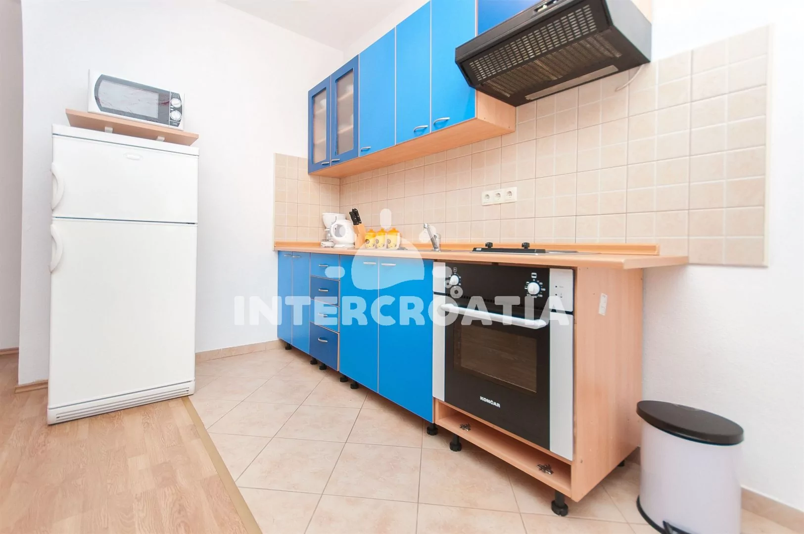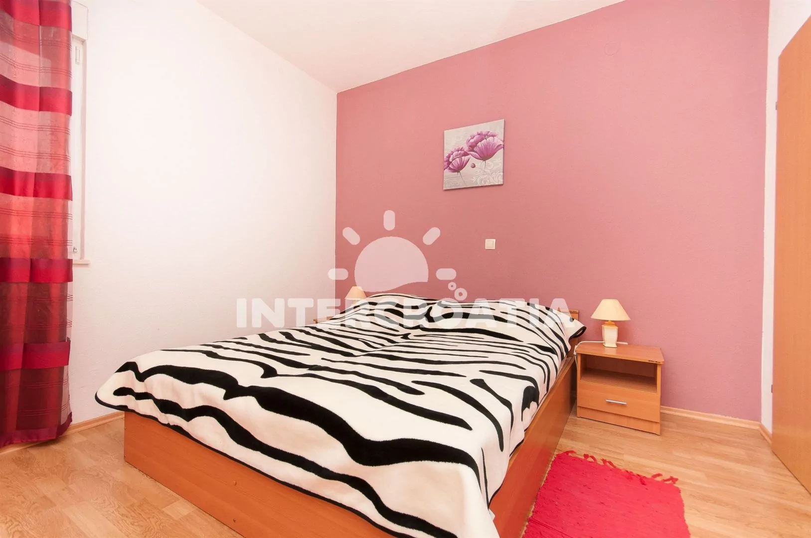 Apartmán s výhledem do klidné ulice a balkonem s venkovním posezením. Apartmán je zařízený pro 4 až 5 osob a nachází se v 1. patře vilky. Kuchyň je spojena s obývacím pokojem. Kuchyňská linka se sporákem, digestoří, troubou, mikrovlnnou troubou, kávovarem, rychlovarnou konvicí, nádobím a lednicí s mrazákem. Obývací pokoj s jídelním stolem pro 6 osob, rozložitelnou pohovkou (extra lůžko pro 1 osobu), televizí se satelitním programem, klimatizací a vstupem na balkon. První i druhá ložnice je vybavena vždy s jedním dvoulůžkem. Koupelna se sprchovým koutem, pračkou, umyvadlem a wc. Hostům je k dispozici parkování u objektu zdarma.