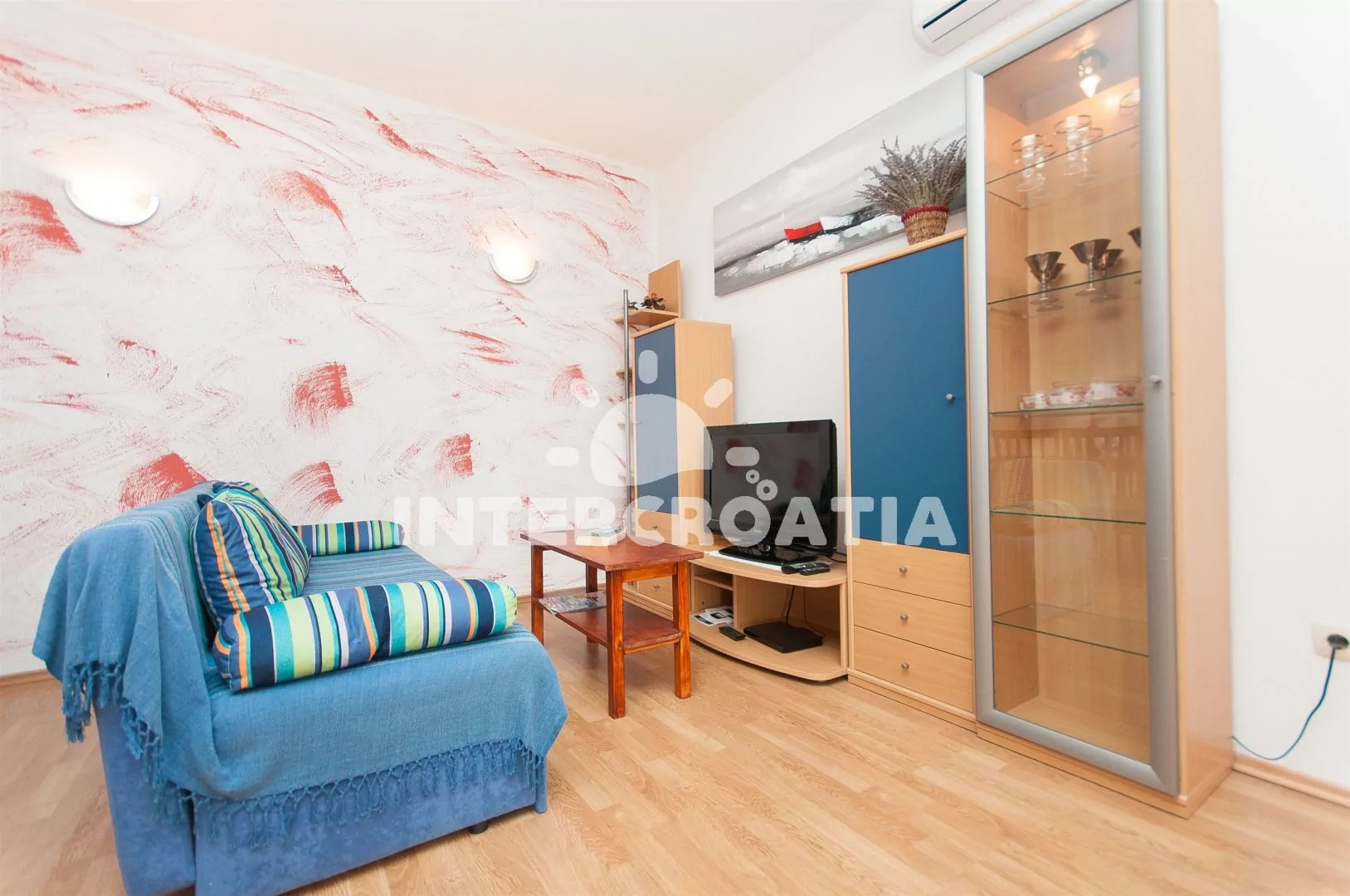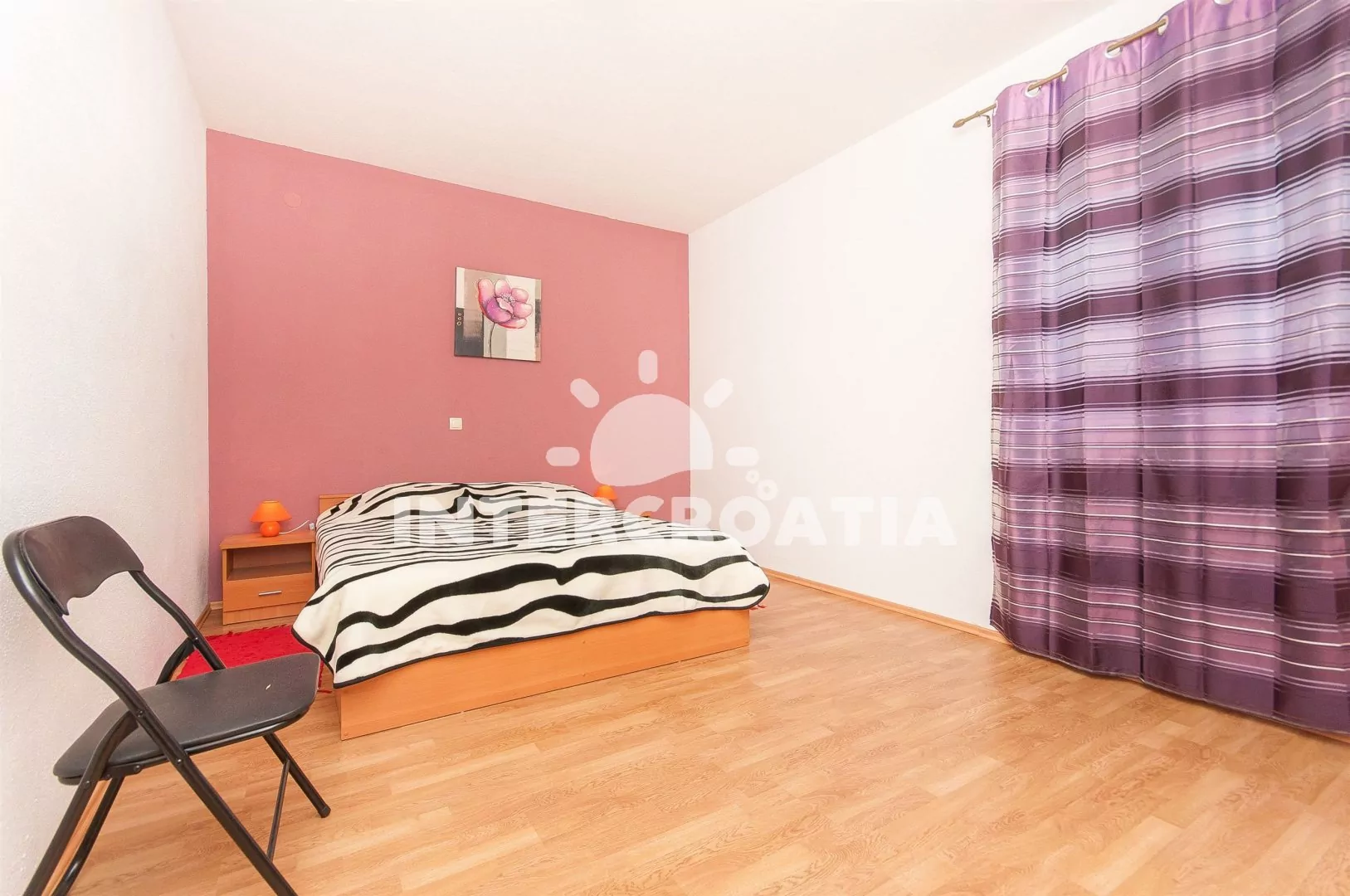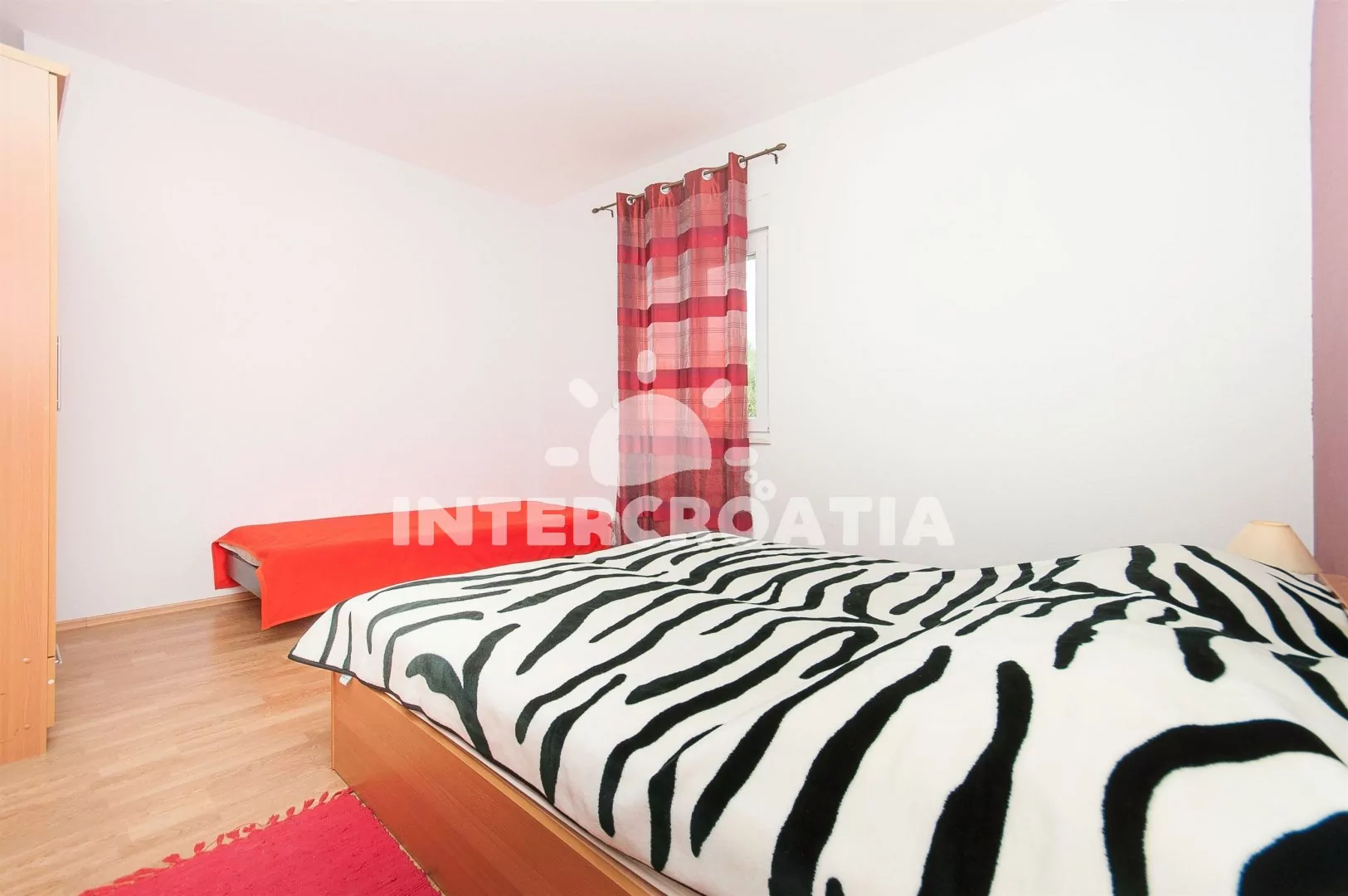 Apartmán s výhledem do klidné ulice a balkonem s venkovním posezením. Apartmán je zařízený pro 4 až 5 osob a nachází se v 1. patře vilky. Kuchyň je spojena s obývacím pokojem. Kuchyňská linka se sporákem, digestoří, troubou, mikrovlnnou troubou, kávovarem, rychlovarnou konvicí, nádobím a lednicí s mrazákem. Obývací pokoj s jídelním stolem pro 6 osob, rozložitelnou pohovkou (extra lůžko pro 1 osobu), televizí se satelitním programem, klimatizací a vstupem na balkon. První i druhá ložnice je vybavena vždy s jedním dvoulůžkem. Koupelna se sprchovým koutem, pračkou, umyvadlem a wc. Hostům je k dispozici parkování u objektu zdarma.