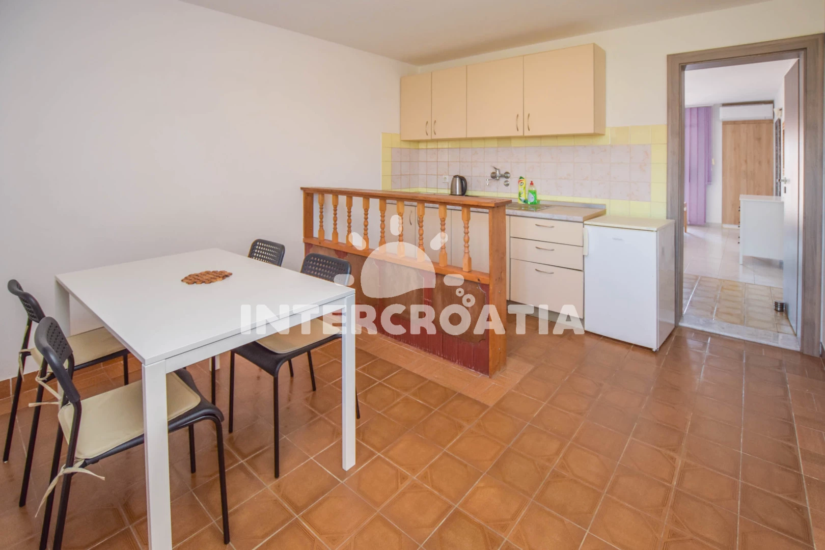 Vzdálenosti: Moře 300 m, pláž 350 m (písčitá a oblázková), restaurace 350 m, bar 500 m, centrum 900 m, supermarket 900 m, lékárna 900 m, ambulance 900 m, směnárna 900 m, veřejná doprava 1 km, pošta 1,1 km, čerpací stanice 2,4 km, trajekt (Biograd) 3,2 km, muzeum 3,2 km, letiště (Zadar) 20,5 km, park Plitvice 30 km,