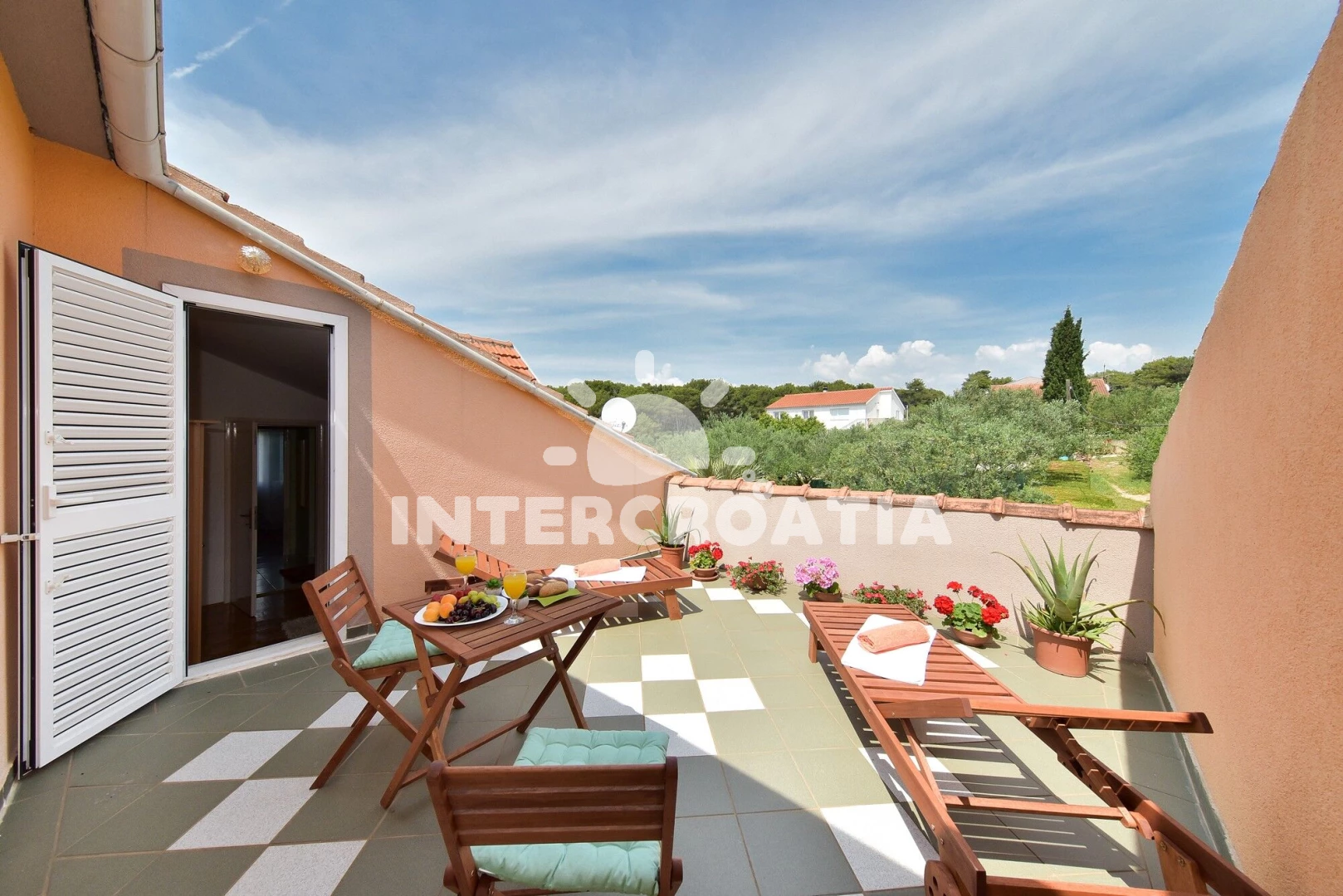 Vzdálenosti: Moře 900 m, pláž 900 m (oblázková a betonové desky), supermarket 200 m, veřejná doprava 500 m, lékárna 800 m, ambulance 800 m, bar 900 m, pošta 900 m, centrum 900 m, restaurace 900 m, čerpací stanice 3 km, marina 4,4 km, trajekt (Biograd) 4,4 km, letiště (Zadar) 19,3 km, park Plitvice 30 km,