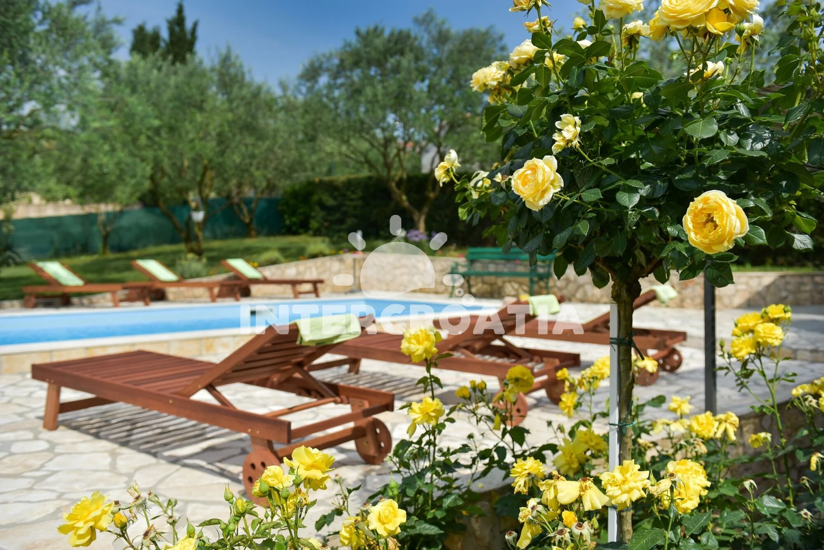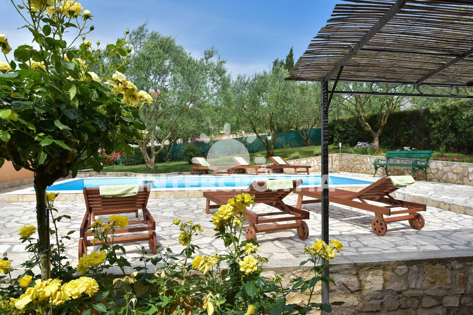 Apartmán se nachází 900 m od moře a pláže. Pláž je oblázková a betonové desky. Apartmán disponuje bazénem s lehátky pro ubytované hosty. U objektu je k dispozici společná zahrada s posezením a grilem. Parkování je před domem.
