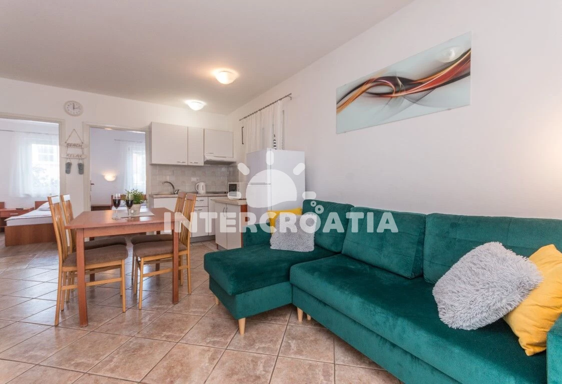 Vzdálenosti: Moře 150 m, pláž 170 m (písčitá a betonové desky), supermarket 100 m, bar 200 m, veřejná doprava 200 m, restaurace 300 m, lékárna 300 m, pošta 500 m, ambulance 500 m, centrum 500 m, banka 3,5 km, marina 3,5 km, čerpací stanice 3,5 km, trajekt (Biograd) 10 km, letiště (Zadar) 20 km, park Plitvice 35 km,