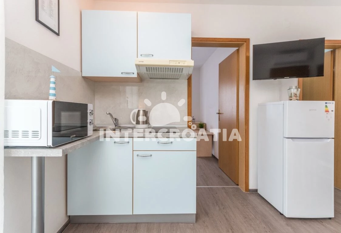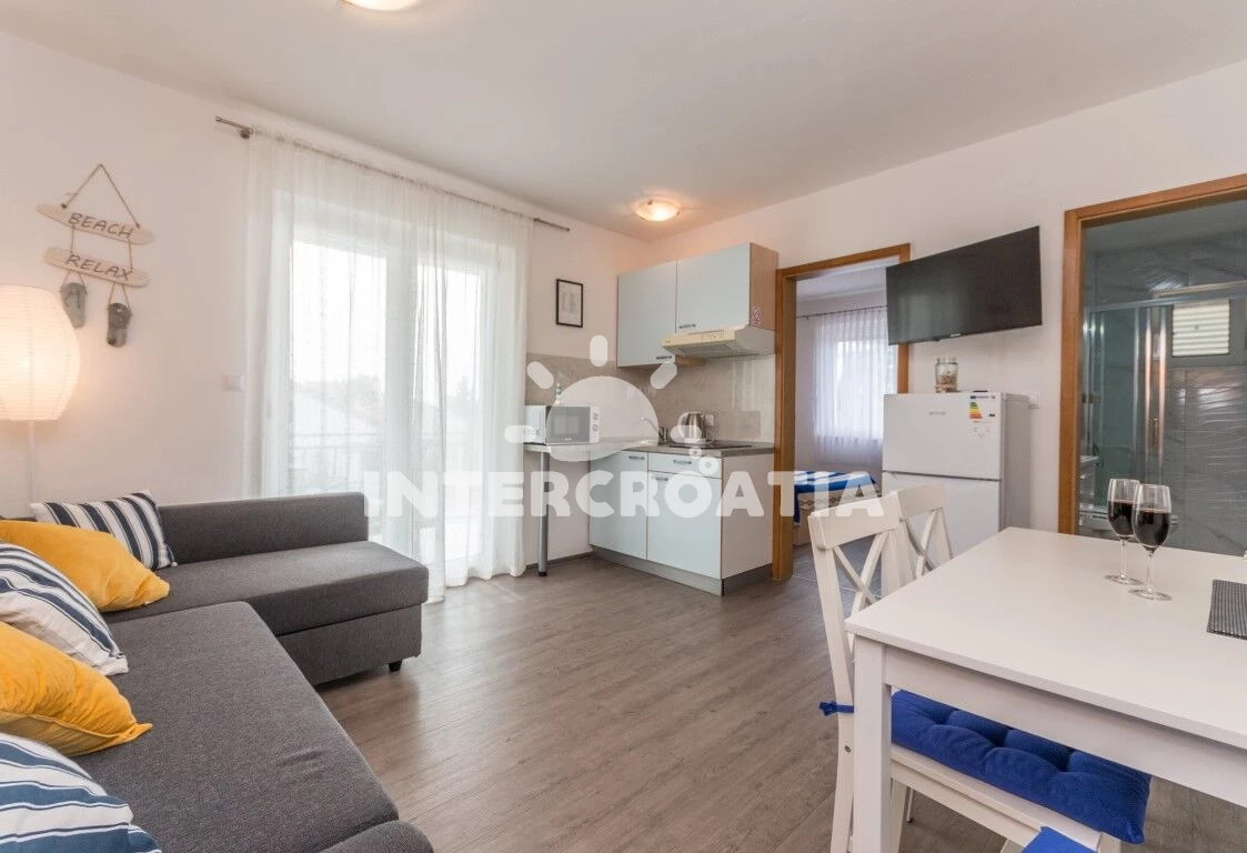 Vzdálenosti: Moře 150 m, pláž 170 m (písčitá a betonové desky), supermarket 100 m, bar 200 m, veřejná doprava 200 m, restaurace 300 m, lékárna 300 m, pošta 500 m, ambulance 500 m, centrum 500 m, banka 3,5 km, marina 3,5 km, čerpací stanice 3,5 km, trajekt (Biograd) 10 km, letiště (Zadar) 20 km, park Plitvice 35 km,