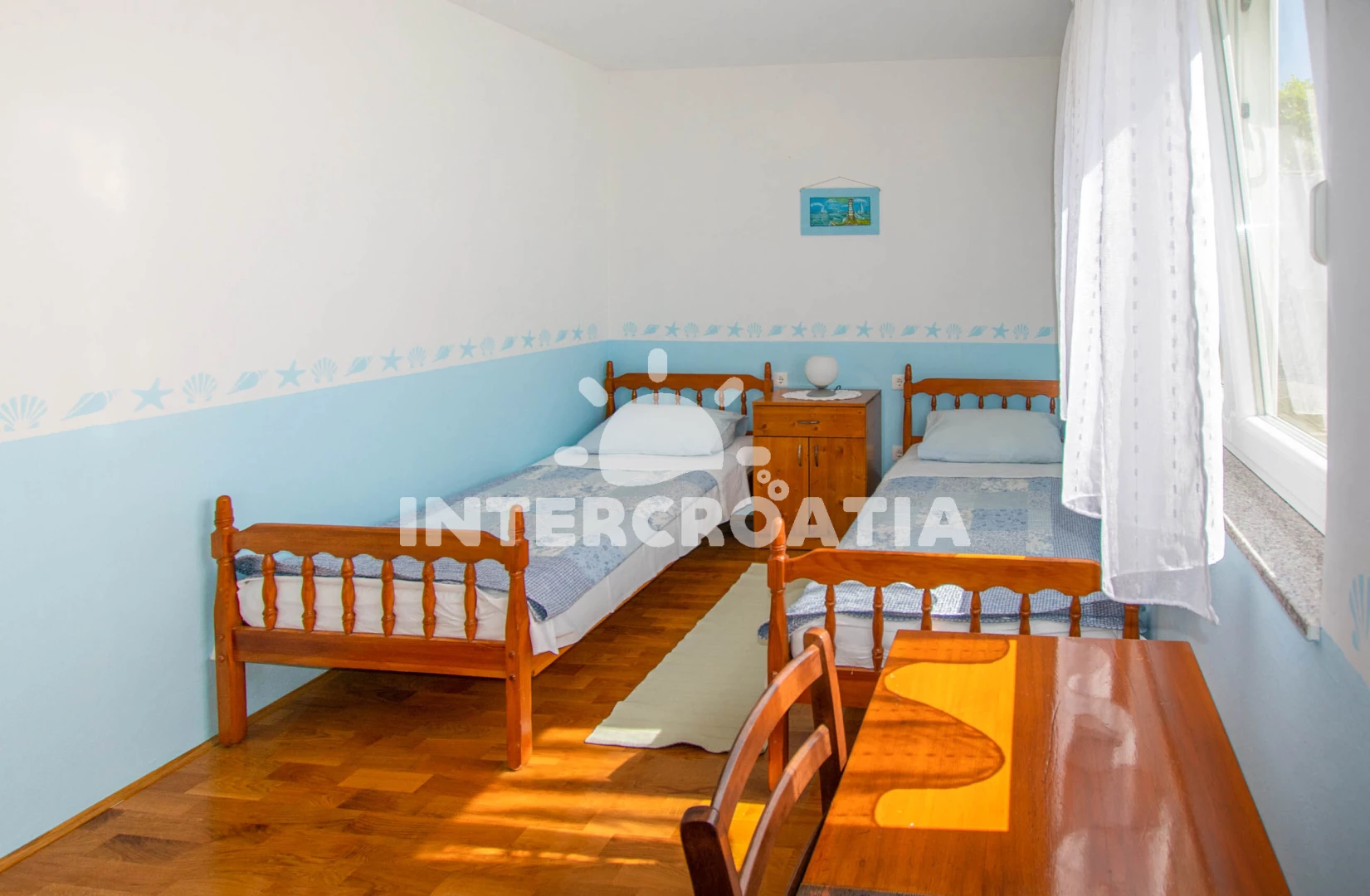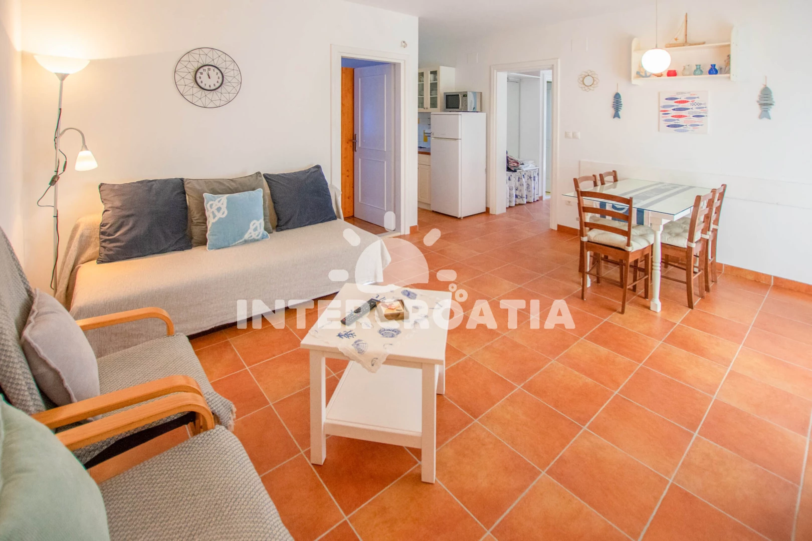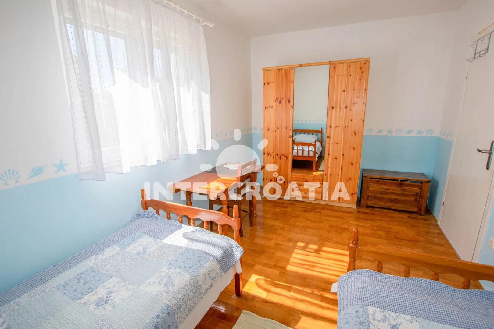 Vzdálenosti: Moře 200 m, pláž 200 m (písčitá a oblázková), restaurace 120 m, bar 200 m, supermarket 300 m, banka 500 m, pošta 500 m, veřejná doprava 500 m, směnárna 500 m, centrum 500 m, půjčovna motorových člunů 500 m, ambulance 550 m, lékárna 550 m, čerpací stanice 2 km, trajekt (Biograd) 4 km, potápění 5 km, park Plitvice 17 km, letiště (Zadar) 25 km,