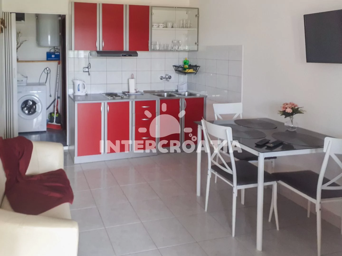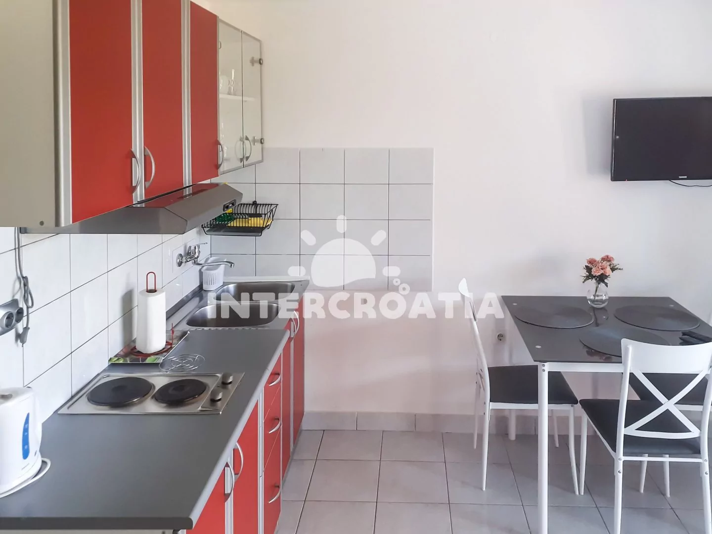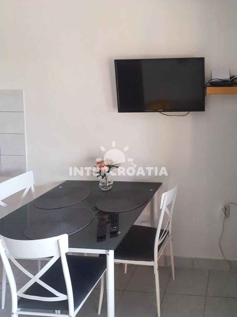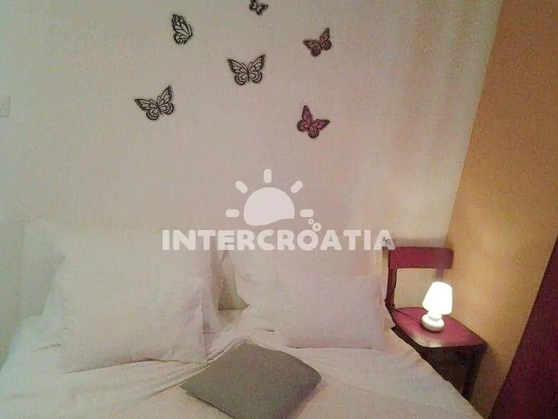 Apartmán (40 m2) s terasou, posezením a výhledem na moře se nachází v přízemí domu. Apartmán má 2 ložnice a je vhodný pro až 3 osoby. Obývací pokoj je spojený s kuchyní. Kuchyňská linka je vybavena…