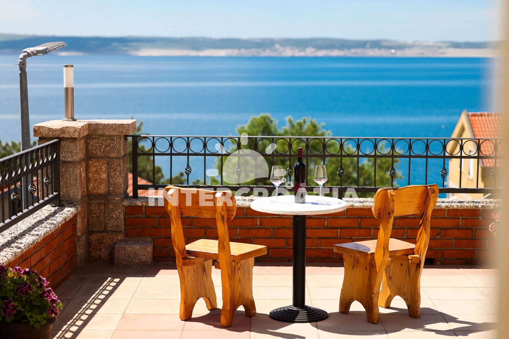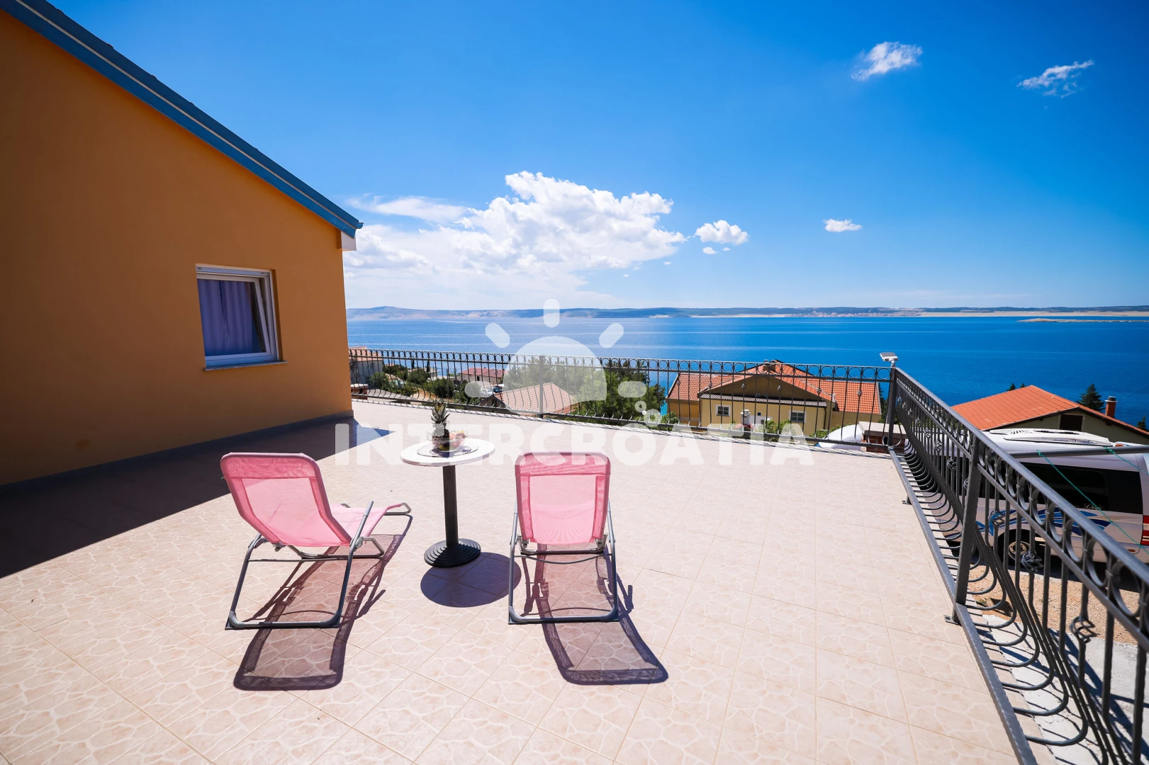 Apartmán (120 m2) s balkonem, a výhledem na moře. Nachází se v 1. patře objektu. Apartmán má 3 ložnice a je vhodný pro až 6 osob. Kuchyňská linka je vybavena varnou deskou, troubou, kávovarem,…