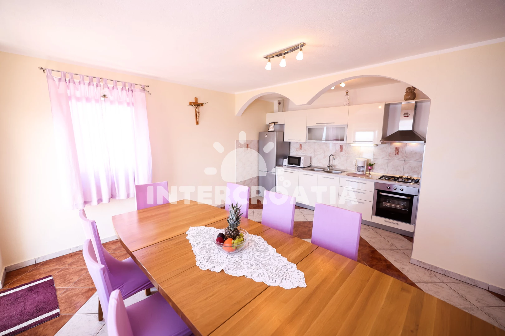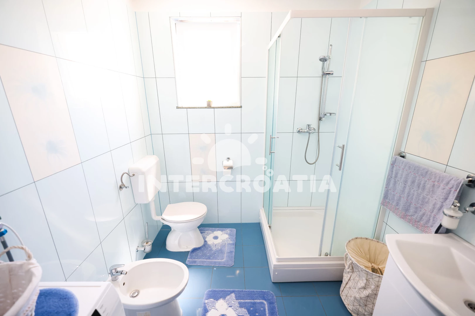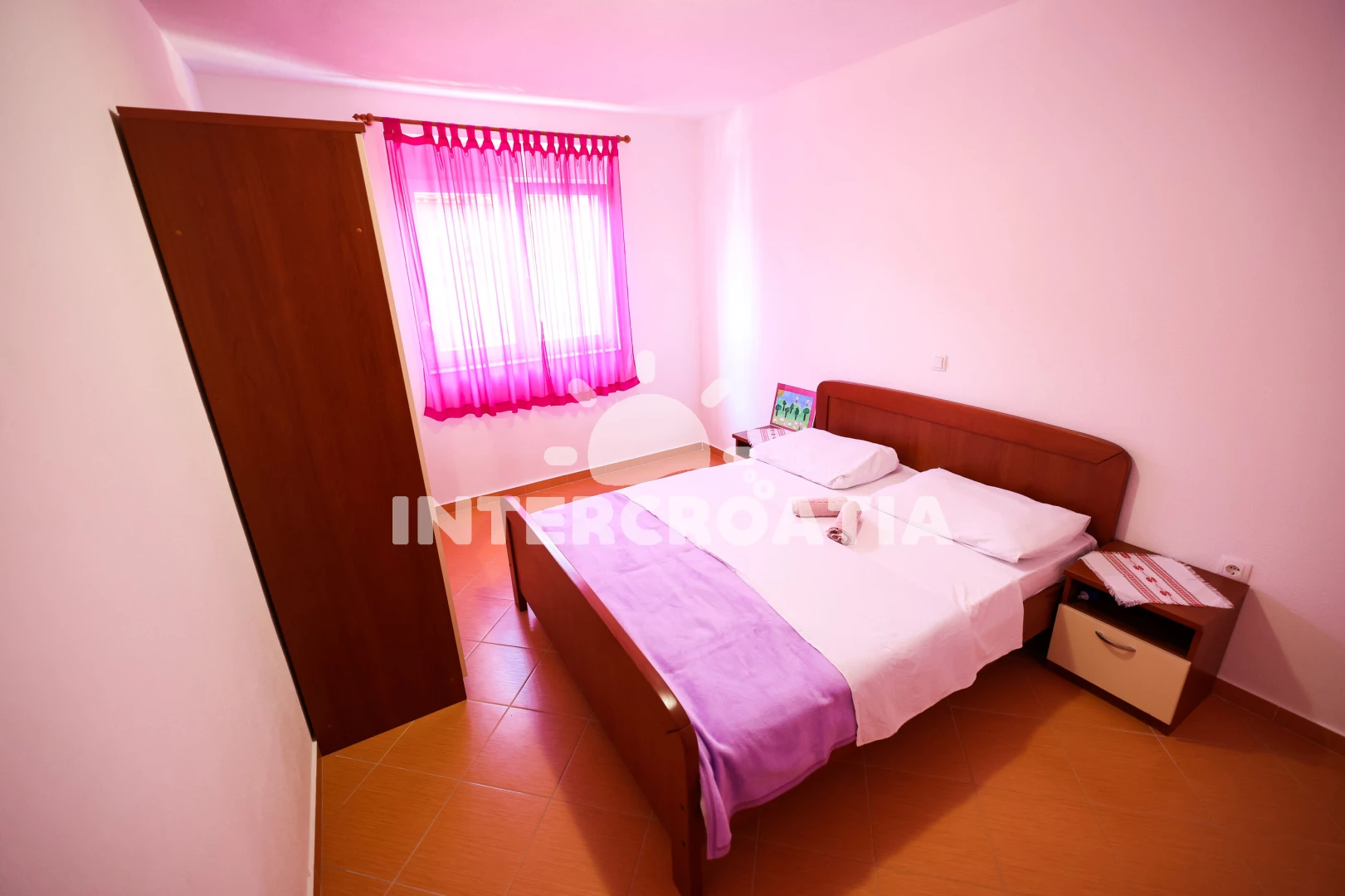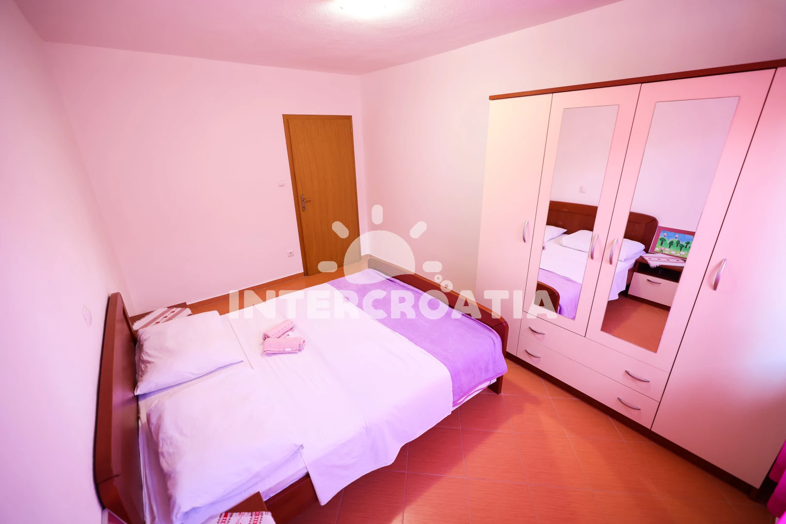 Apartmán se nachází 250 m od moře a pláže. Pláž je skalnatá, oblázková a betonové desky. U objektu je k dispozici společná zahrada s posezením a grilem. Parkování je před domem.