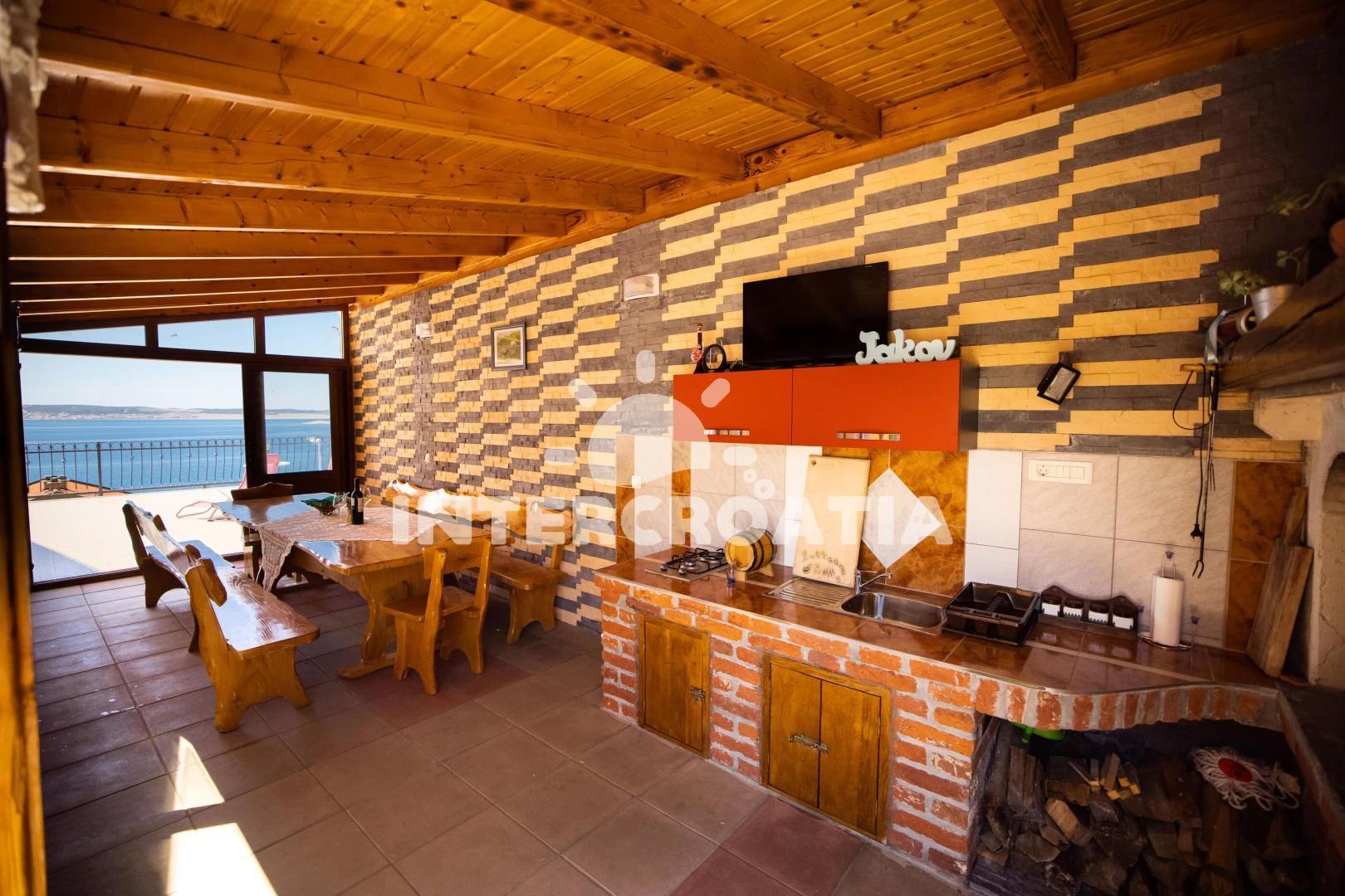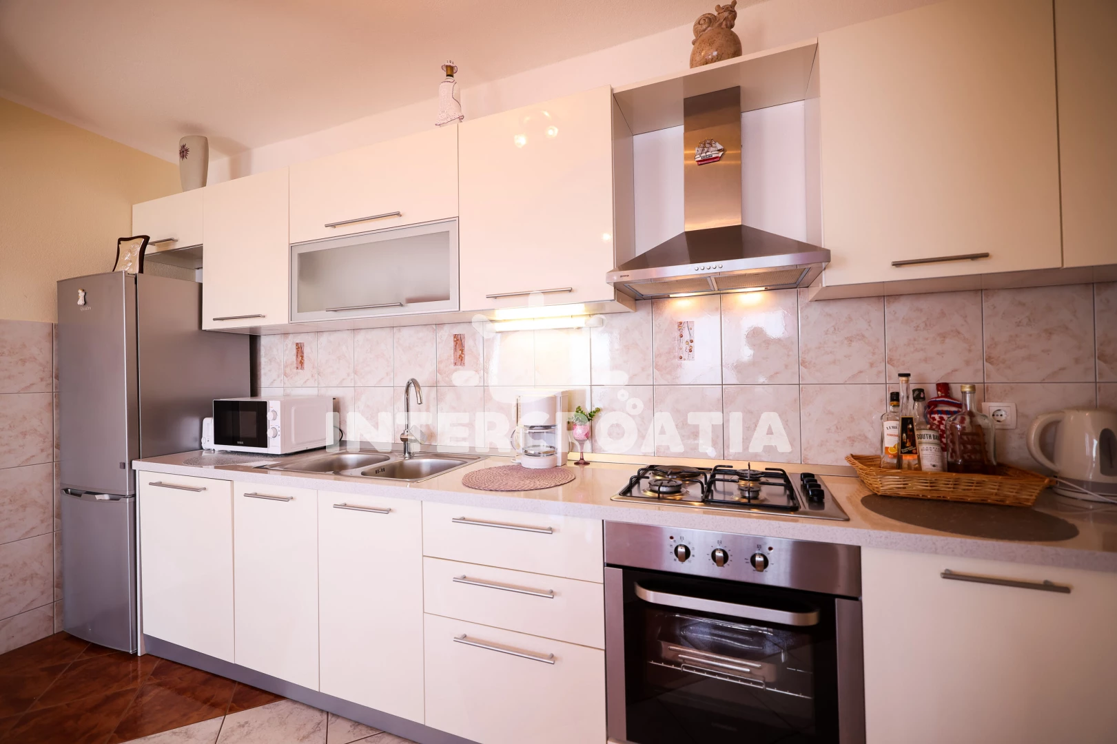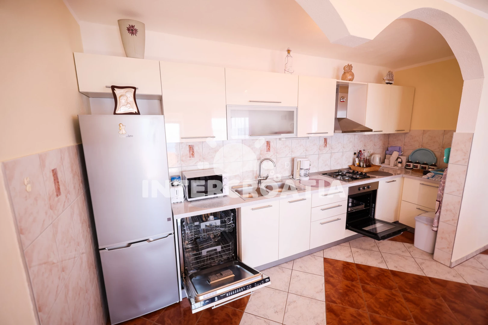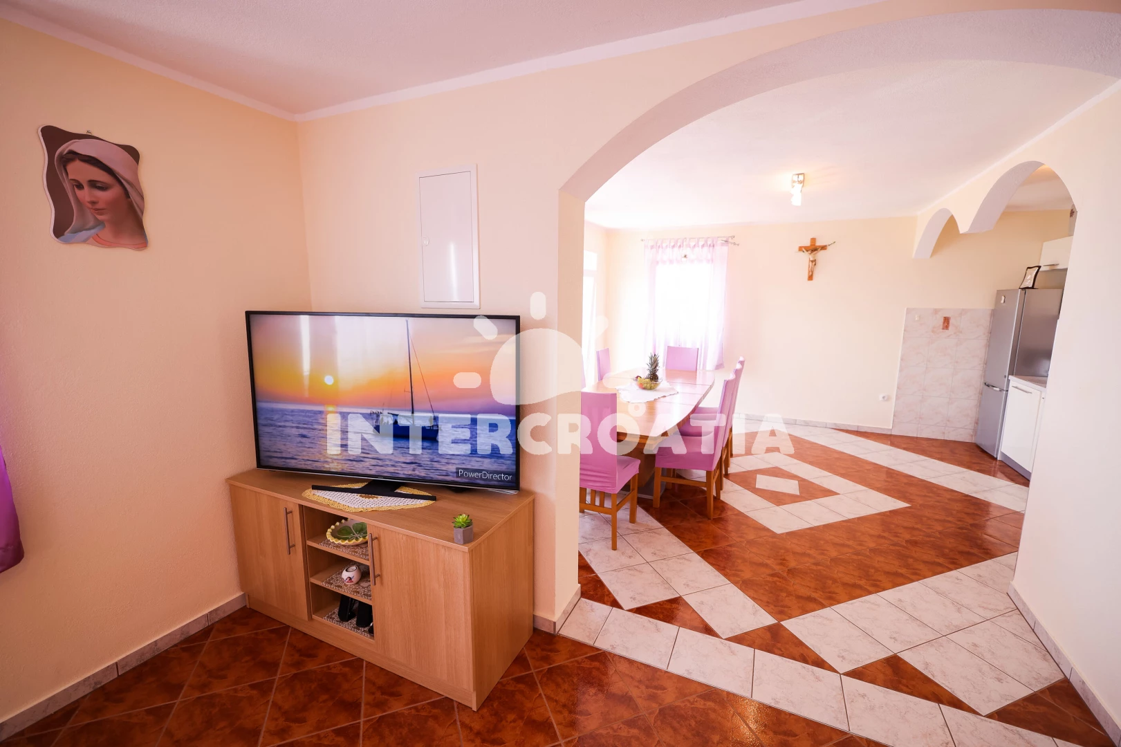 Apartmán se nachází 250 m od moře a pláže. Pláž je skalnatá, oblázková a betonové desky. U objektu je k dispozici společná zahrada s posezením a grilem. Parkování je před domem.