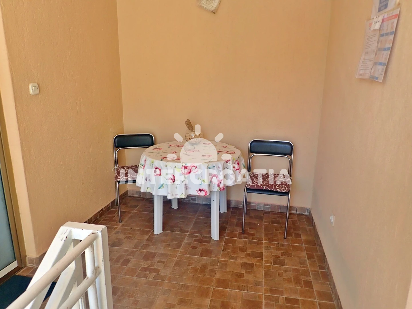 Apartmán se nachází 30 m od moře a pláže. Pláž je oblázková a betonové desky. U objektu je k dispozici společná zahrada s posezením a grilem. Parkování je před domem.
