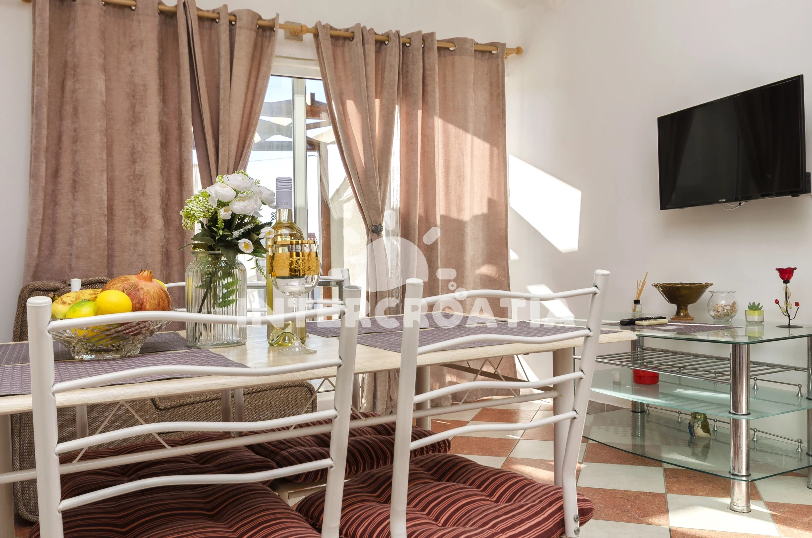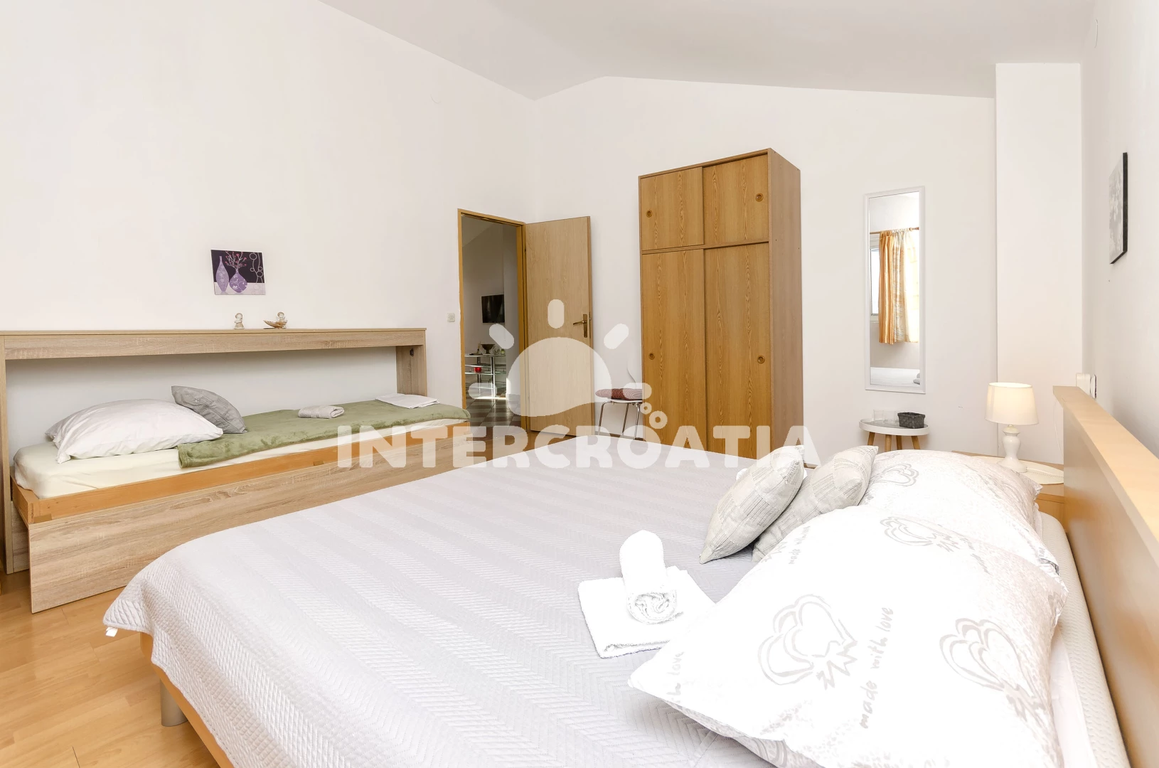 Vzdálenosti: Moře 160 m, pláž 210 m (betonové desky, skalnatá a větší kamení), supermarket 5 m, bar 200 m, restaurace 200 m, banka 300 m, marina 450 m, pošta 450 m, centrum 500 m, lékárna 800 m, park Plitvice 35 km, letiště (Zadar) 65 km, trajekt (Zadar) 65 km,