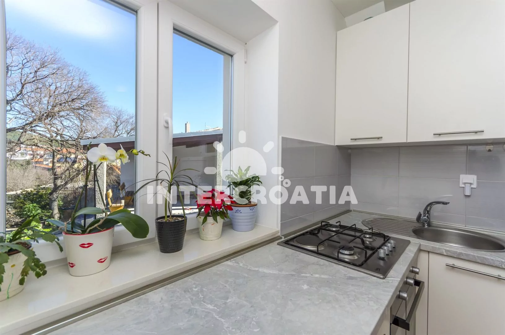 Luxusní dvoupokojový apartmán s terasou, nacházející se v 1. patře domu. Vstup, obývací místnost spojená s kuchyňským koutem. Kuchyňská linka se sporákem, troubou, mikrovlnnou troubou, lednicí s…