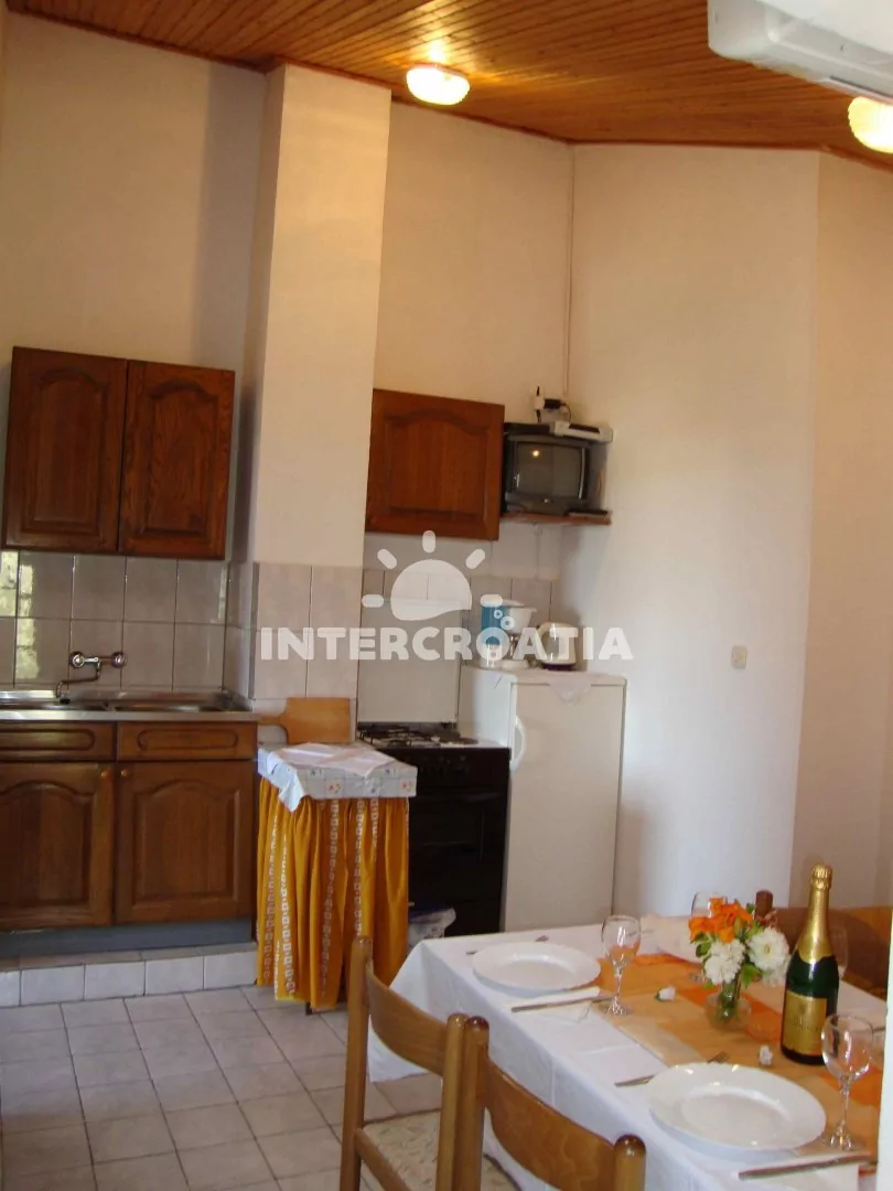 Vzdálenosti: Moře 300 m, pláž (oblázky a větší kamení) 500 m, pláž po silnici 900 m, obchod 300 m, centrum 500 m, pošta 1000 m, lékárna 300 m, zdravotní středisko 400 m, restaurace 200 m, směnárna 300 m, banka 1000 m, muzeum 1000 m, bar 300 m, kotviště pro čluny 300 m, půjčovna kol 2 m, diskotéka 1000 m, čerpací stanice 1000 m, veřejná doprava 200 m, přístav 300 m, letiště 60 km (Zadar).