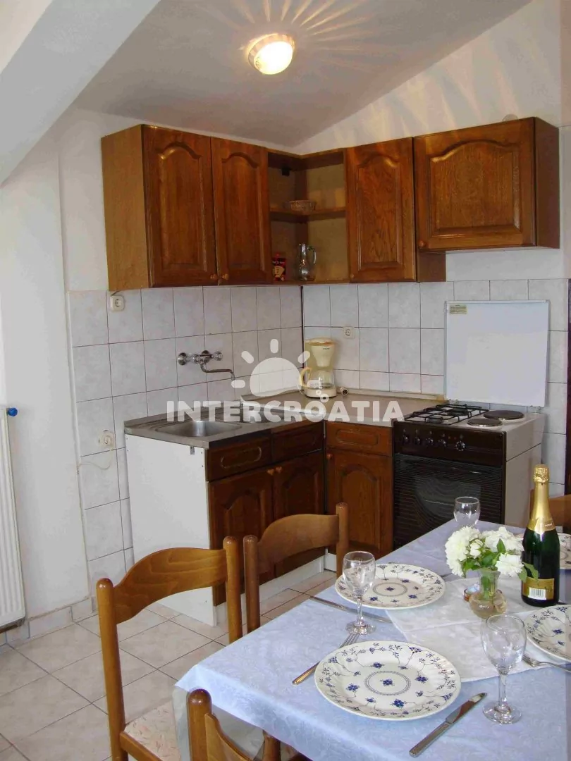 Vzdálenosti: Moře 300 m, pláž (oblázky a větší kamení) 500 m, pláž po silnici 900 m, obchod 300 m, centrum 500 m, pošta 1000 m, lékárna 300 m, zdravotní středisko 400 m, restaurace 200 m, směnárna 300 m, banka 1000 m, muzeum 1000 m, bar 300 m, kotviště pro čluny 300 m, půjčovna kol 2 m, diskotéka 1000 m, čerpací stanice 1000 m, veřejná doprava 200 m, přístav 300 m, letiště 60 km (Zadar).