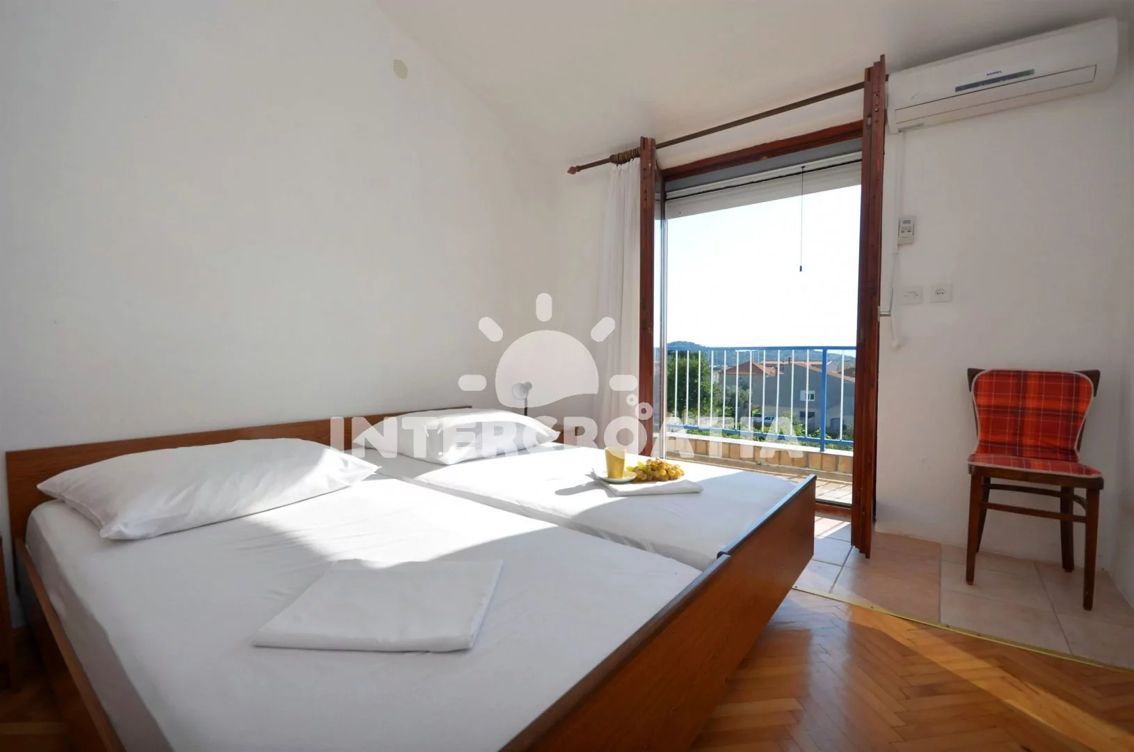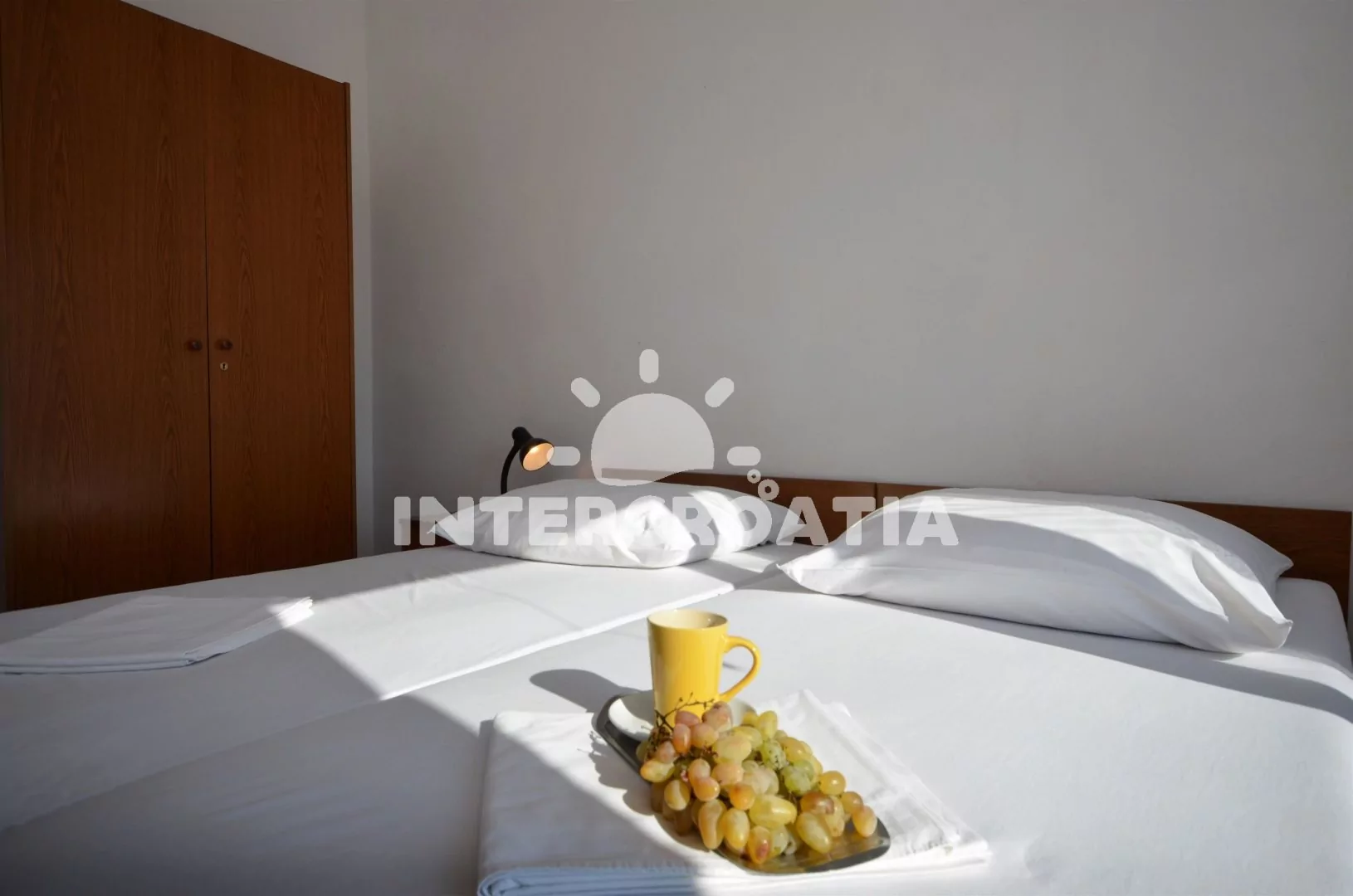Apartmán s terasou a balkonem se nachází v druhém patře a je vhodný pro 2 až 3 osoby. Obývací pokoj je spojený s kuchyní. Kuchyňská linka s elektrickým dvouplotýnkovým sporákem, rychlovarnou konvicí, nádobím a lednicí s mrazákem. Obývací pokoj s jídelním stolem pro 3 osoby, televizí se satelitním programem, rozložitelnou pohovkou (extra lůžko pro 1 osobu) a vstupem na balkon. Ložnice je vybavena jedním dvoulůžkem, klimatizací a vstupem na balkon. Koupelna se sprchovým koutem, umyvadlem a wc. Hostům je k dispozici parkování u objektu zdarma.