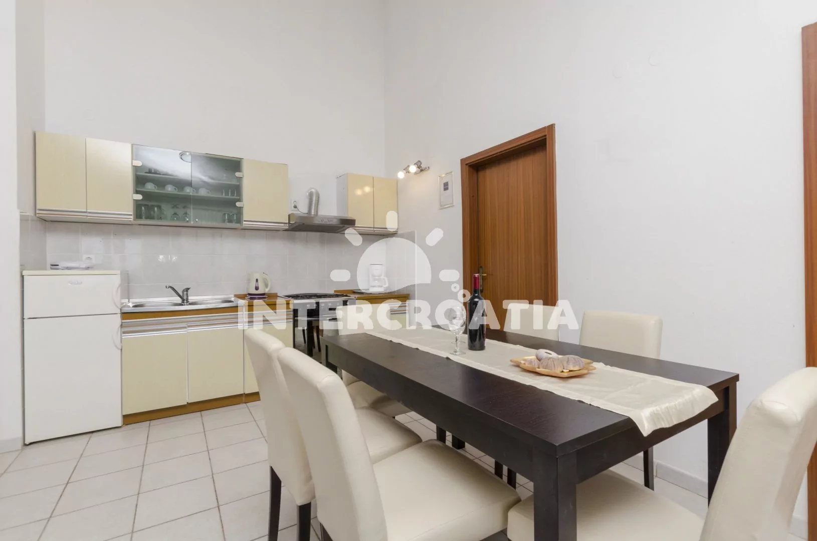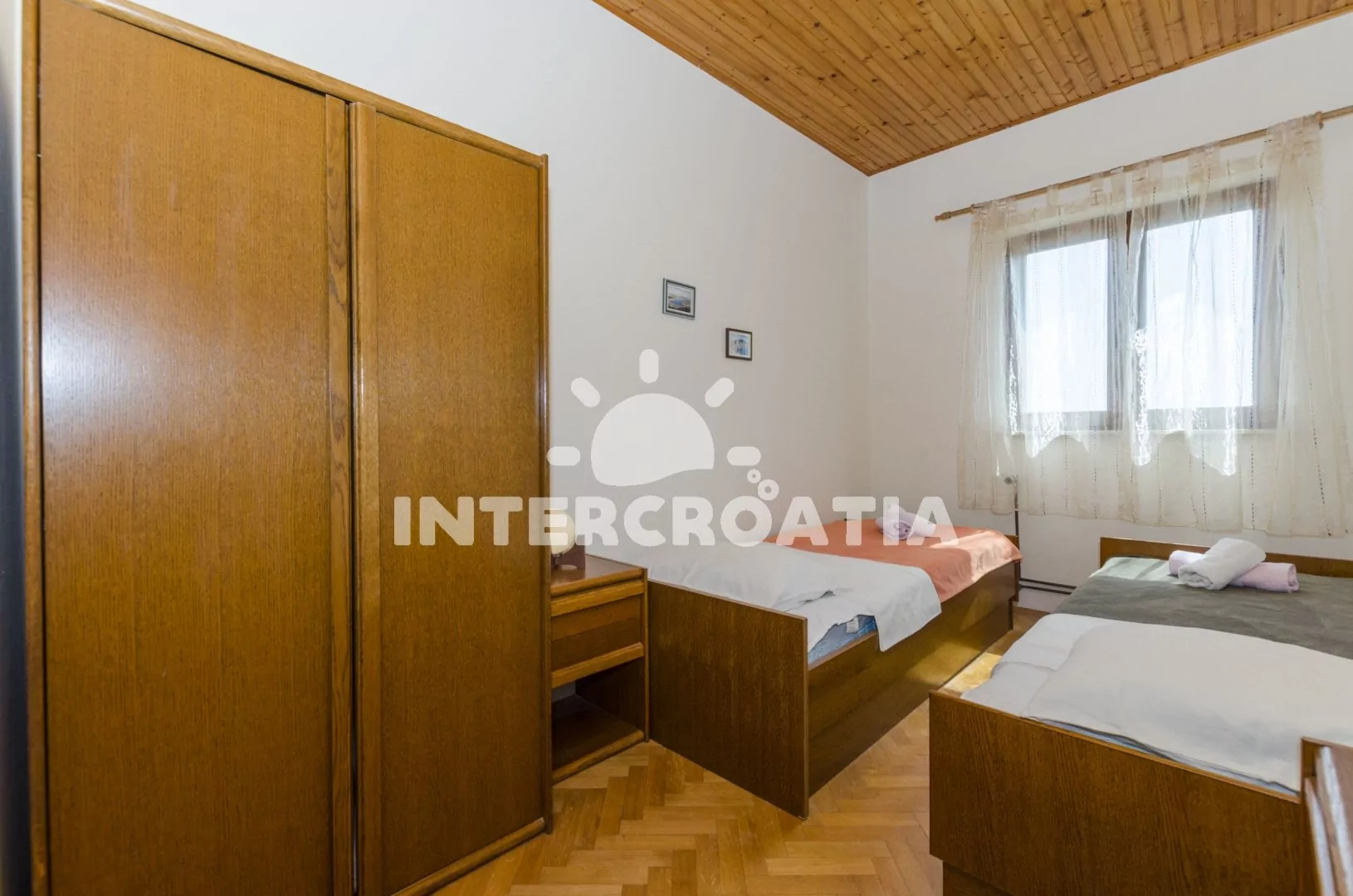 Samostatně stojící a v klidné lokalitě umístěný apartmánový dům s výhledem na moře. Dům disponuje velkým pozemkem se zahradou, stromy, venkovním posezením a grilem. Parkovací místa přímo u domu