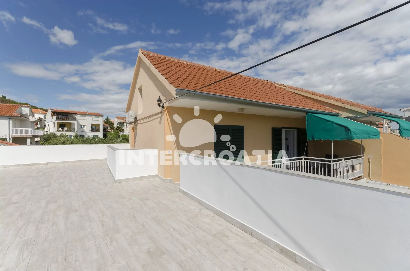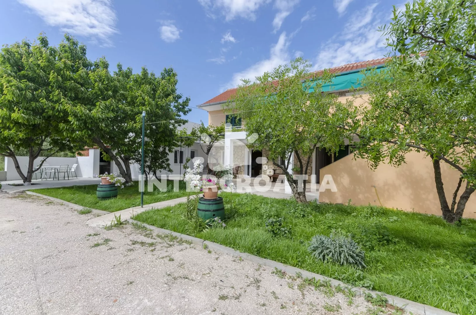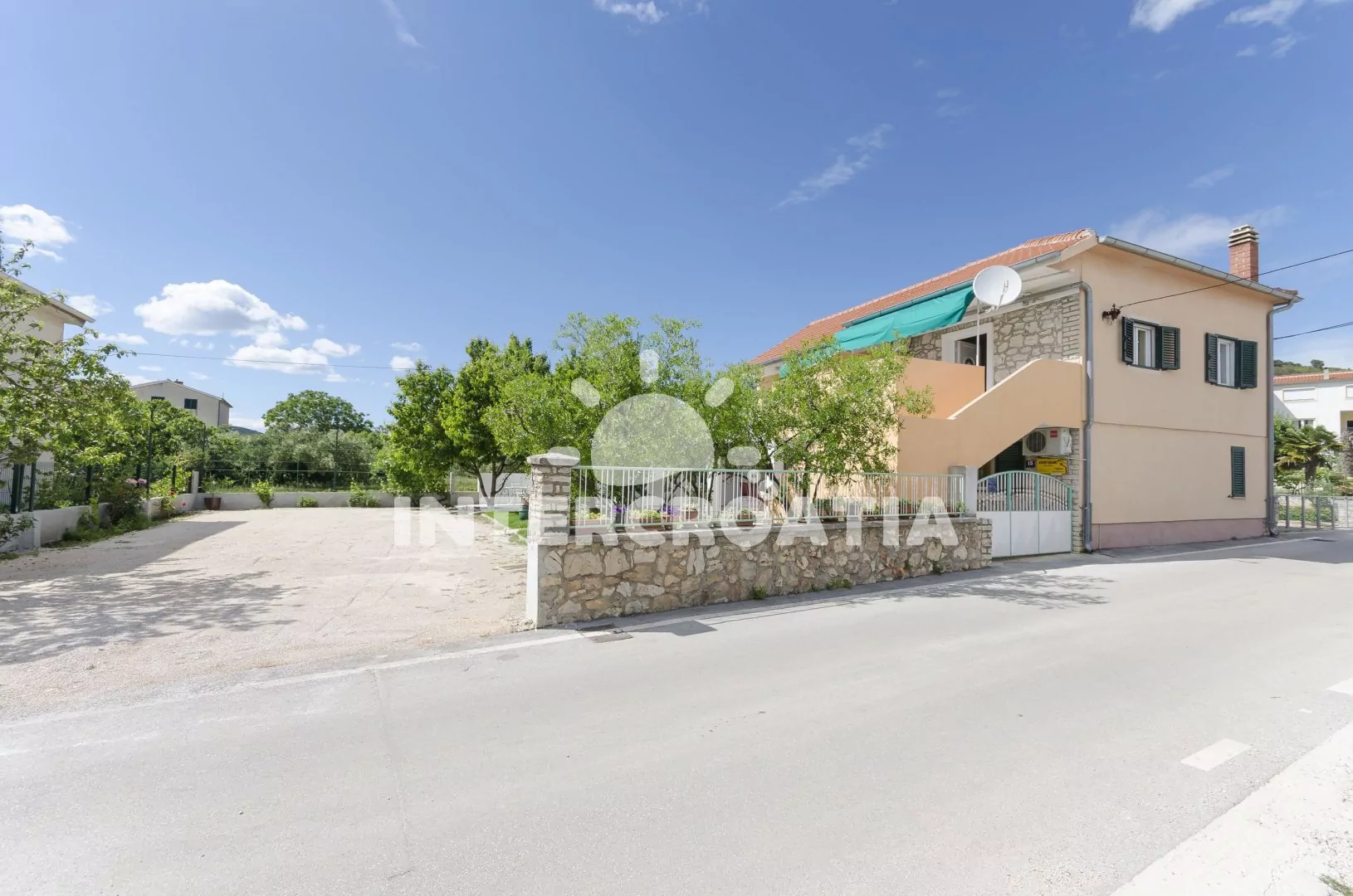 Klidná část Tribunju,na moře nevidíme, ale na kostelík ano...k moři ideální vzdálenost,kousek do obchodu,na tržnici,do pekárny.Moznost zaparkovat auto v zahradě u objektu.Vedle domu neni hned další zástavba, takže "nehledíte" do zdi... Teráska na venkovní posezení akorát + velka terasa k dispozici tak pro 20 lidí...