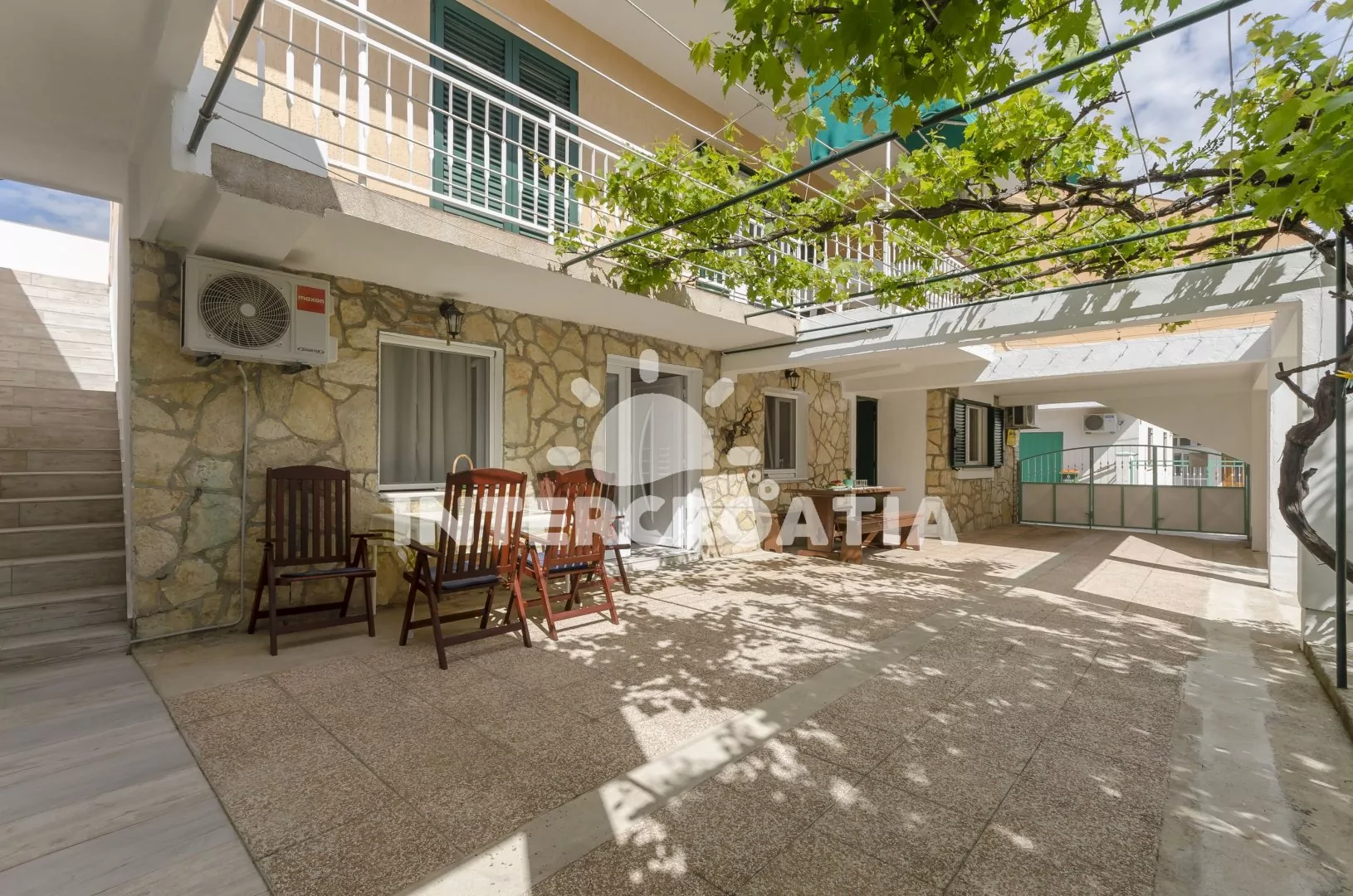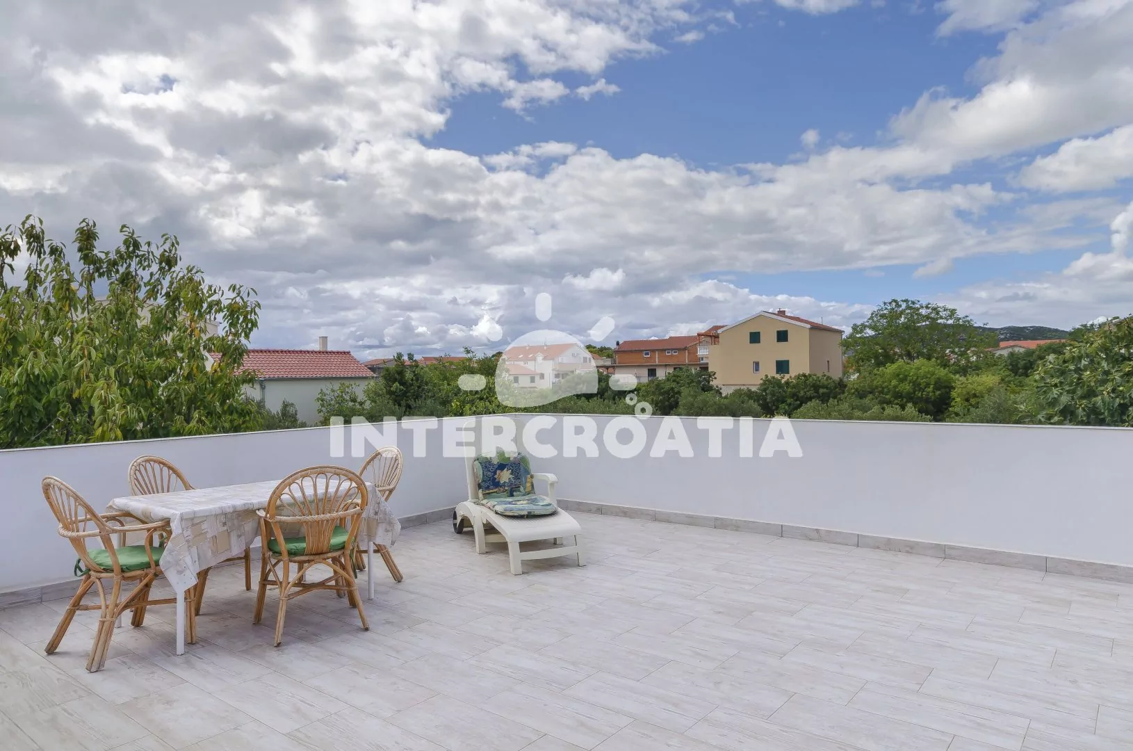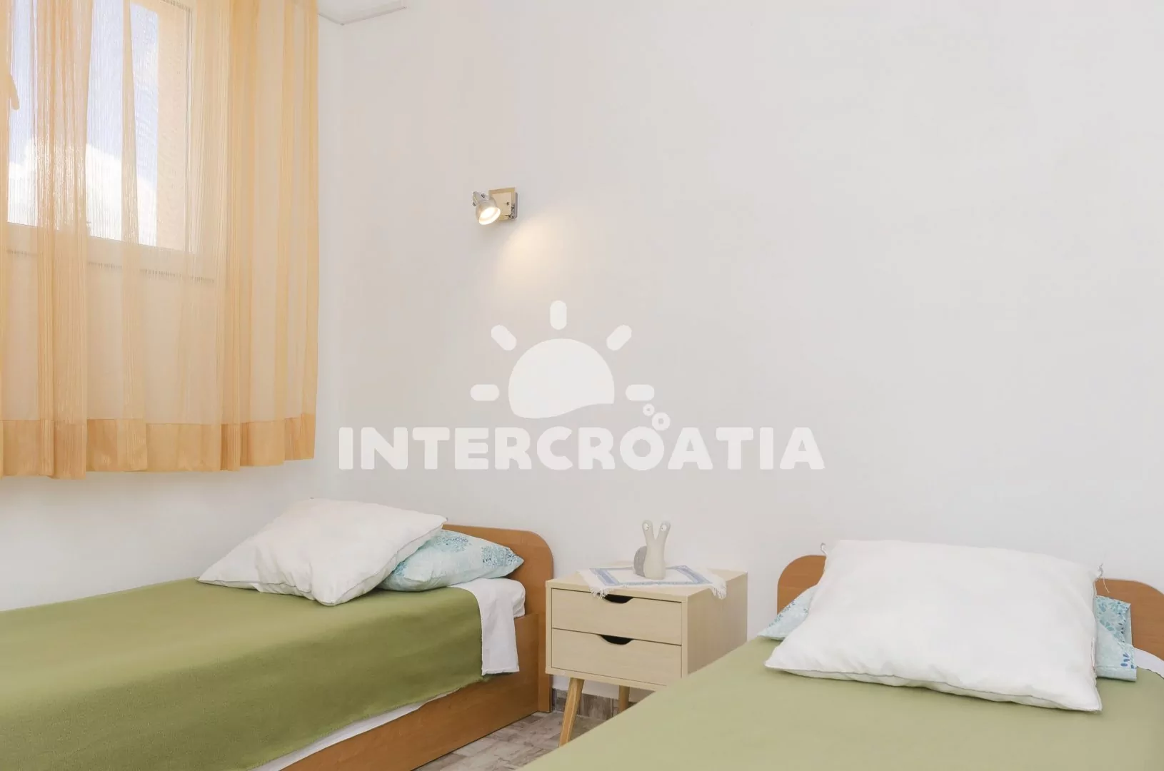 Klidná část Tribunju,na moře nevidíme, ale na kostelík ano...k moři ideální vzdálenost,kousek do obchodu,na tržnici,do pekárny.Moznost zaparkovat auto v zahradě u objektu.Vedle domu neni hned další zástavba, takže "nehledíte" do zdi... Teráska na venkovní posezení akorát + velka terasa k dispozici tak pro 20 lidí...