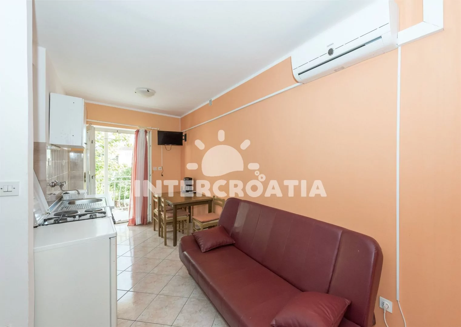 Apartmán (45 m2) s balkonem se nachází v 1. patře a je vhodný pro 4 až 5 osob. Obývací pokoj je spojený s kuchyní. Kuchyňská linka je vybavena varnou deskou, troubou, kávovarem, nádobím a lednicí s…