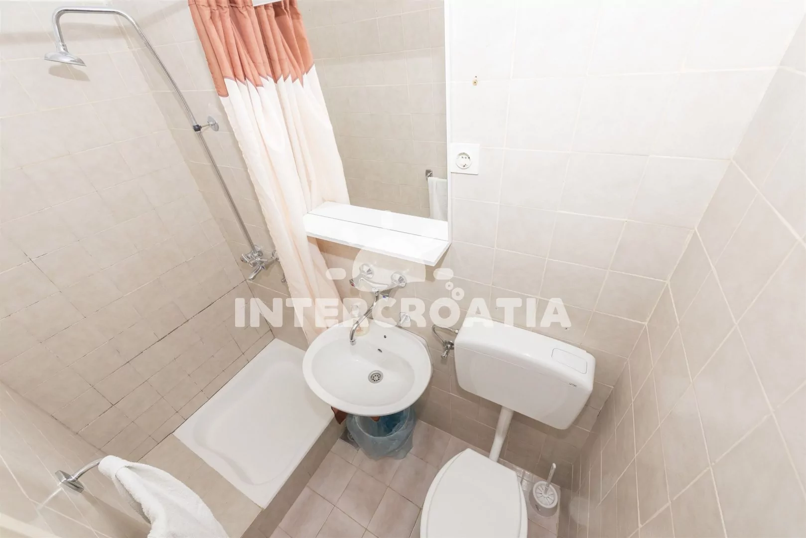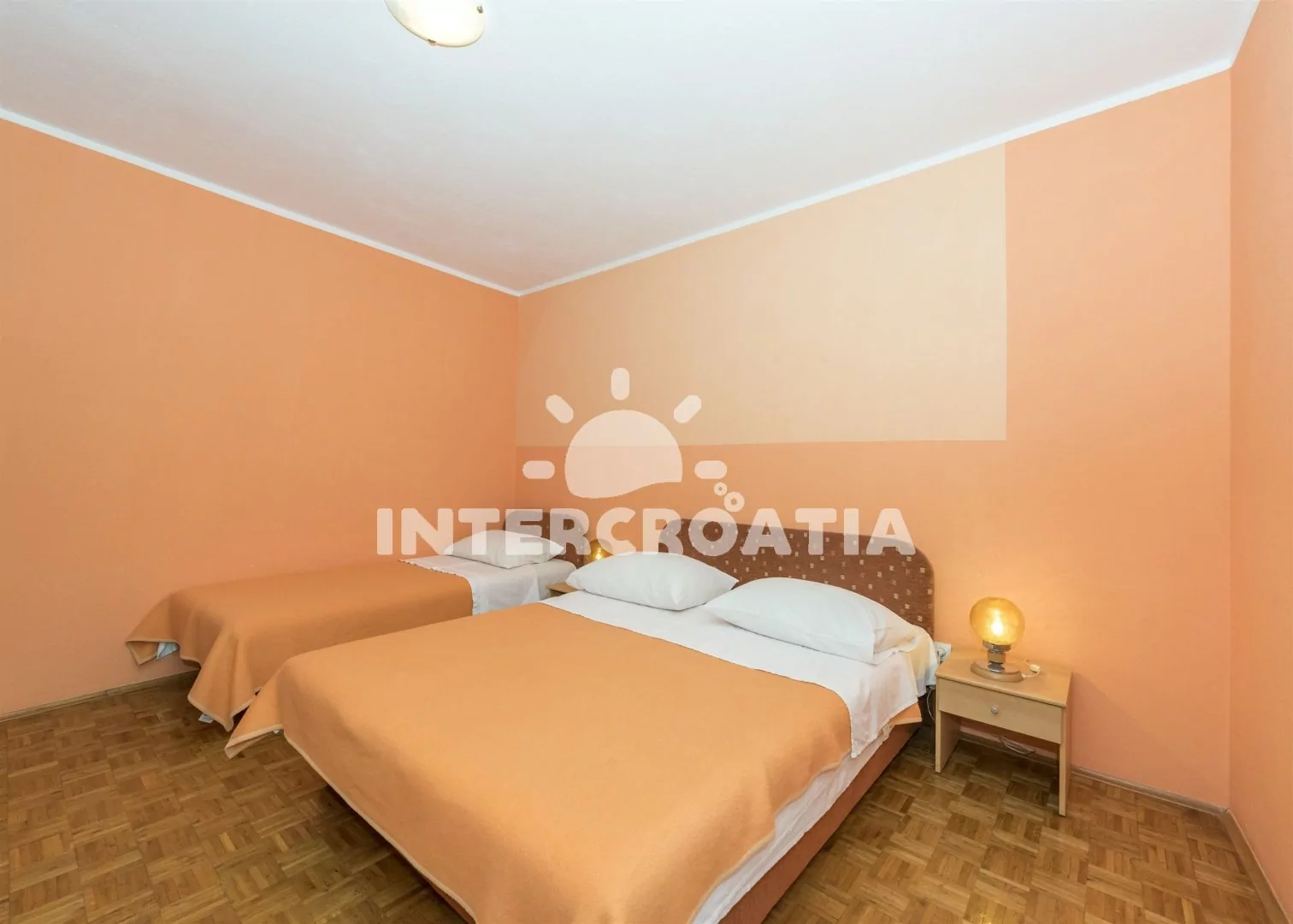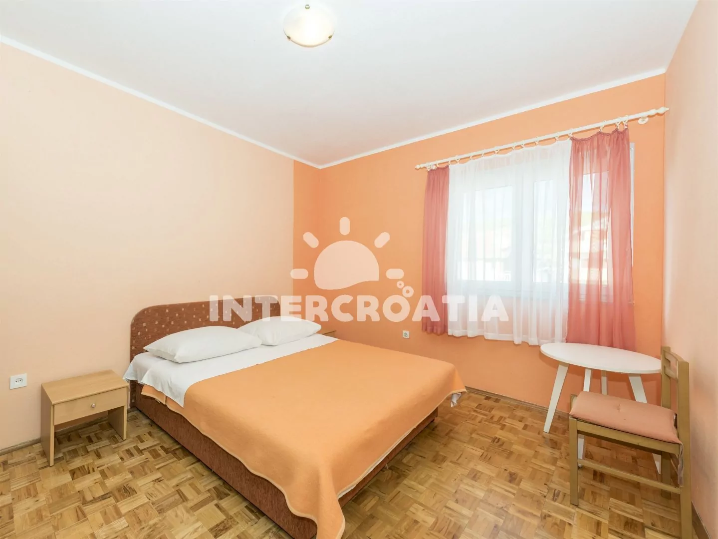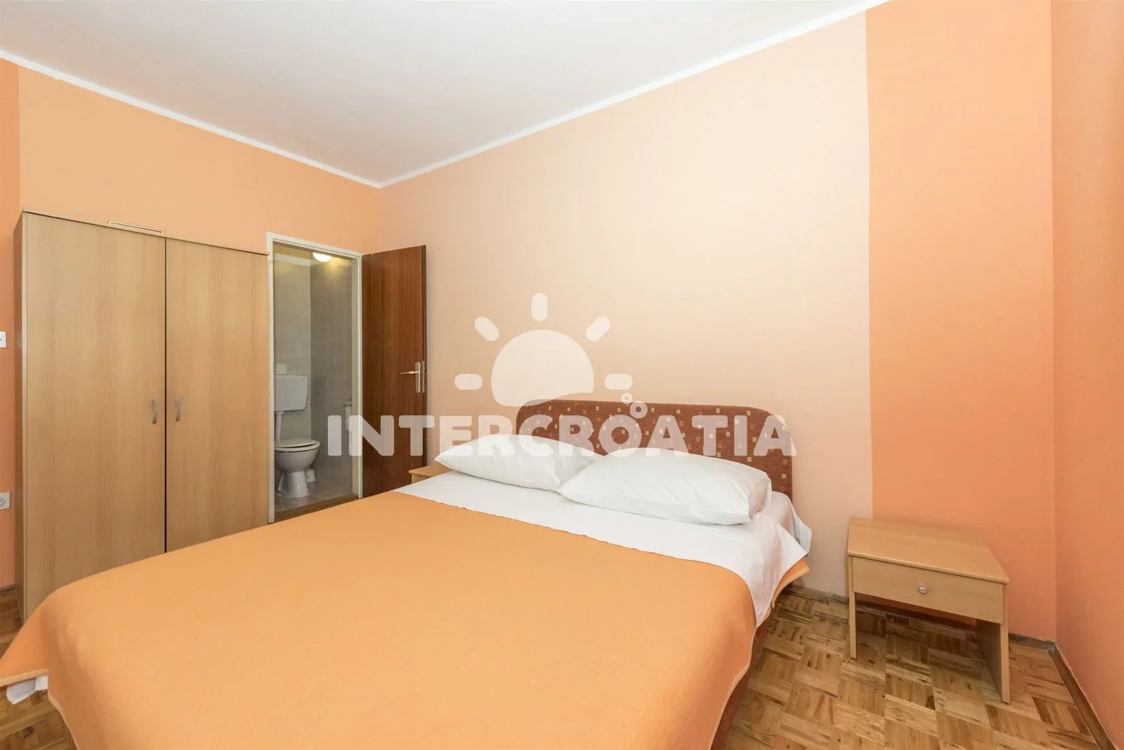 Apartmán (45 m2) s balkonem se nachází v 1. patře a je vhodný pro 4 až 5 osob. Obývací pokoj je spojený s kuchyní. Kuchyňská linka je vybavena varnou deskou, troubou, kávovarem, nádobím a lednicí s mrazákem. Obývací pokoj s jídelním stolem pro 4 osoby, pohovkou, televizí se satelitním programem, klimatizací a vstupem na balkon. První ložnice s jedním dvoulůžkem a jedním jednolůžkem. Druhá ložnice s dvoulůžkem. Dvě koupelny se sprchovým koutem, umyvadlem a wc. Hostům je k dispozici parkování u objektu zdarma.