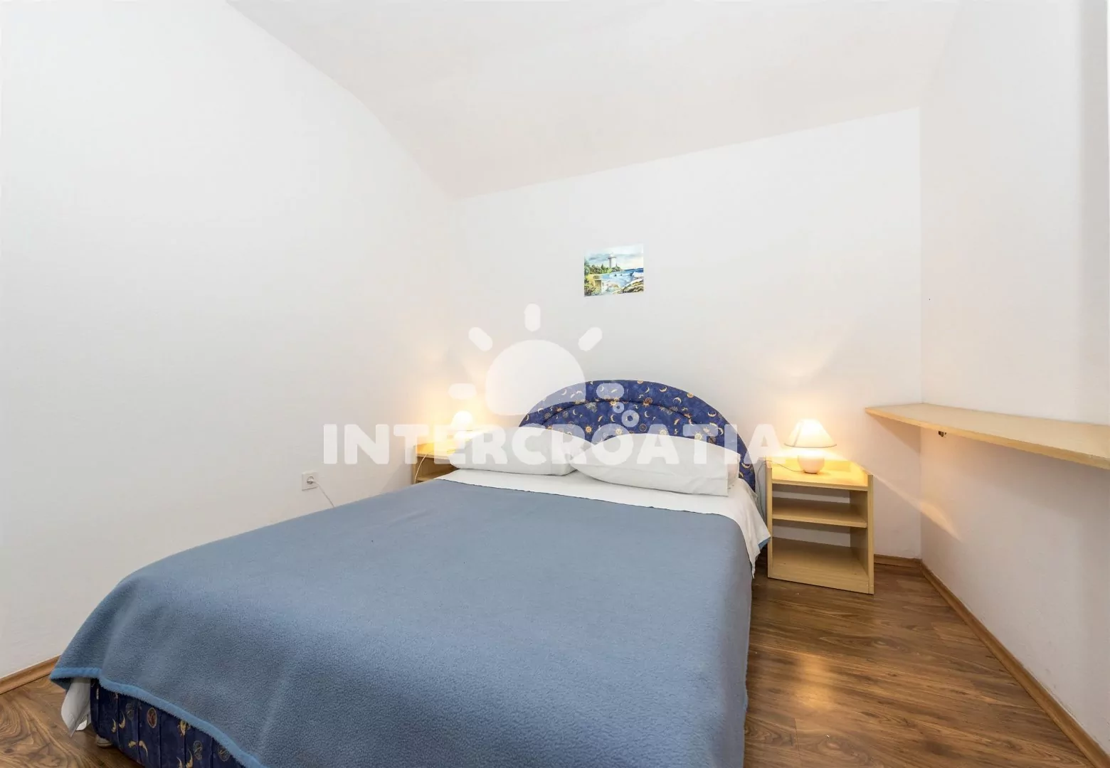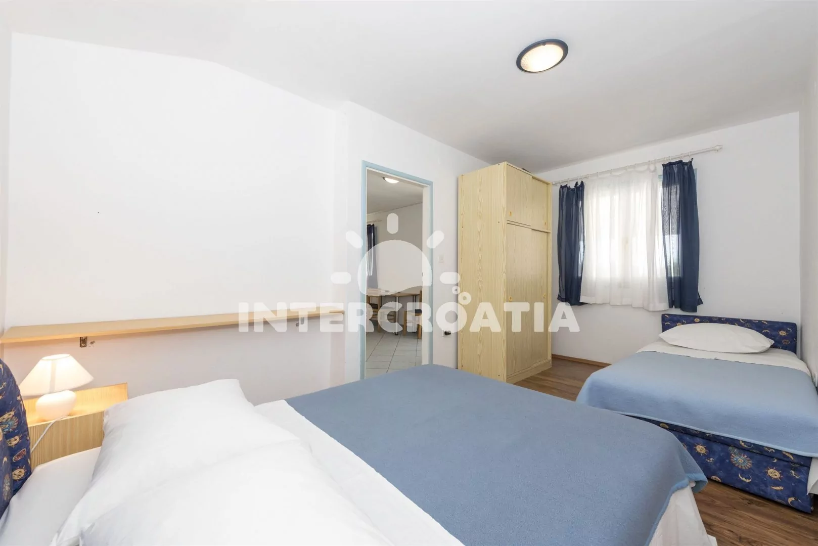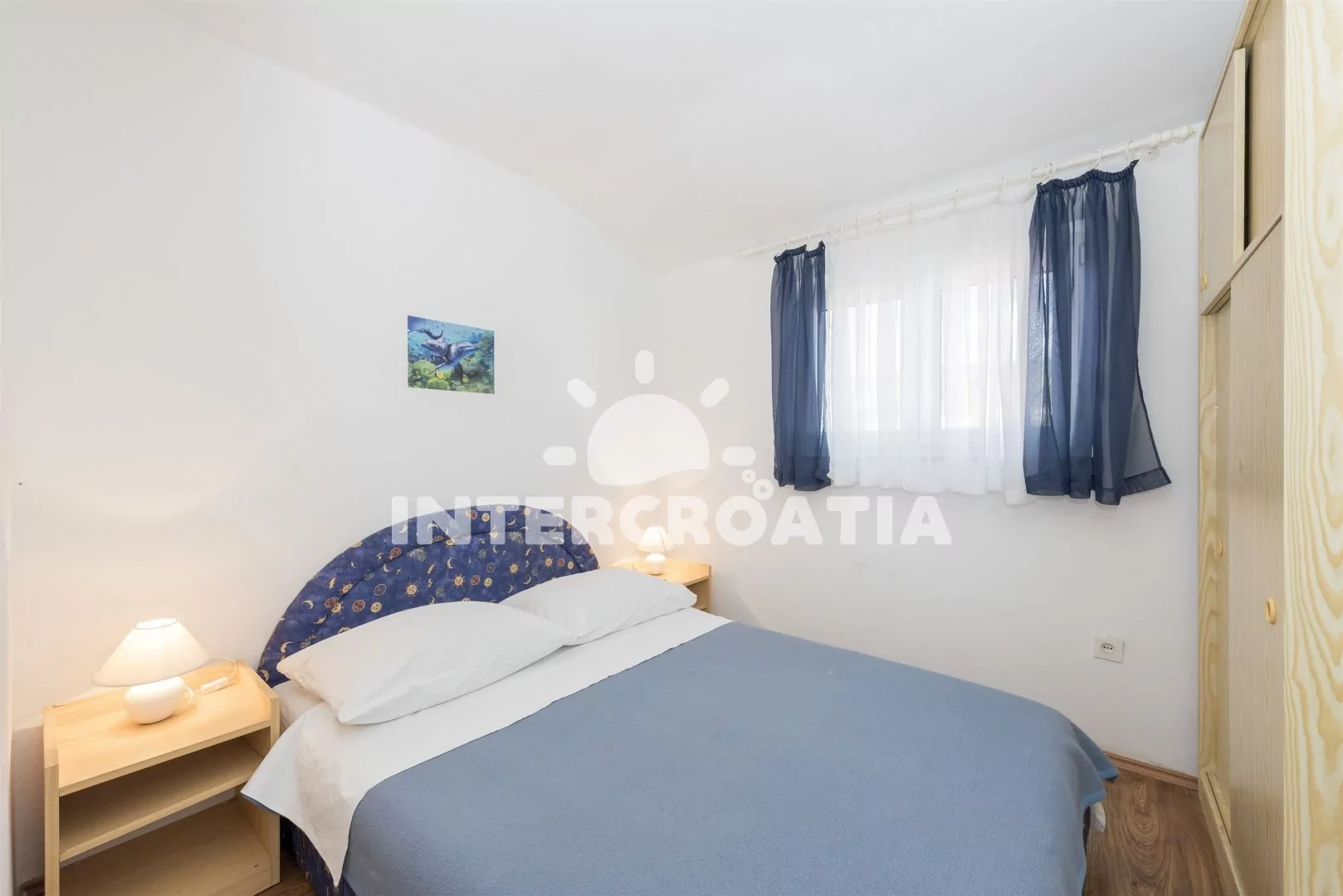 Apartmán (45 m2) s terasou, výhledem na moře a do klidné ulice, se nachází v 2. patře a je vhodný pro 4 až 5 osob. Kuchyňská linka je vybavena varnou deskou, nádobím a lednicí s mrazákem. Dále jídelní stůl pro 4 osoby, televize se satelitním programem a klimatizace. První ložnice s jedním dvoulůžkem a jedním jednolůžkem. Druhá ložnice s dvoulůžkem. Koupelna se sprchovým koutem, umyvadlem a wc. Hostům je k dispozici parkování u objektu zdarma.