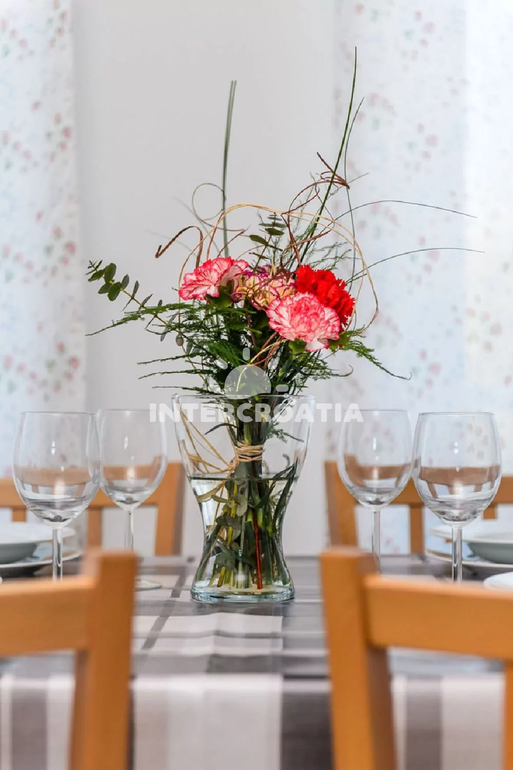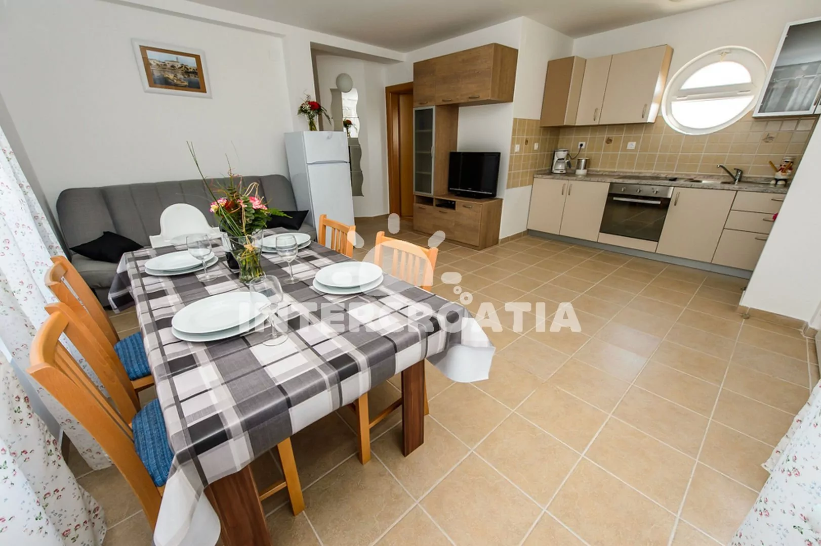 Apartmán (50 m2) s terasou a venkovním posezením se nachází v 1. patře vily a je vhodný pro 4 osoby. Obývací pokoj je spojený s kuchyní. Kuchyňská linka je vybavena varnou deskou, digestoří,…