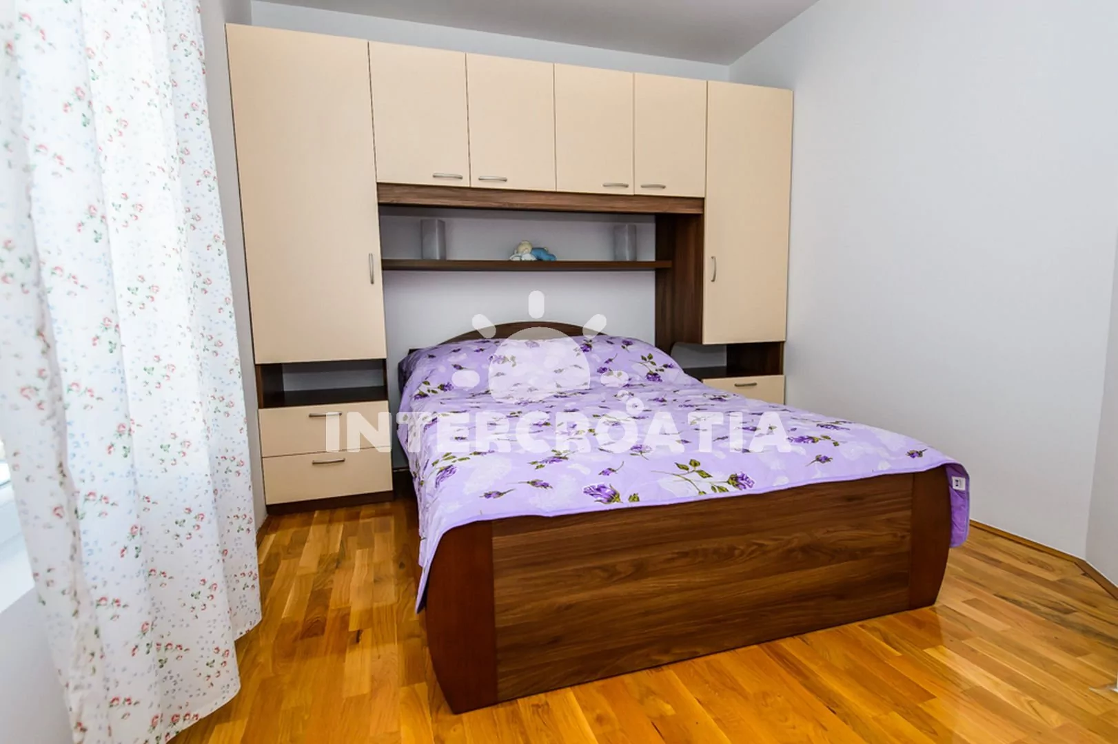 Apartmán (50 m2) s terasou a venkovním posezením se nachází v 1. patře vily a je vhodný pro 4 osoby. Obývací pokoj je spojený s kuchyní. Kuchyňská linka je vybavena varnou deskou, digestoří, vestavěnou troubou, nádobím a lednicí s mrazákem. Obývací pokoj s jídelním stolem pro 4 osoby, pohovkou, televizí se satelitním programem, klimatizací a vstupem na terasu. První i druhá ložnice je vybavena vždy s jedním dvoulůžkem. Koupelna se sprchovým koutem, umyvadlem a wc. Hostům je k dispozici parkování u objektu zdarma.