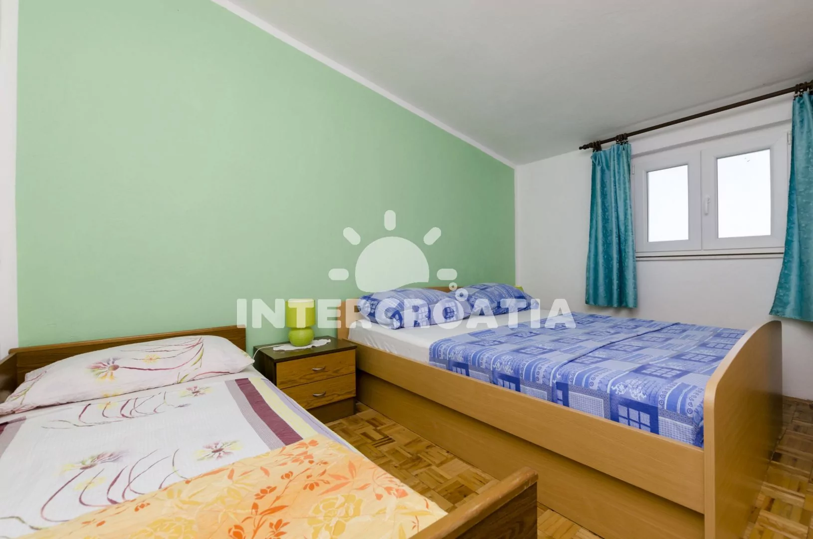 Apartmán (40 m2) s vlastní terasou a venkovním posezením se nachází v 2. patře domu a je vhodný pro 3 až 5 osob. Obývací pokoj je spojený s kuchyní. Kuchyňská linka je vybavena dvouplotýnkovým vařičem, digestoří, rychlovarnou konvicí, nádobím a lednicí s mrazákem. Obývací pokoj s jídelním stolem pro 4 osoby, přistýlkou (extra lůžko pro 2 osoby), televizí se satelitním programem, klimatizací a vstupem na terasu. Ložnice s dvoulůžkem a jedním jednolůžkem. Koupelna se sprchovým koutem, umyvadlem a wc. Hostům je k dispozici parkování u objektu zdarma.