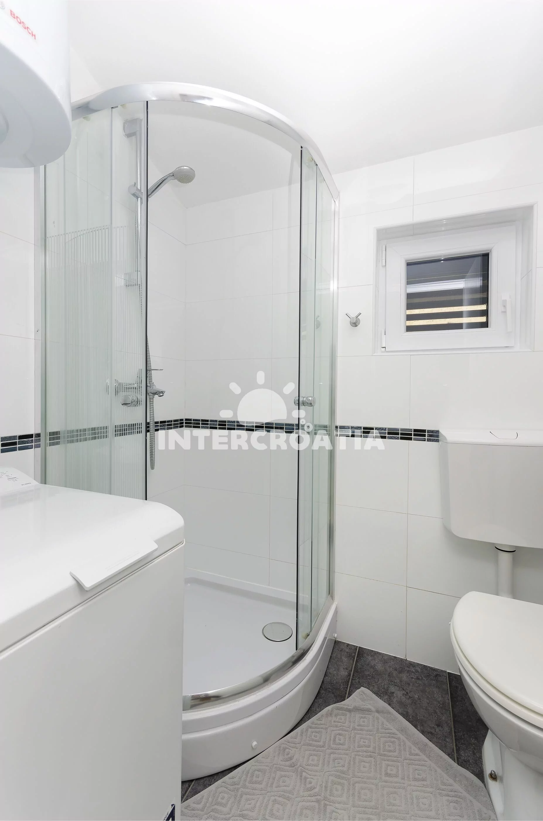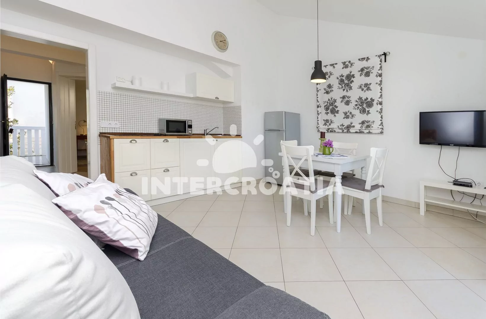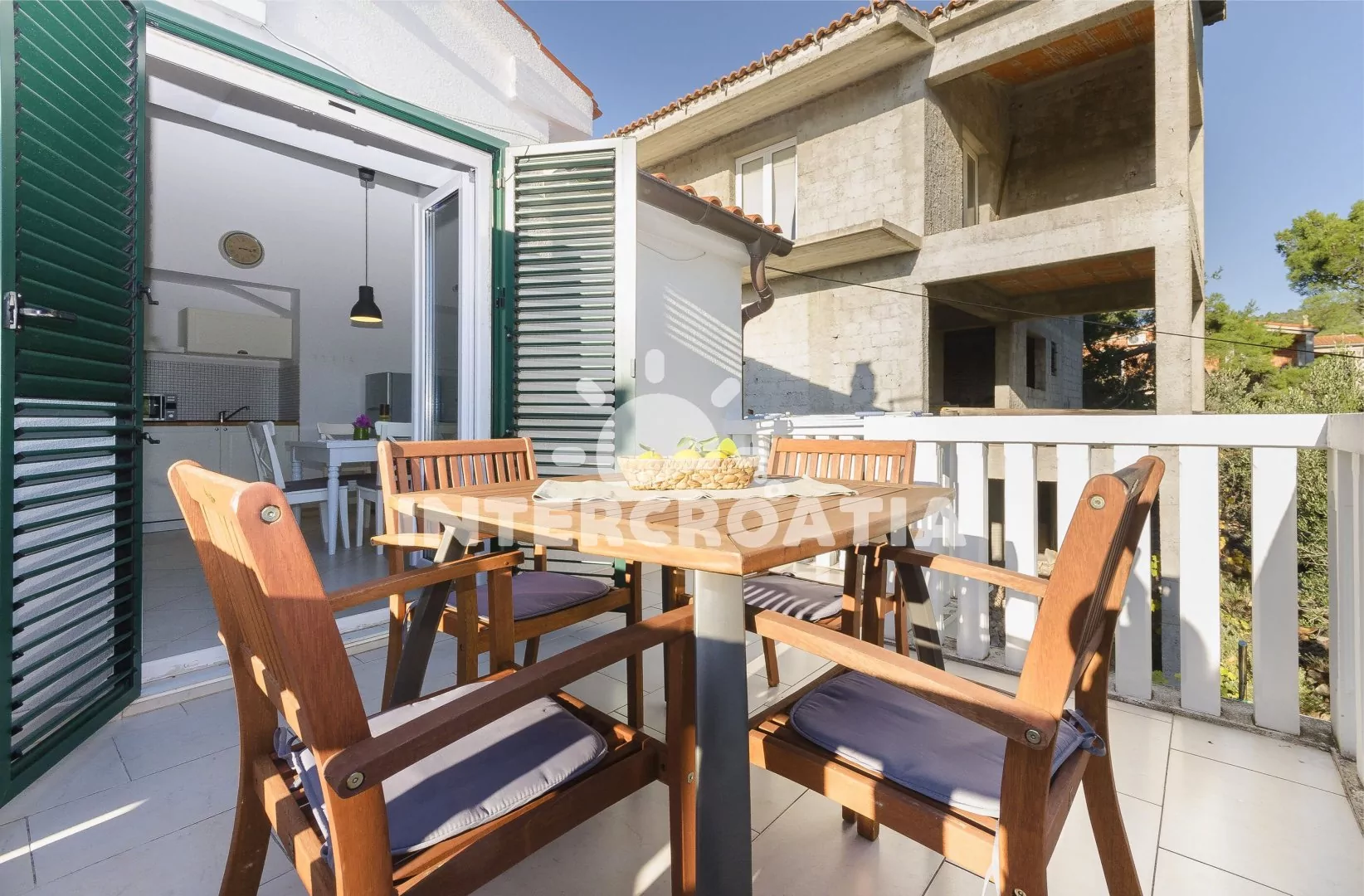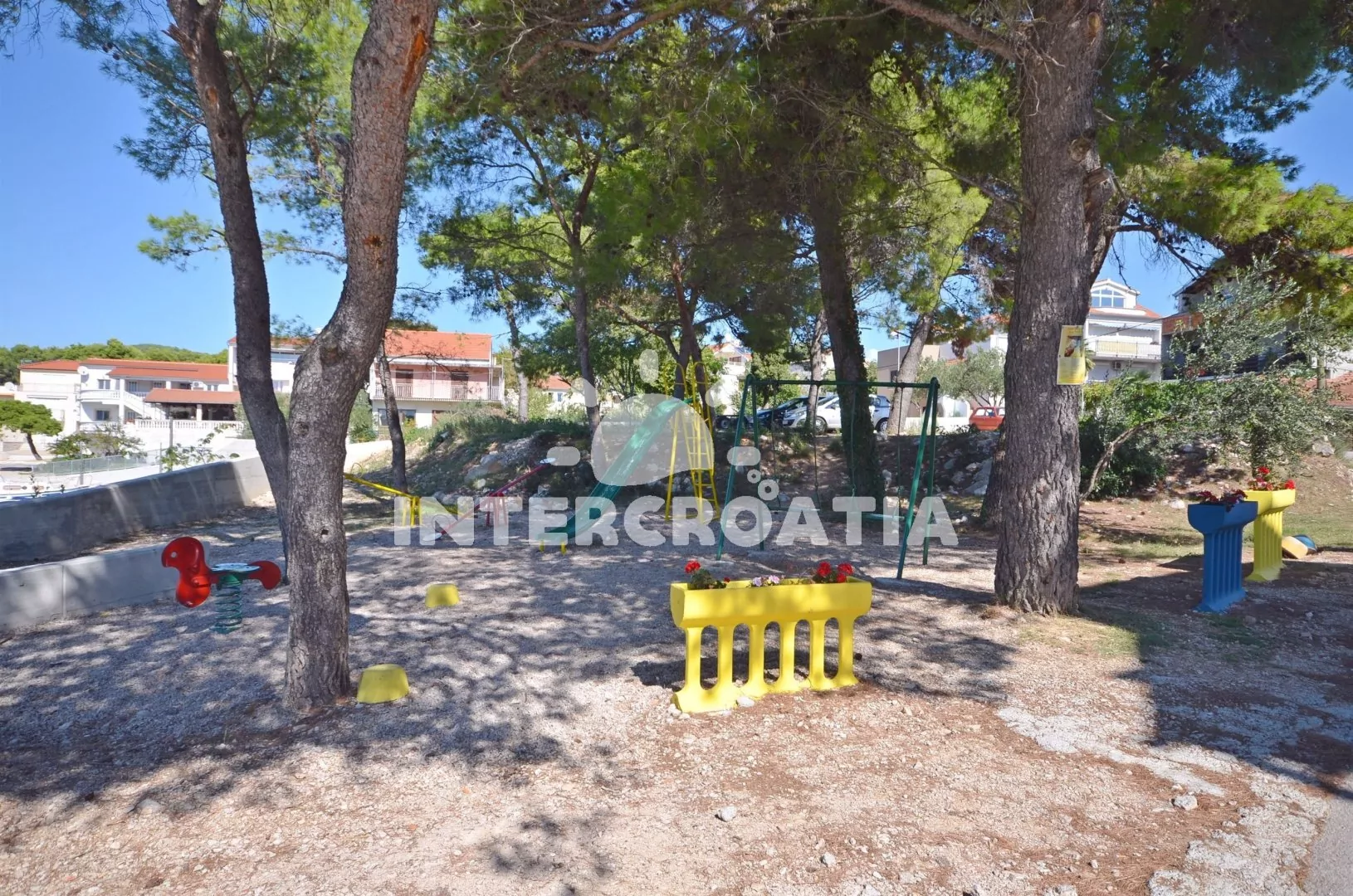 Vzdálenosti: Moře a oblázková-kamenitá pláž 400 m, centrum 1 km, restaurace 200 m, supermarket 300 m, bar 350 m, lékárna 2 km, trajekt, letiště 65 km.