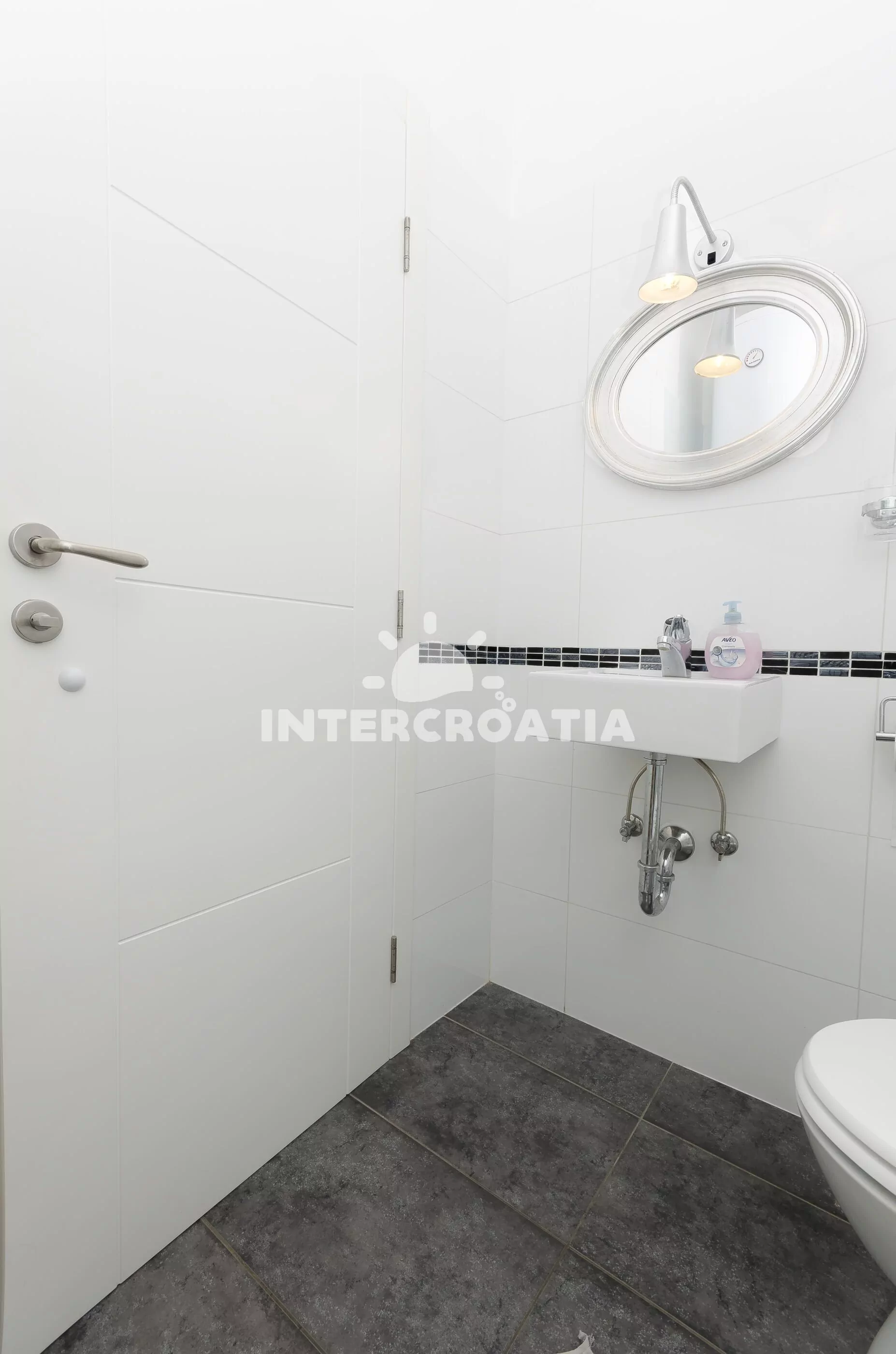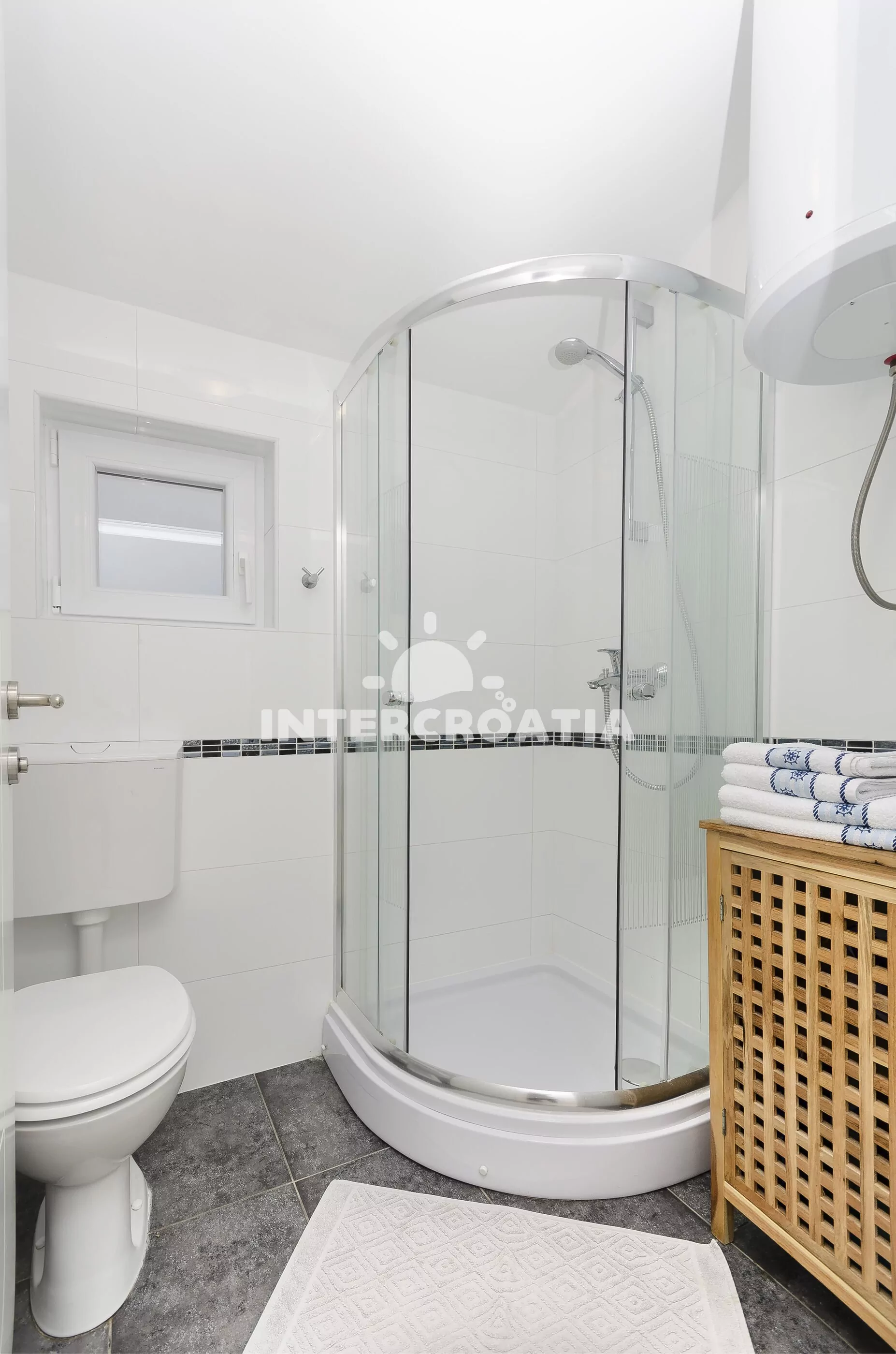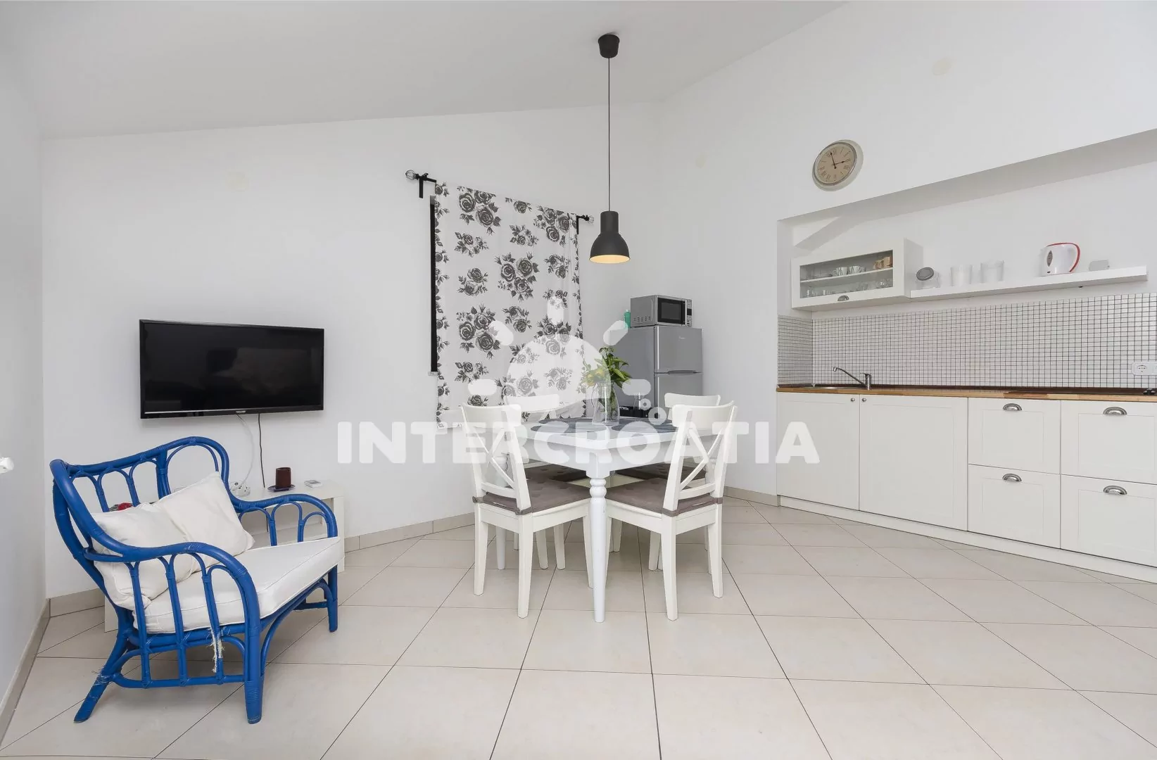 Samostatně stojící apartmánový dům se zahradou se nachází v klidné ulici a docházkové vzdálenosti od moře/pláže. Dům nabízí ubytování ve 2 klimatizovaných apartmánech s lodžiemi a venkovním posezením. Dům má vlastní oplocený pozemek se zahradou a zděným grilem. Parkovací místa pro automobily u objektu.