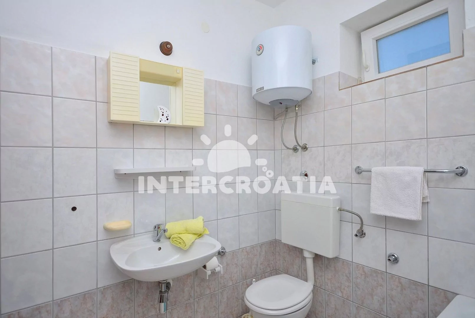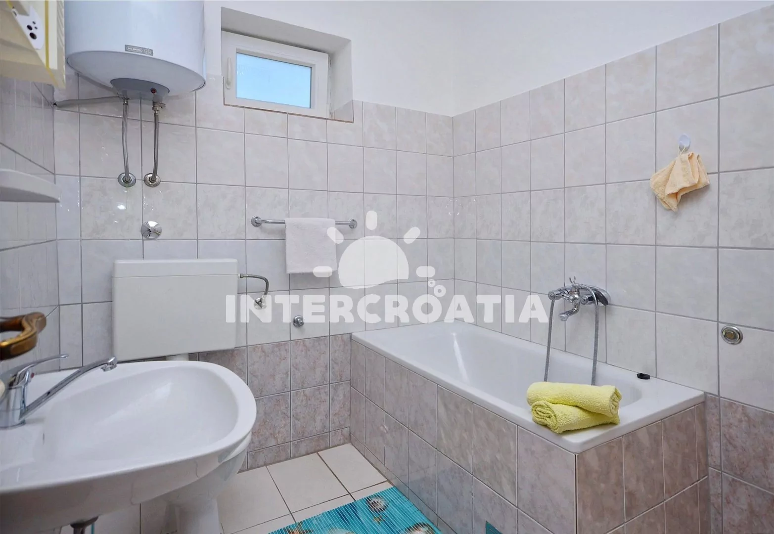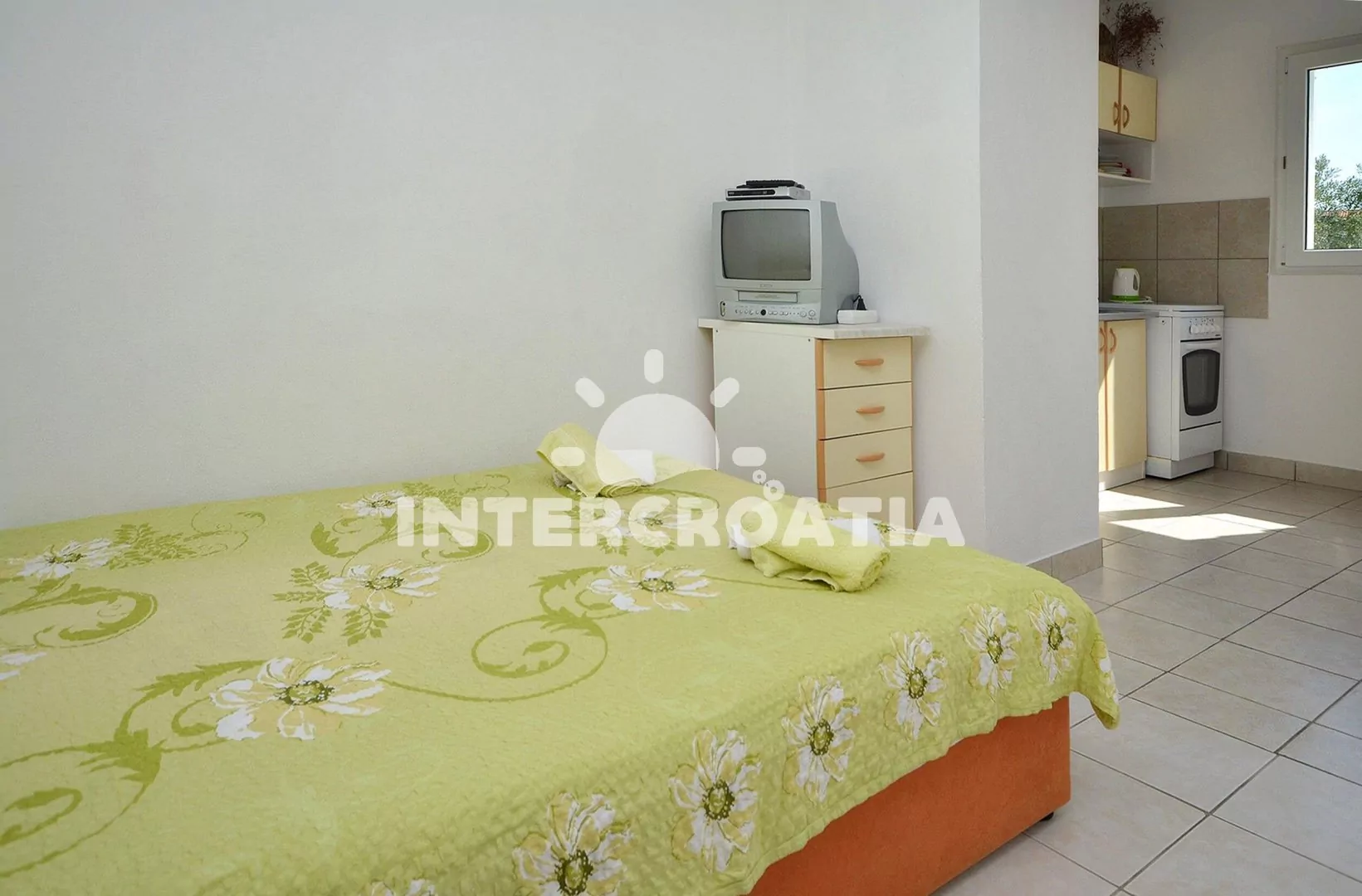 Vzdálenosti: Moře a betonová pláž 500 m, centrální oblázková pláž 1 km, banka, bar, restaurace 500 m, centrum, supermarket, směnárna 550 m, lékárna 750 m, čerpací stanice, diskotéka 1,5 km, letiště 65 km, trajekt 89,9 km.