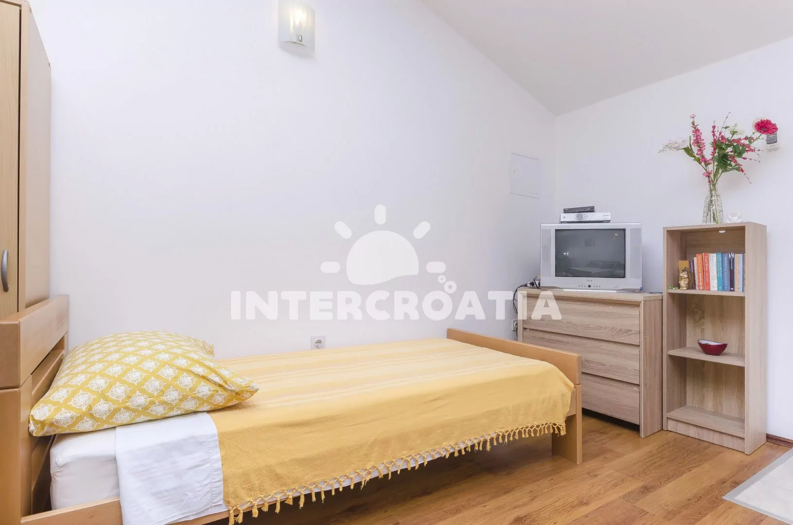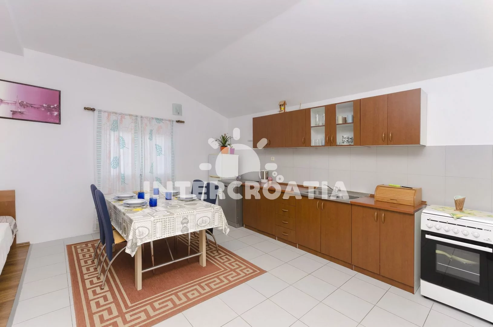 Apartmán (45 m2) typu studio s terasou, venkovním posezením a částečným výhledem na moře se nachází ve 2. patře domu. Apartmán je vhodný pro 2 až 3 osoby. Obývací místnost je spojena s kuchyní.…