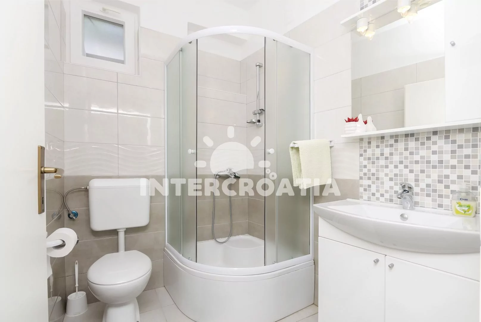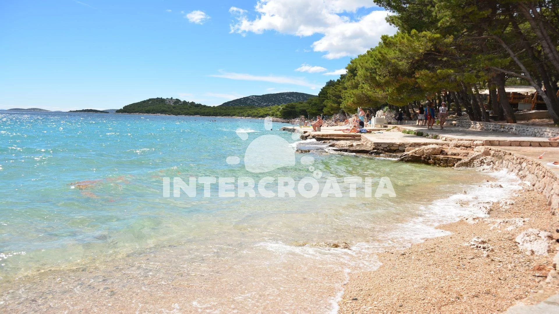 Vzdálenosti: Moře a oblázková pláž 120 m, centrum 200 m, supermarket 100 m, restaurace a bar 150 m, lékárna 500 m, pak Plitvice 30 km, letiště (Zadar) 65 km.