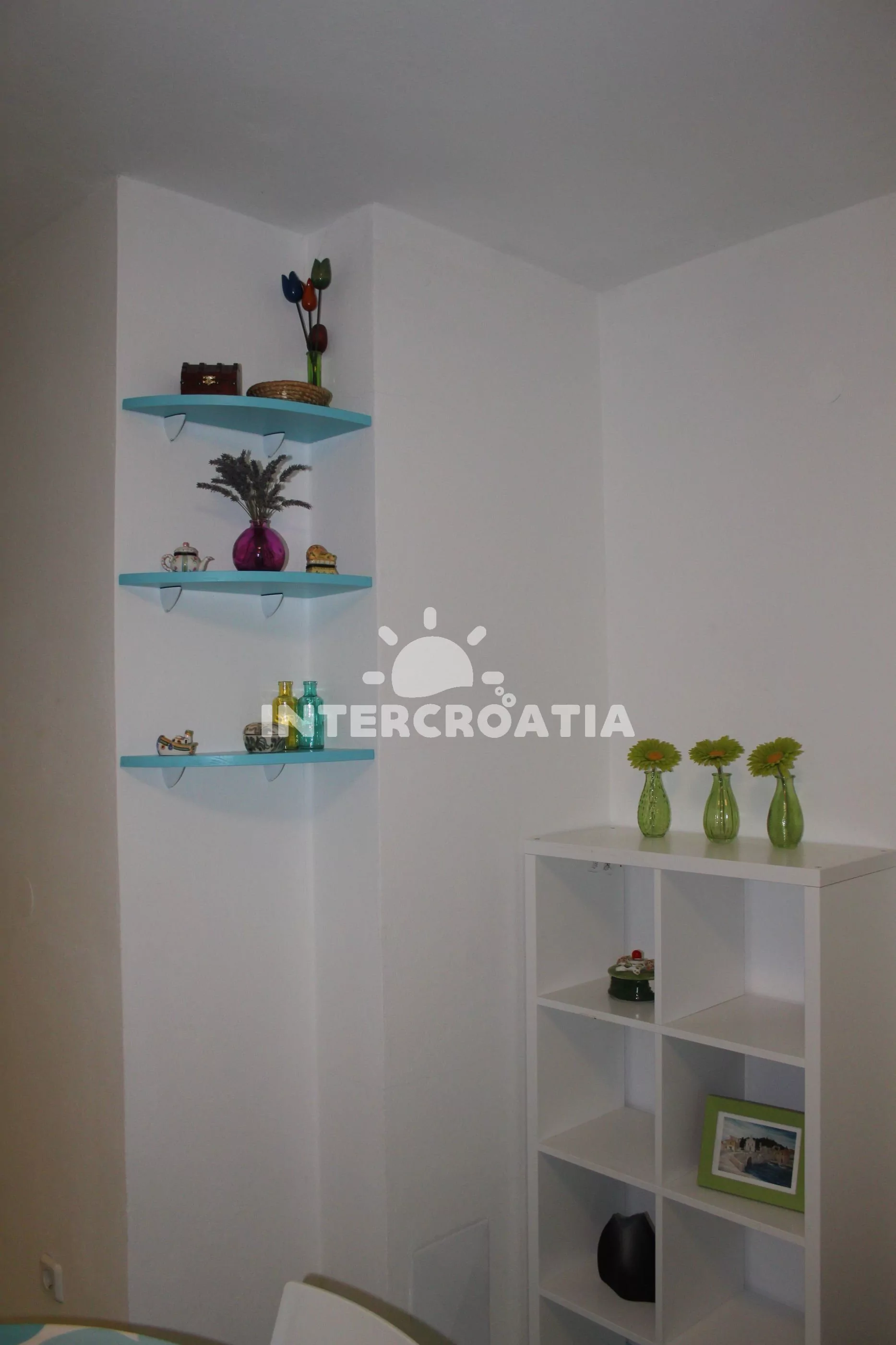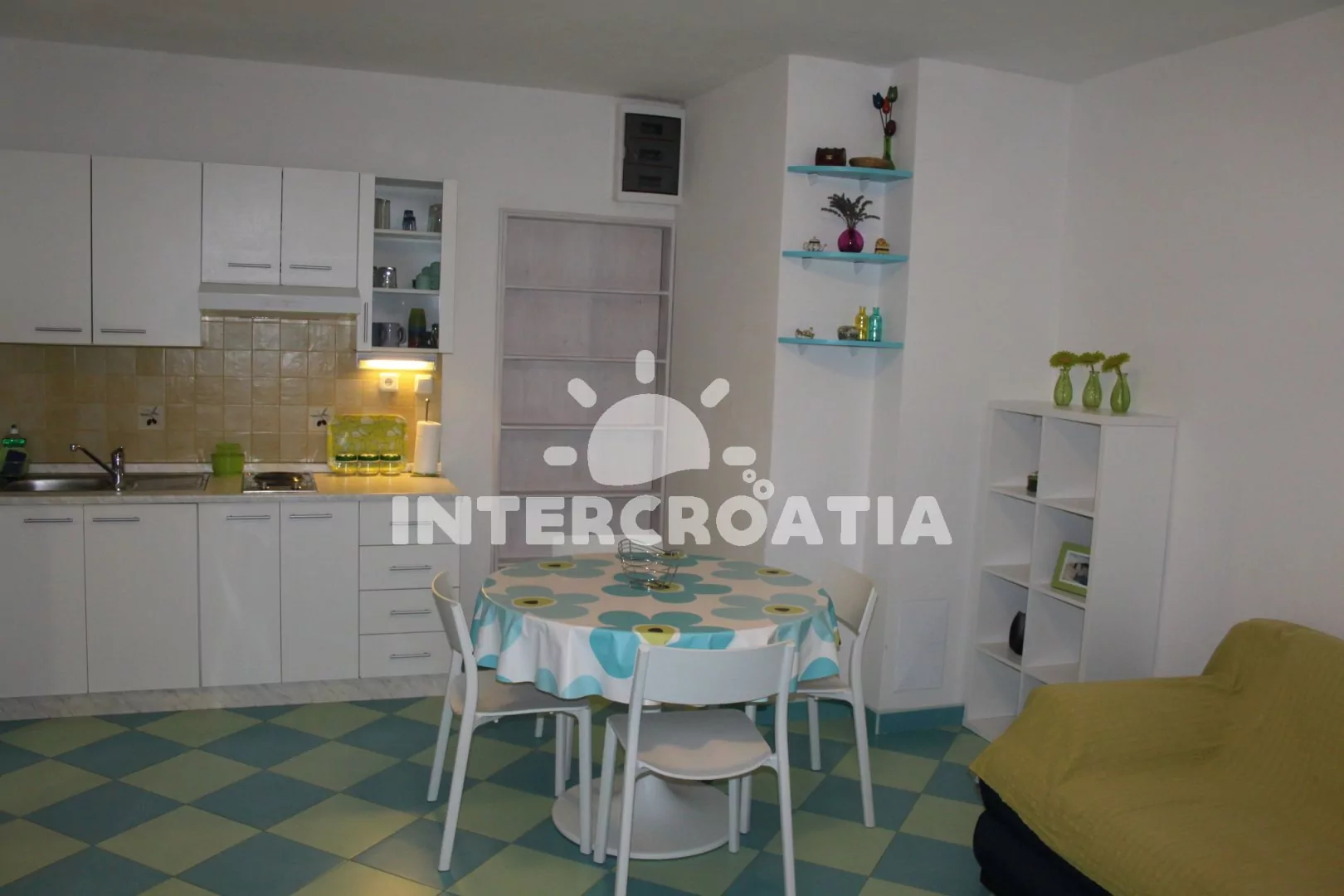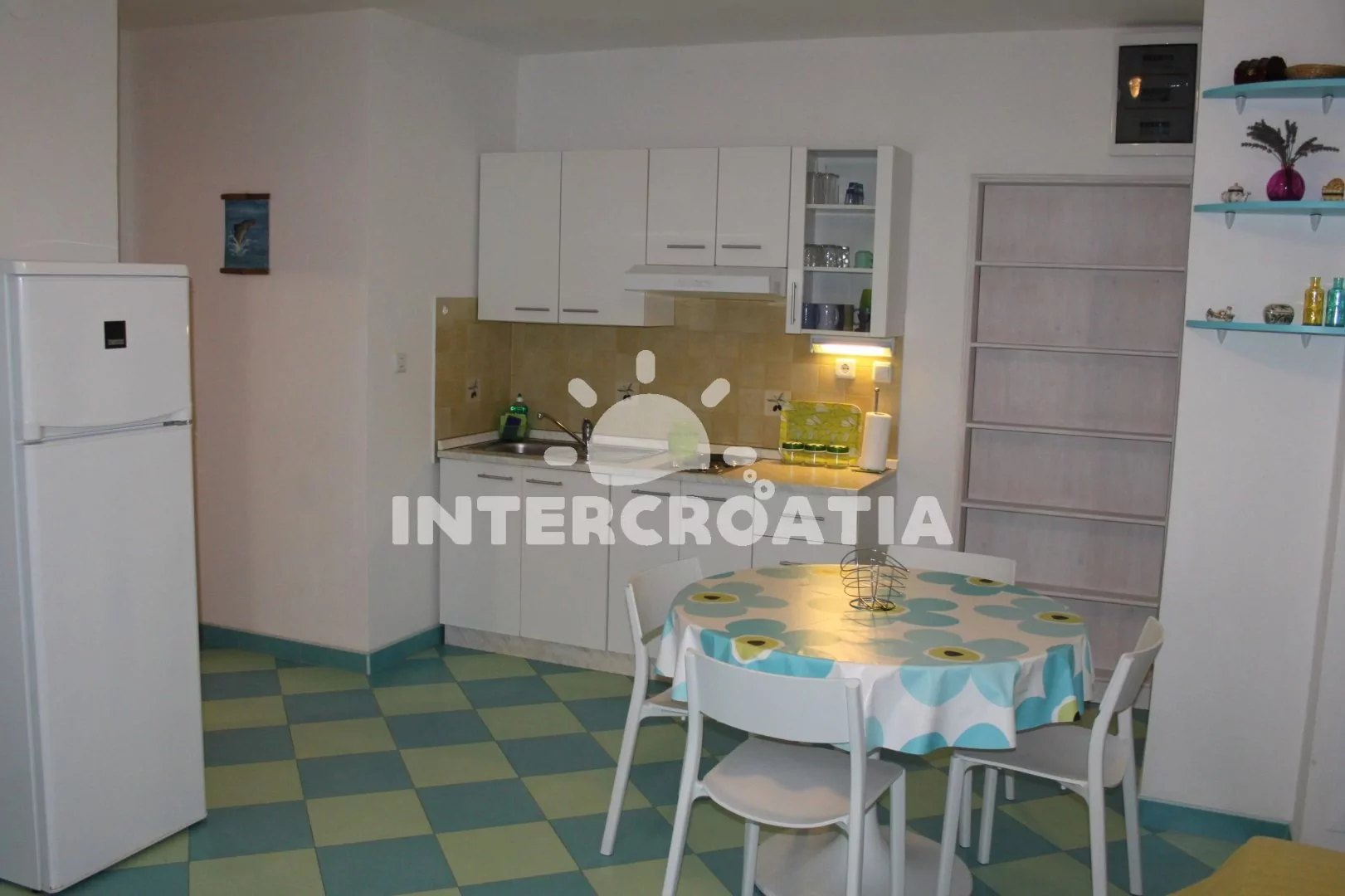 Vzdálenosti: Moře a pláž 50 m, centrum, restaurace a bar 50 m, market, směnárna a ambulance 300 m, pošta 100 m, lékárna 700 m, potápěčský klub 200 m, přístav 600 m, půjčovna motorových člunů 100 m, veřejná doprava 300 m, tenisové kurty a diskotéka 3 km, půjčovna cyklistických kol 50 m, čerpací stanice 3,5 km, park Plitvice (30 km), letiště (Zadar) 80 km, trajekt (Šibenik) 15 km.