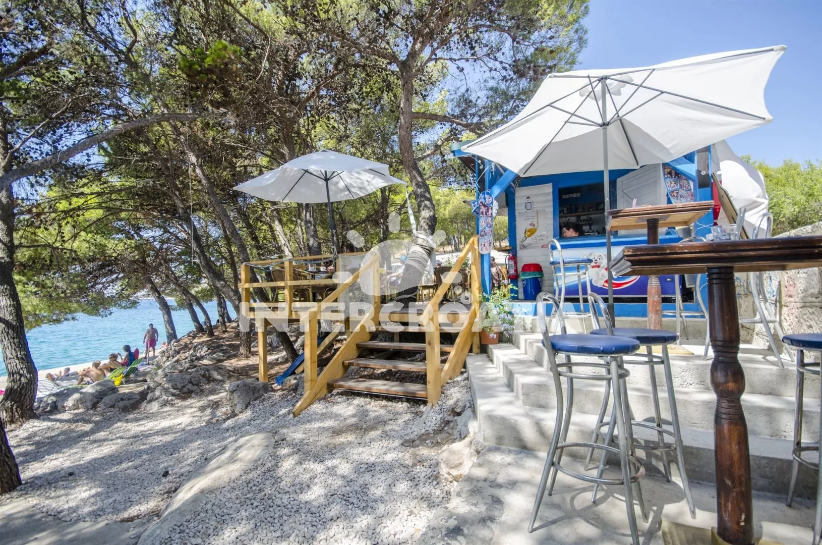 Vzdálenosti: Moře a pláž 50 m, centrum, restaurace a bar 50 m, market, směnárna a ambulance 300 m, pošta 100 m, lékárna 700 m, potápěčský klub 200 m, přístav 600 m, půjčovna motorových člunů 100 m, veřejná doprava 300 m, tenisové kurty a diskotéka 3 km, půjčovna cyklistických kol 50 m, čerpací stanice 3,5 km, park Plitvice (30 km), letiště (Zadar) 80 km, trajekt (Šibenik) 15 km.